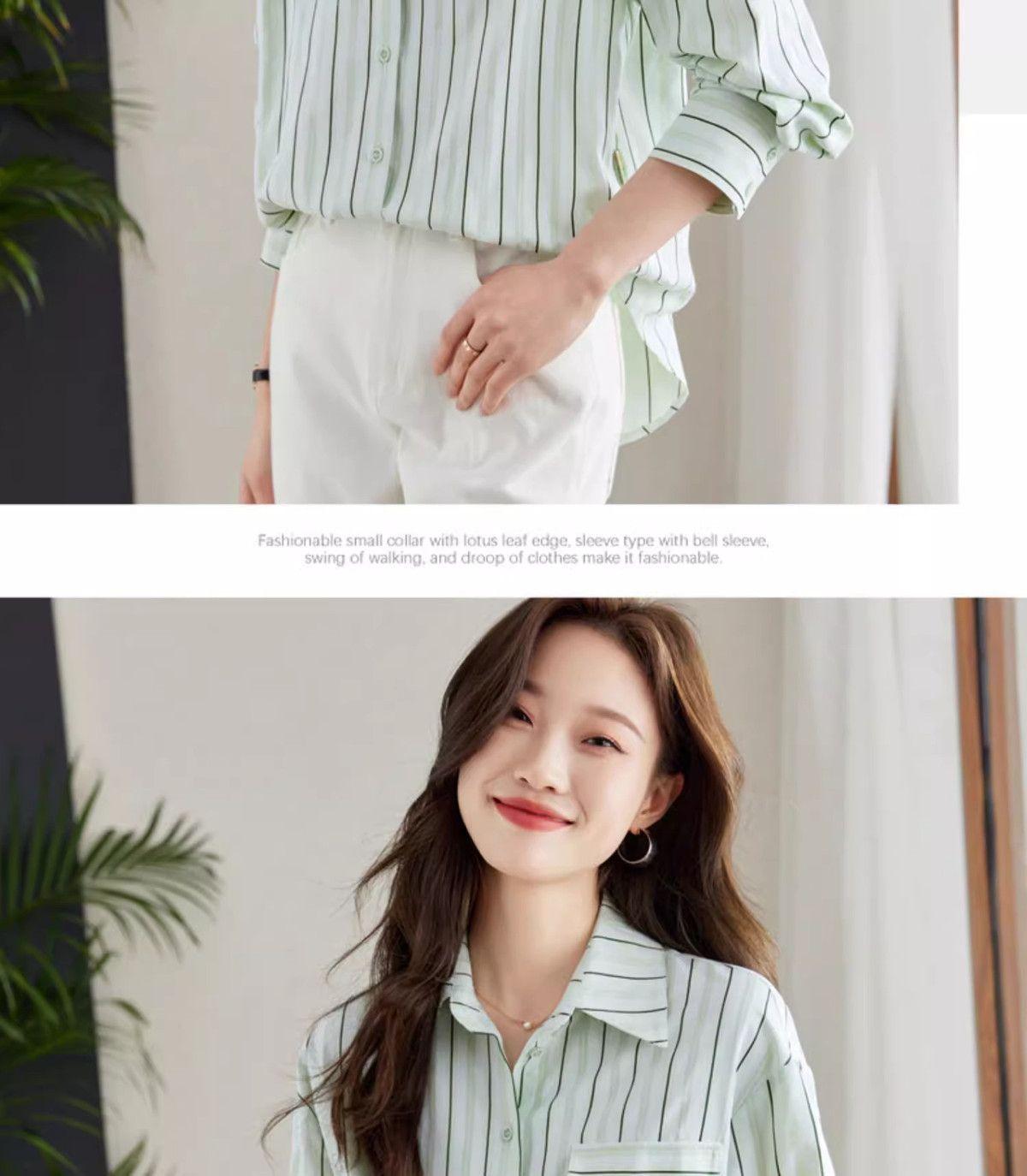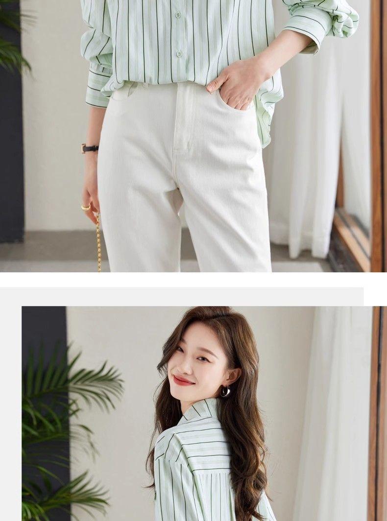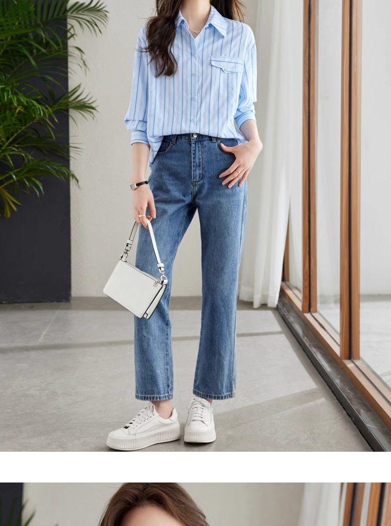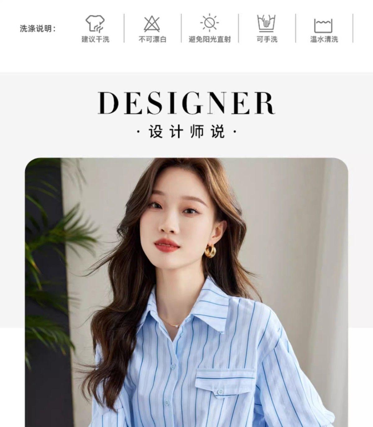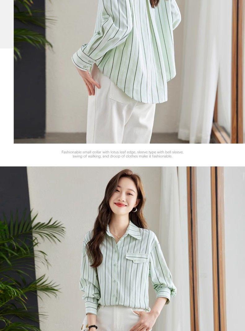 Camisa de diseño de manga larga a rayas 2024, nueva camisa de estilo occidental, holgada, informal y adelgazante.