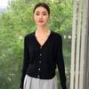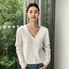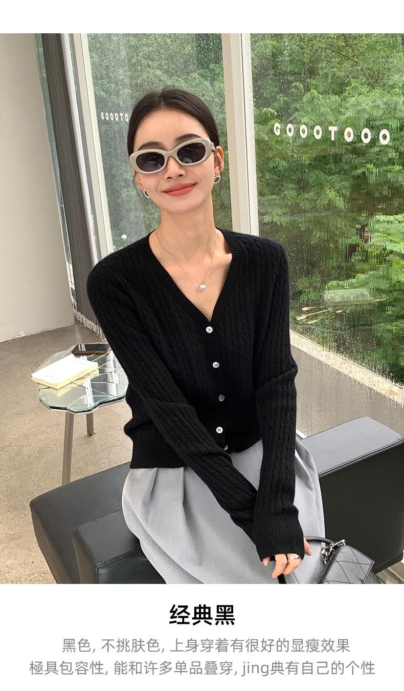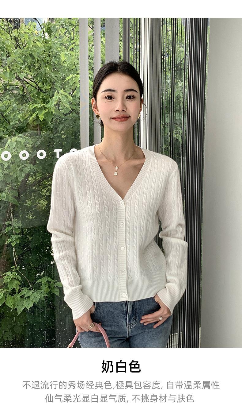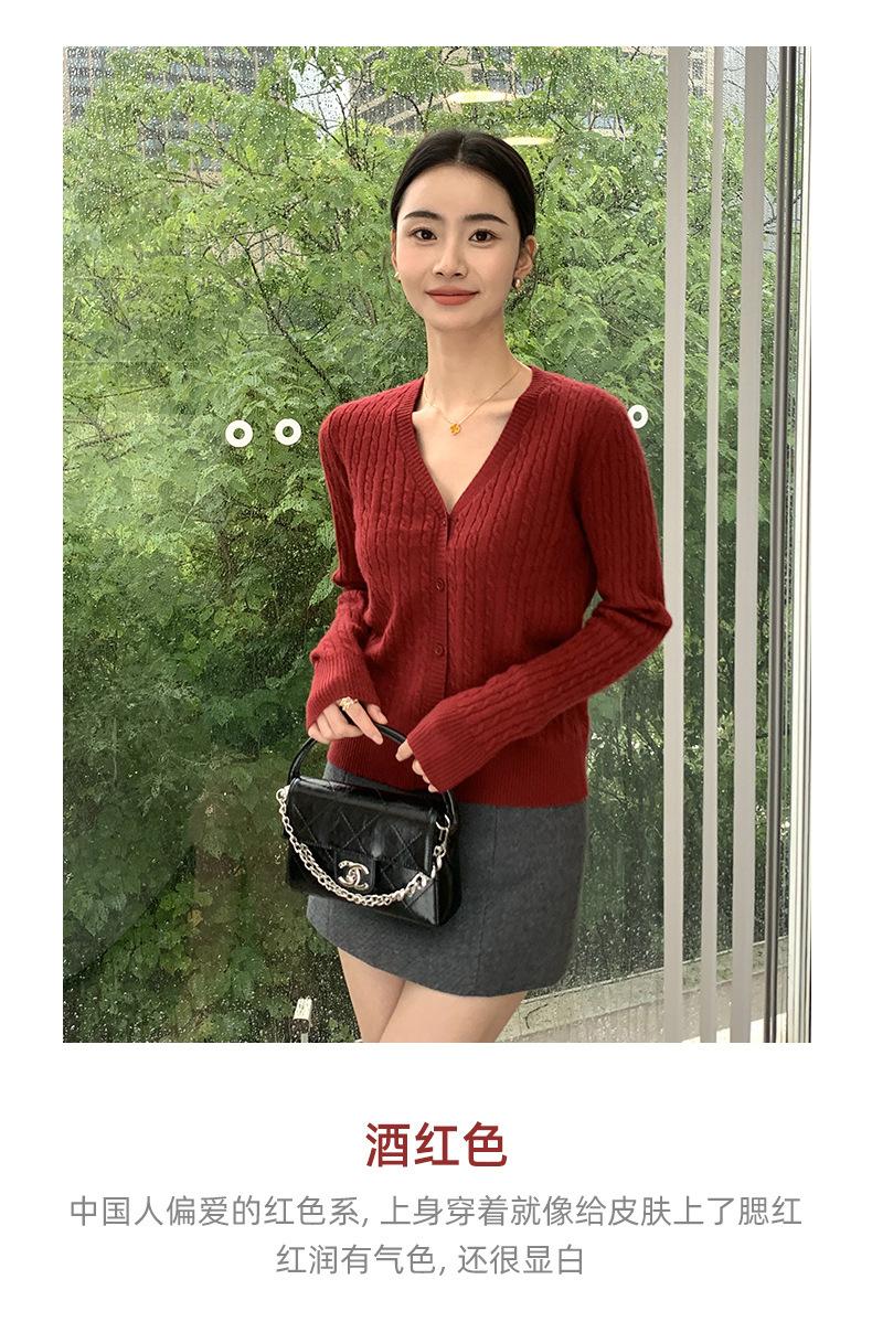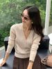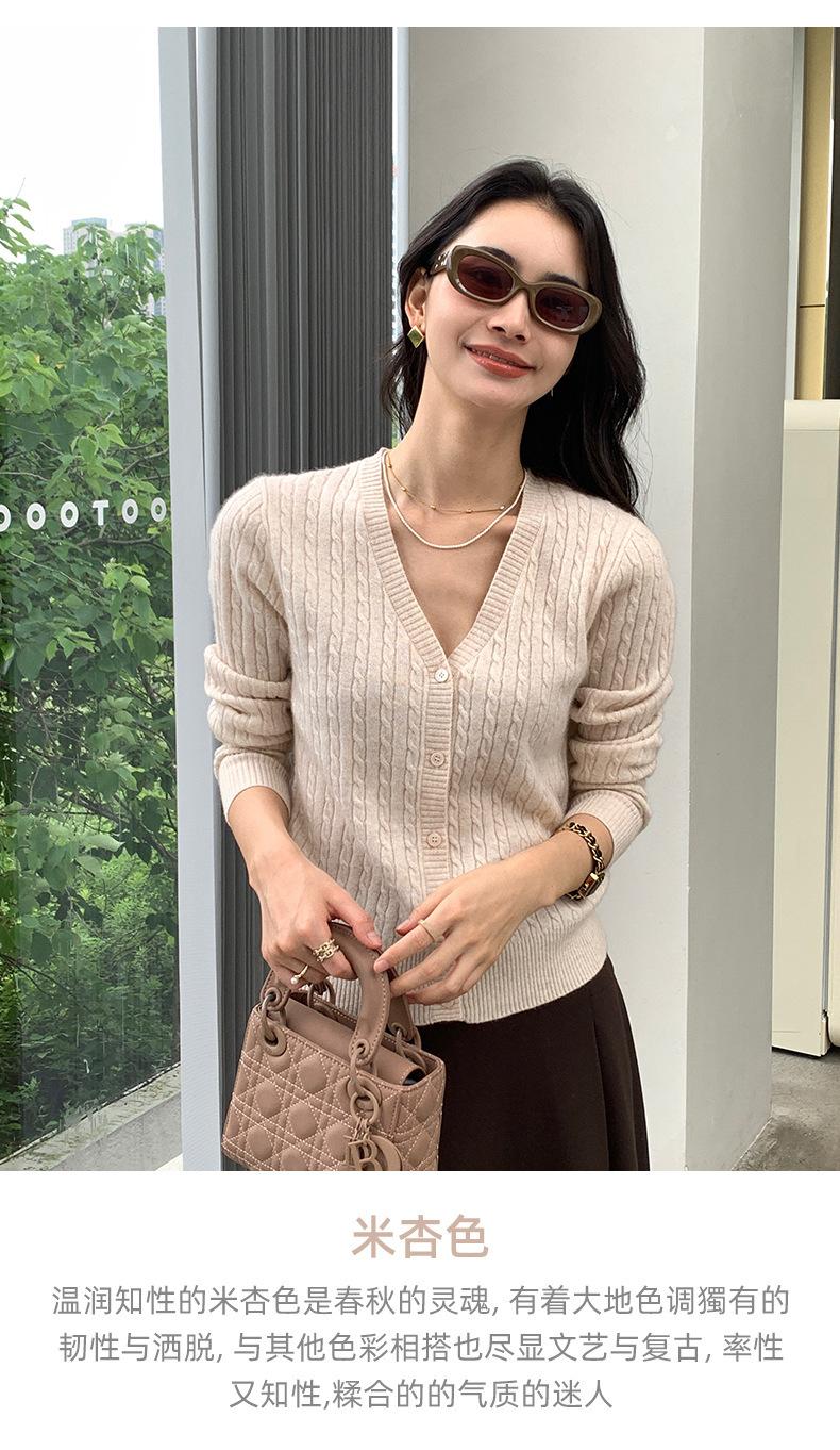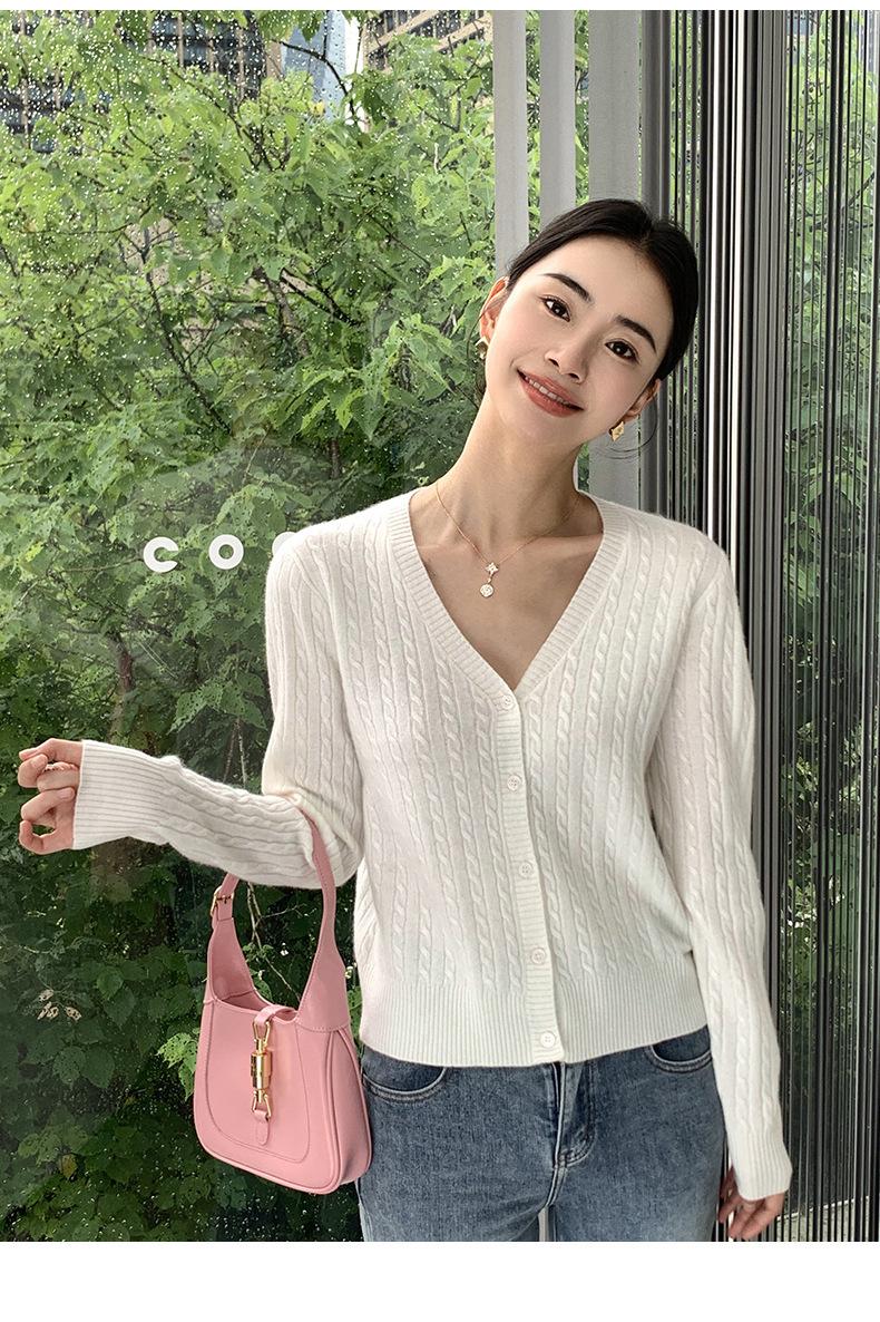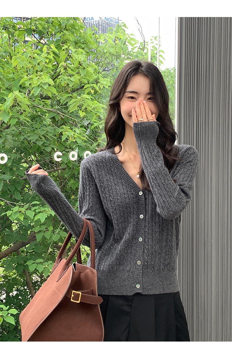 Cárdigan de punto de cachemira con cuello en V para mujer, top vintage con giro en color liso para ir al trabajo, suéter suave y encerado, abrigo para mujer