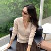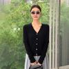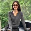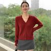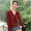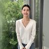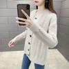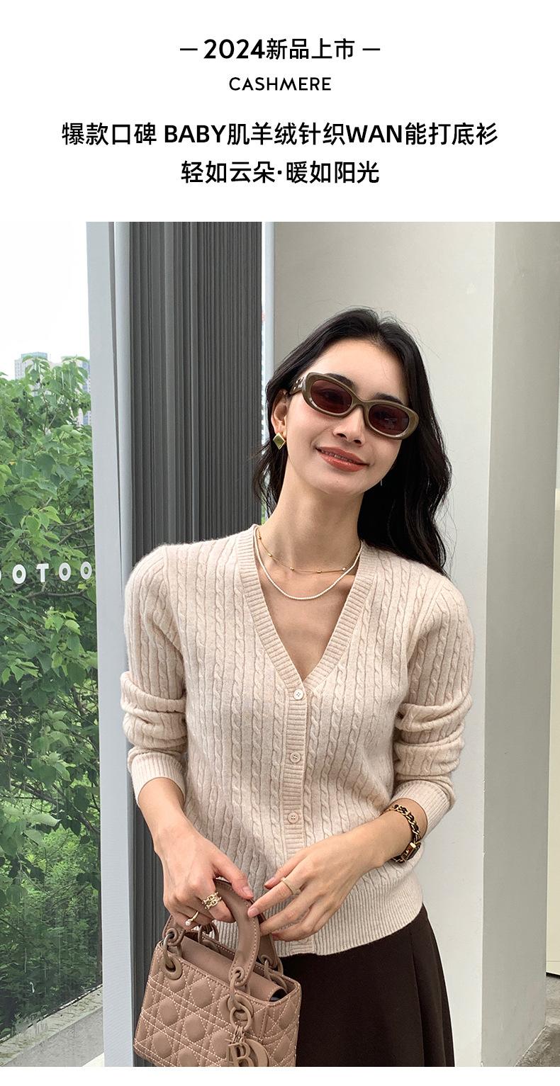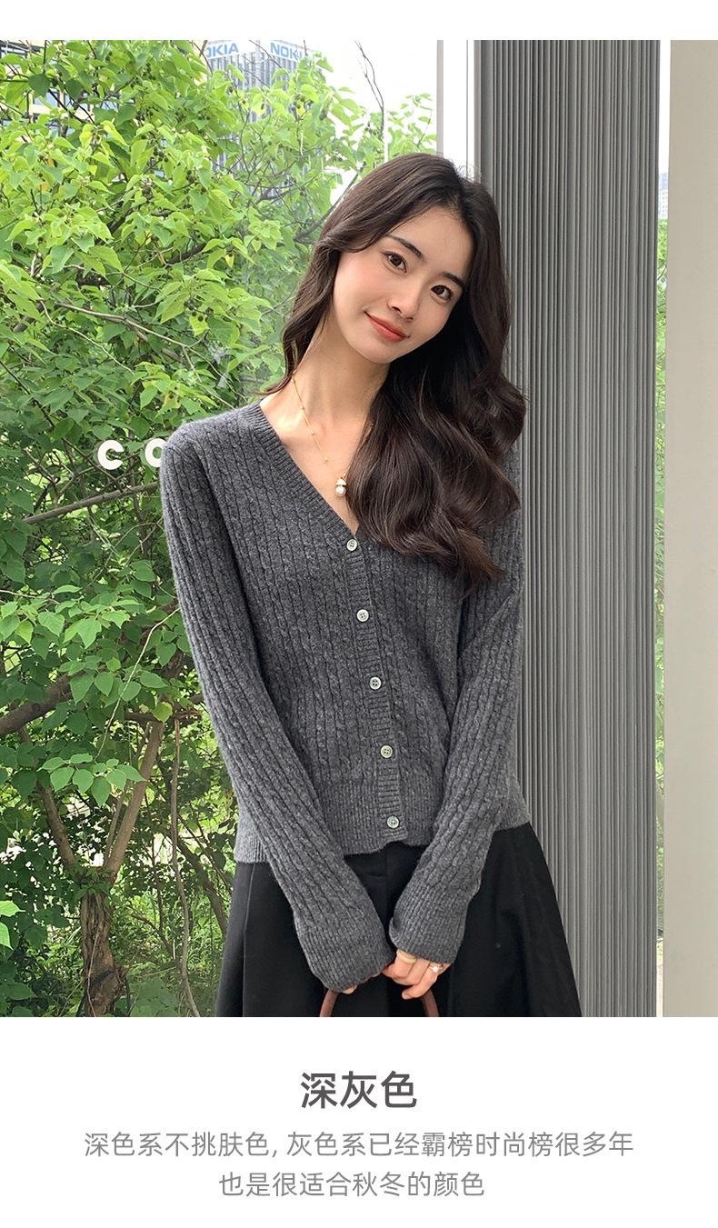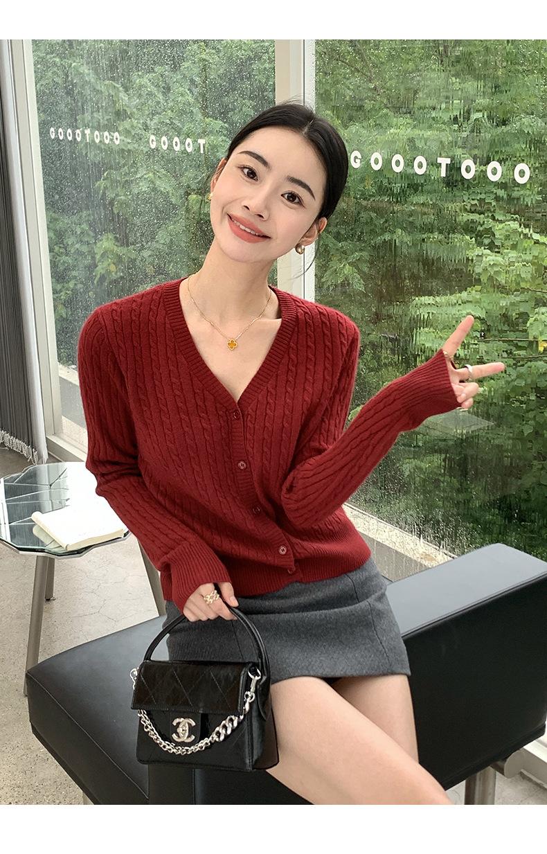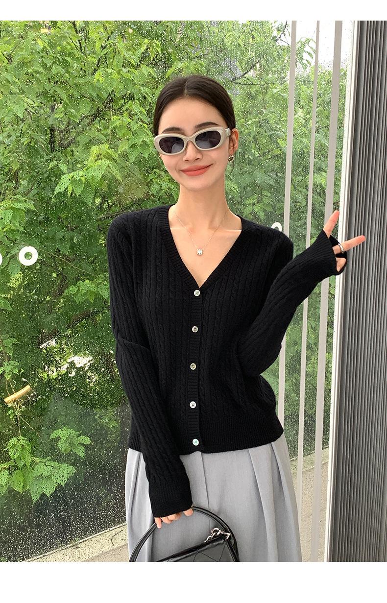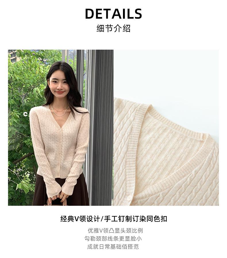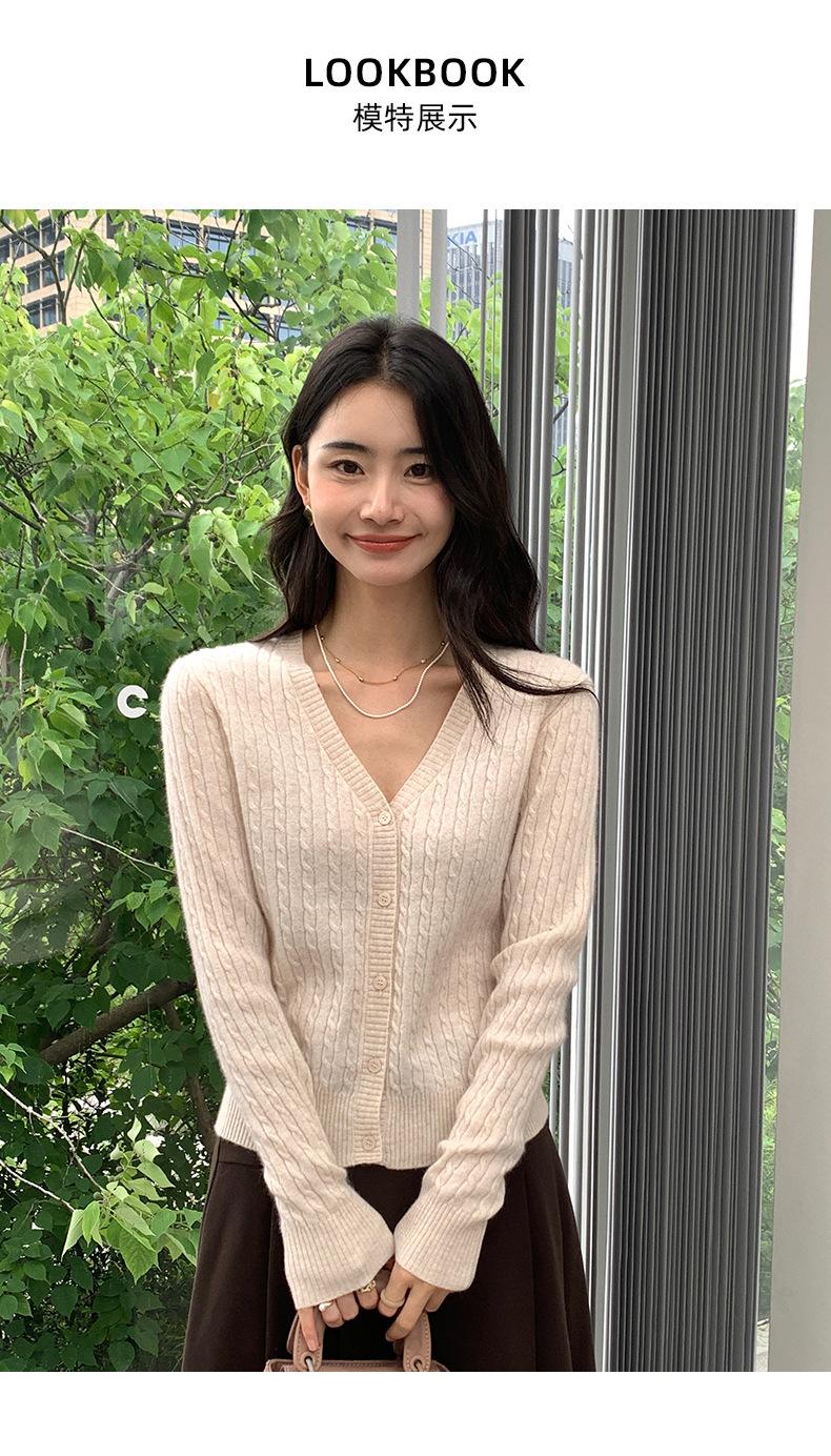 Cárdigan de punto de cachemira con cuello en V para mujer, top vintage con giro en color liso para ir al trabajo, suéter suave y encerado, abrigo para mujer