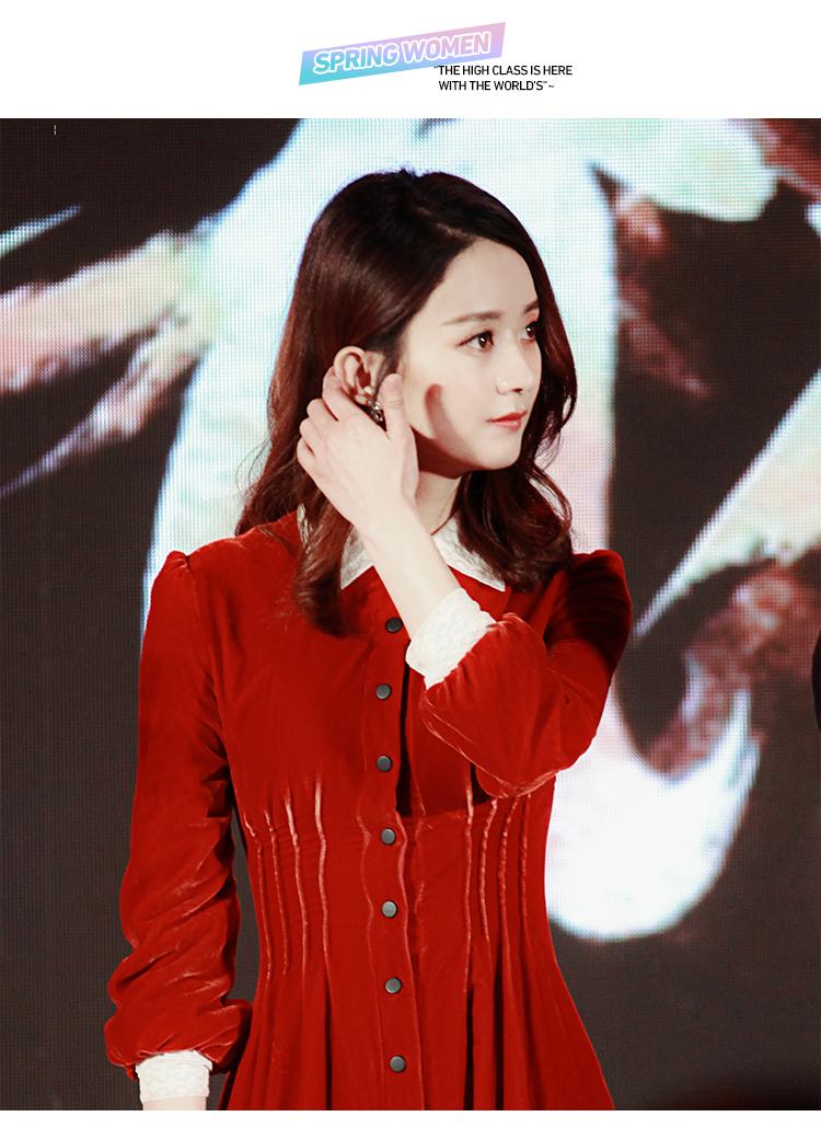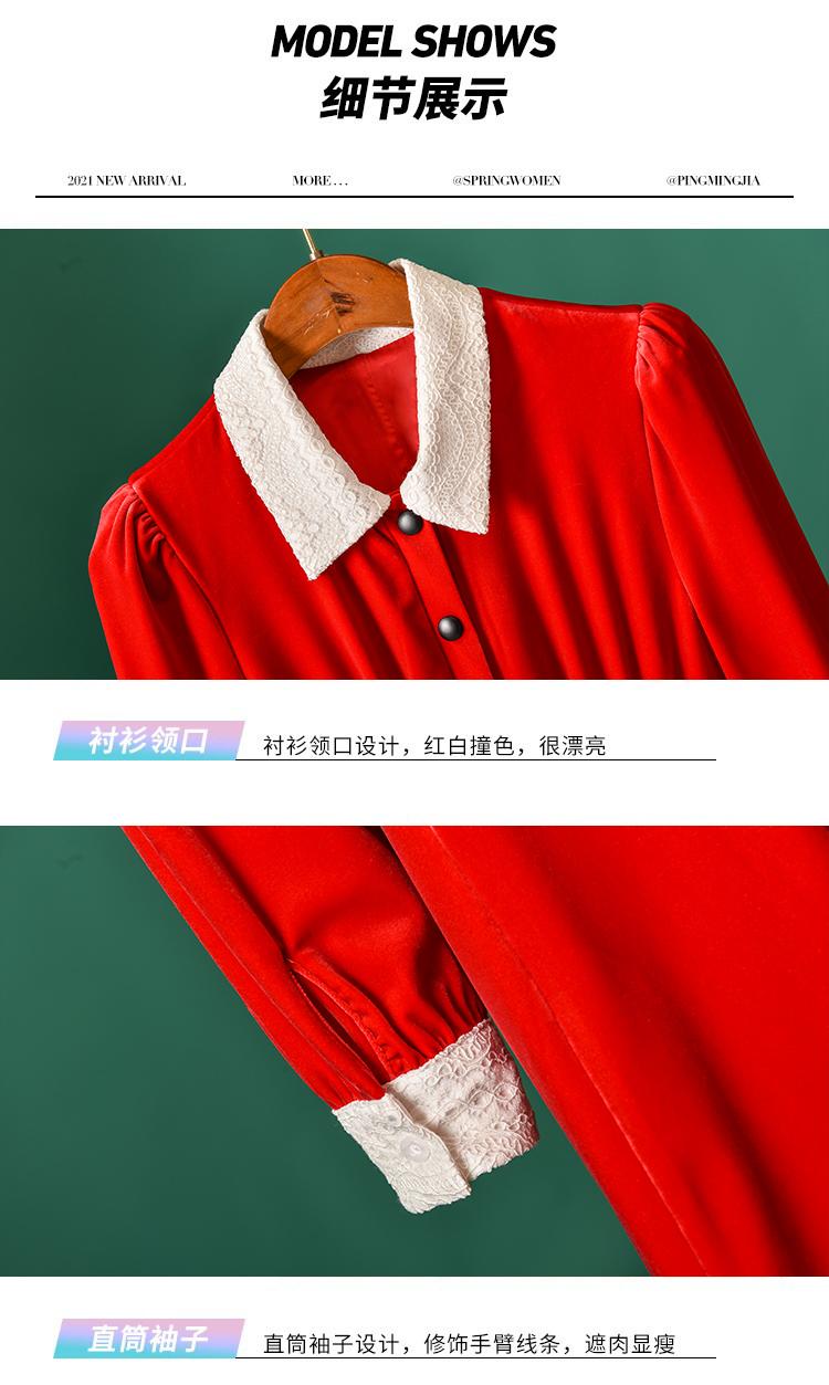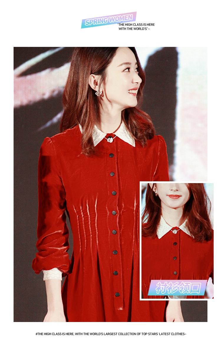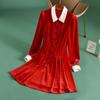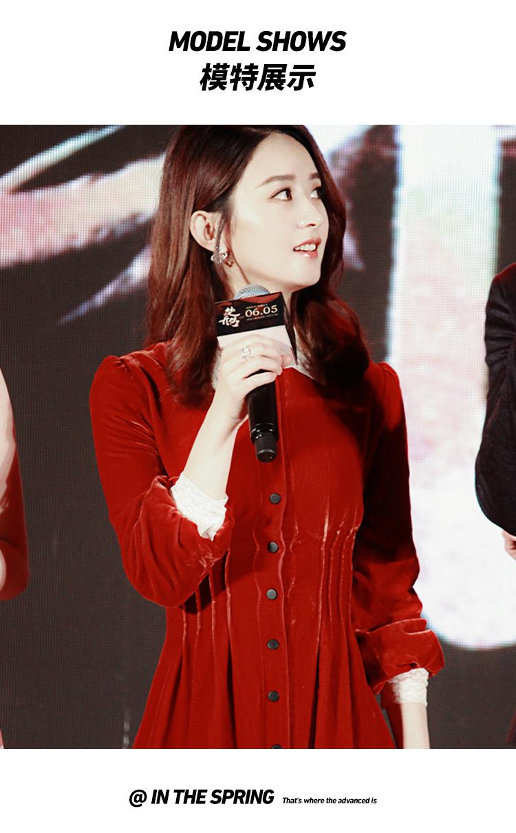 Falda de mujer de moda con cintura de temperamento de alta gama con vestido de terciopelo rojo y dorado de estrella, primavera y otoño 2021, nueva falda
