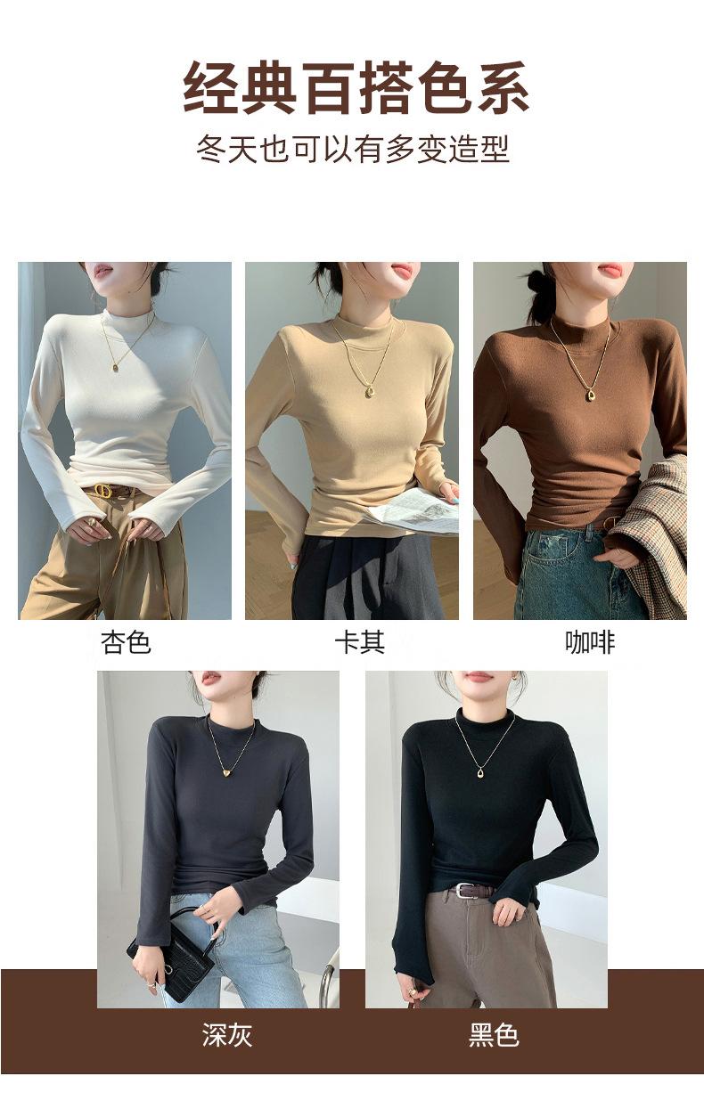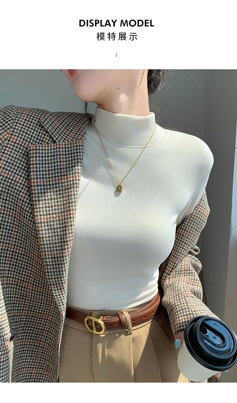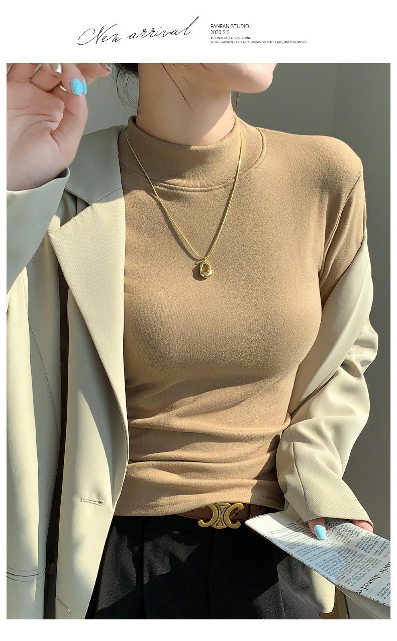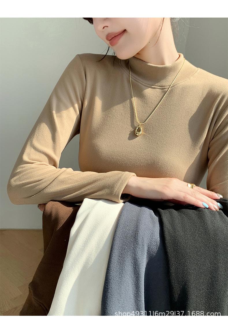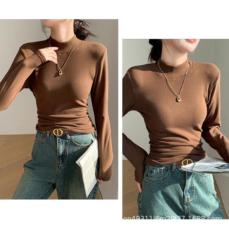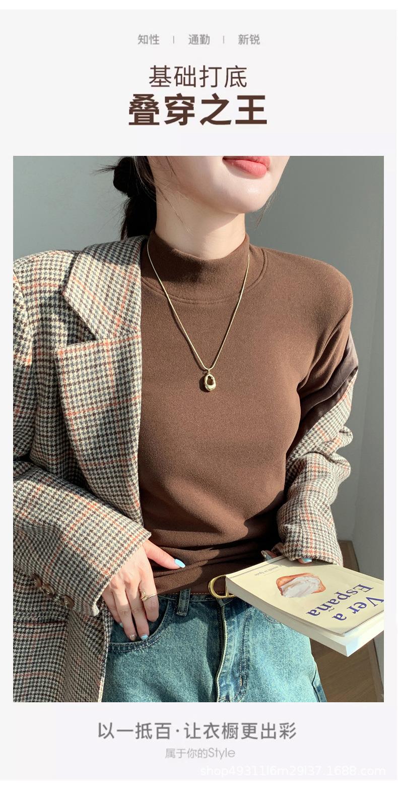 Camiseta base de cuello medio alto de invierno para mujer, otoño e invierno, interior de una pieza de terciopelo polar, gruesa, ajustada, versátil, cálida, de manga larga