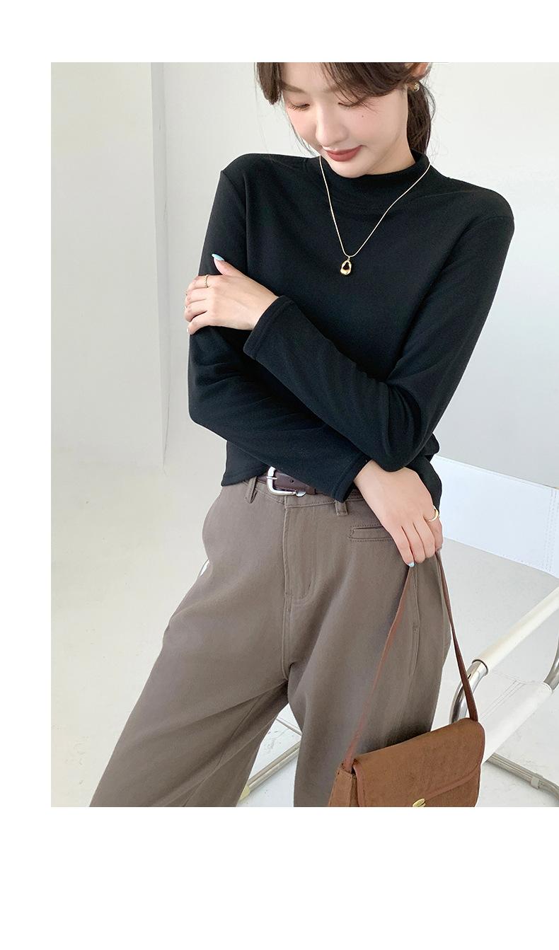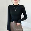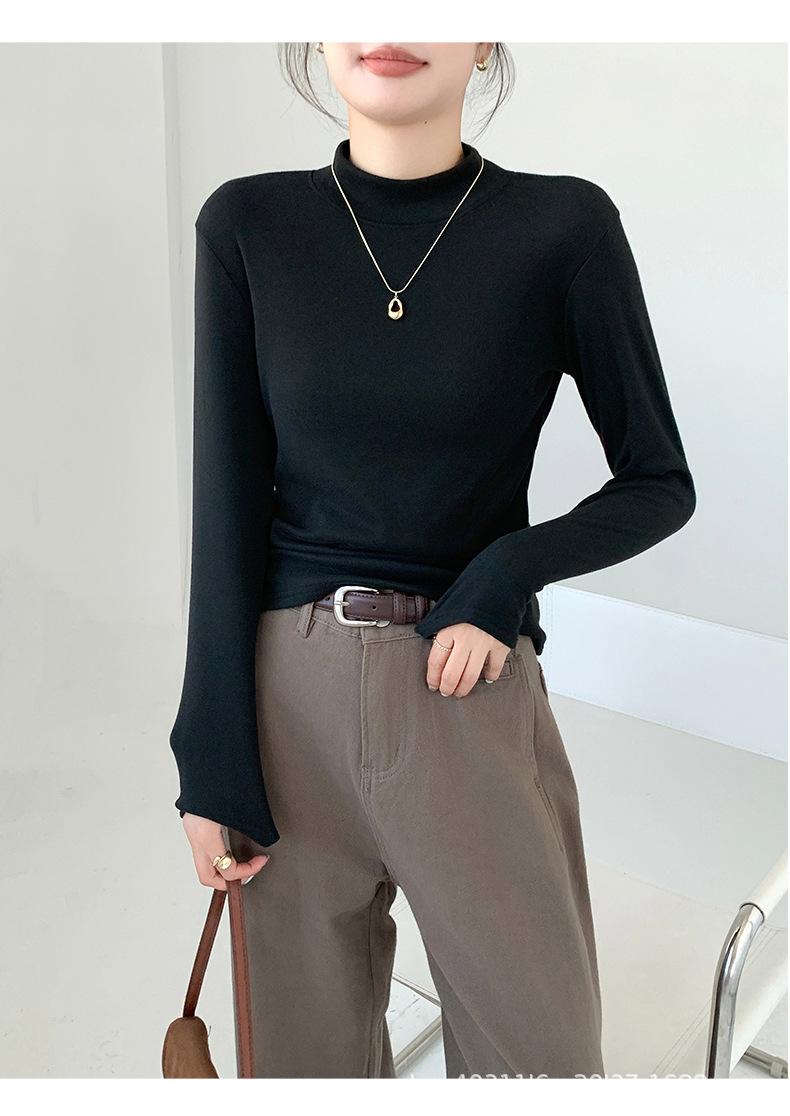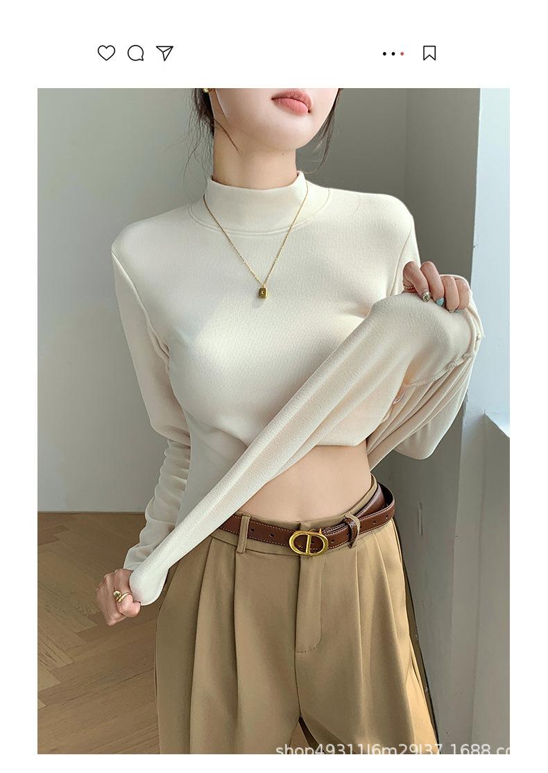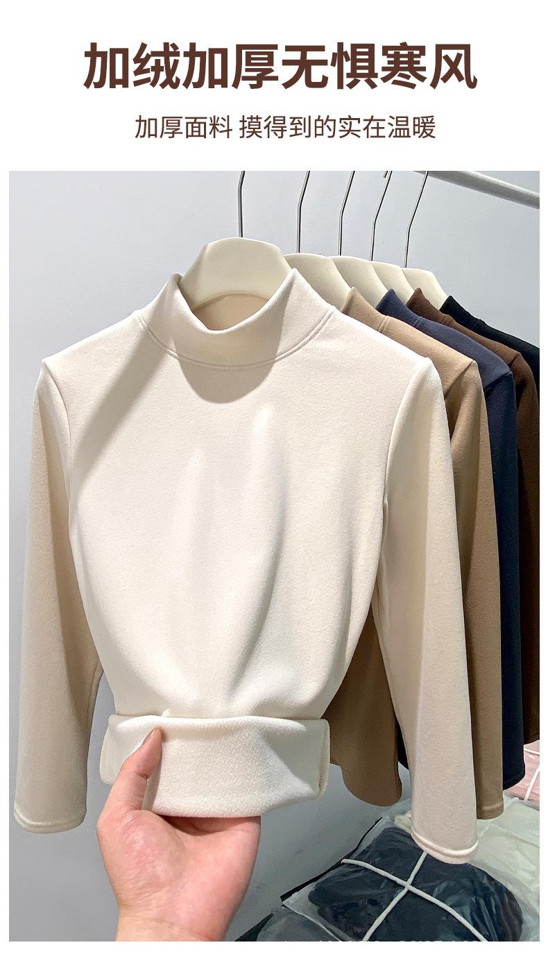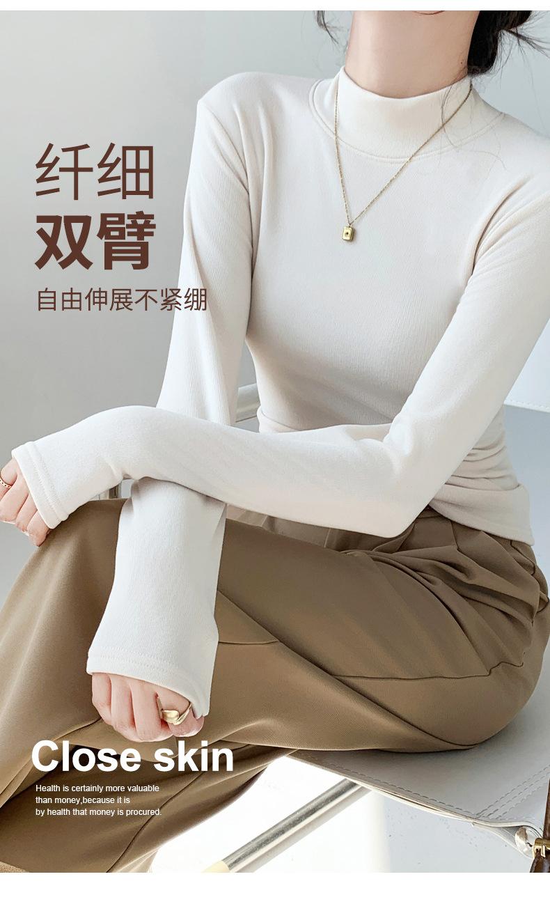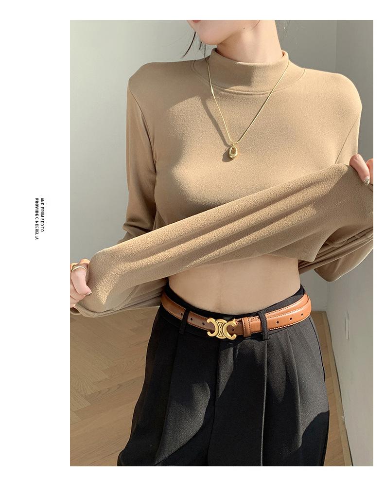 Camiseta base de cuello medio alto de invierno para mujer, otoño e invierno, interior de una pieza de terciopelo polar, gruesa, ajustada, versátil, cálida, de manga larga