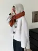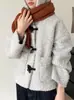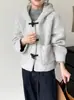 Chaqueta con capucha de lana con botones en las esquinas de Snowman 60 para mujer, estilo coreano, estilo retro, corta, 2272