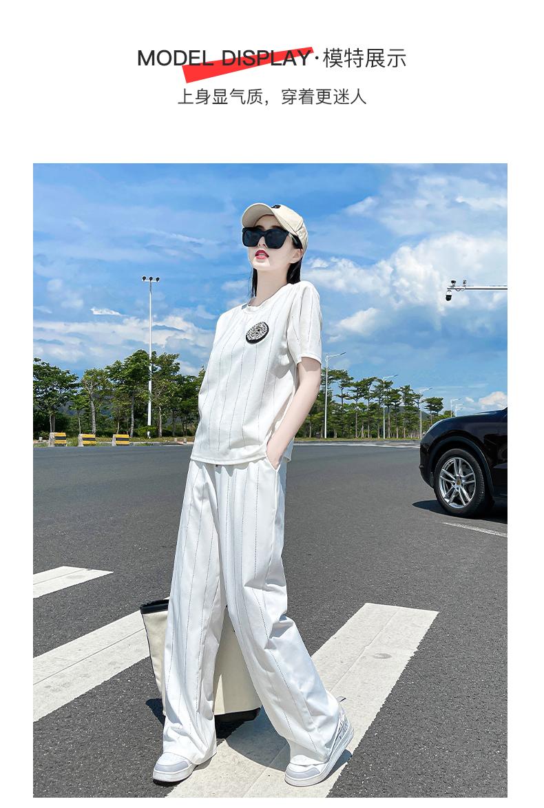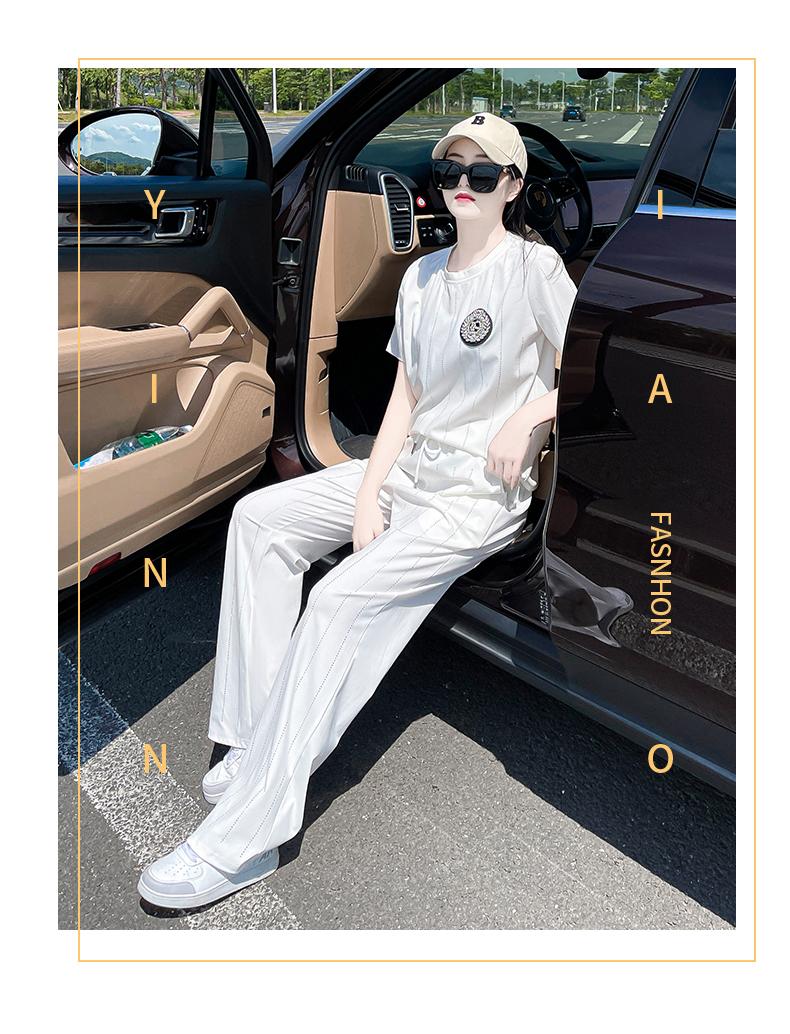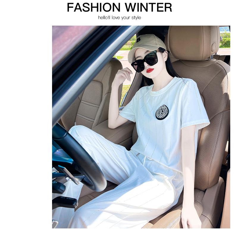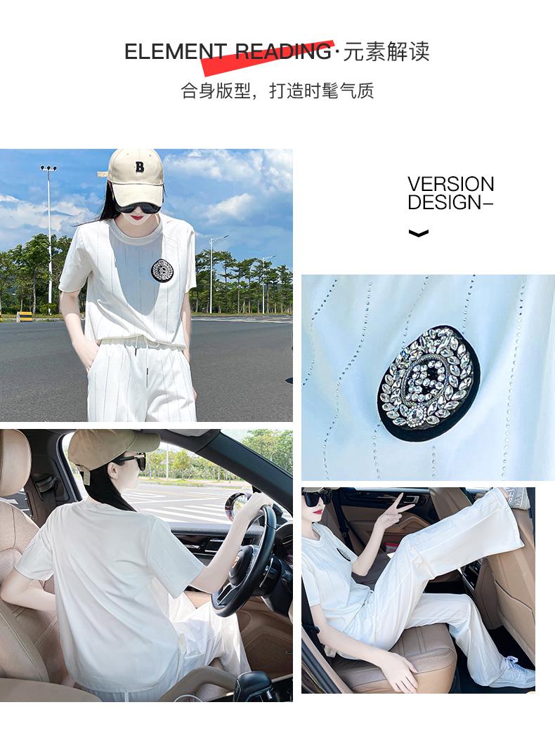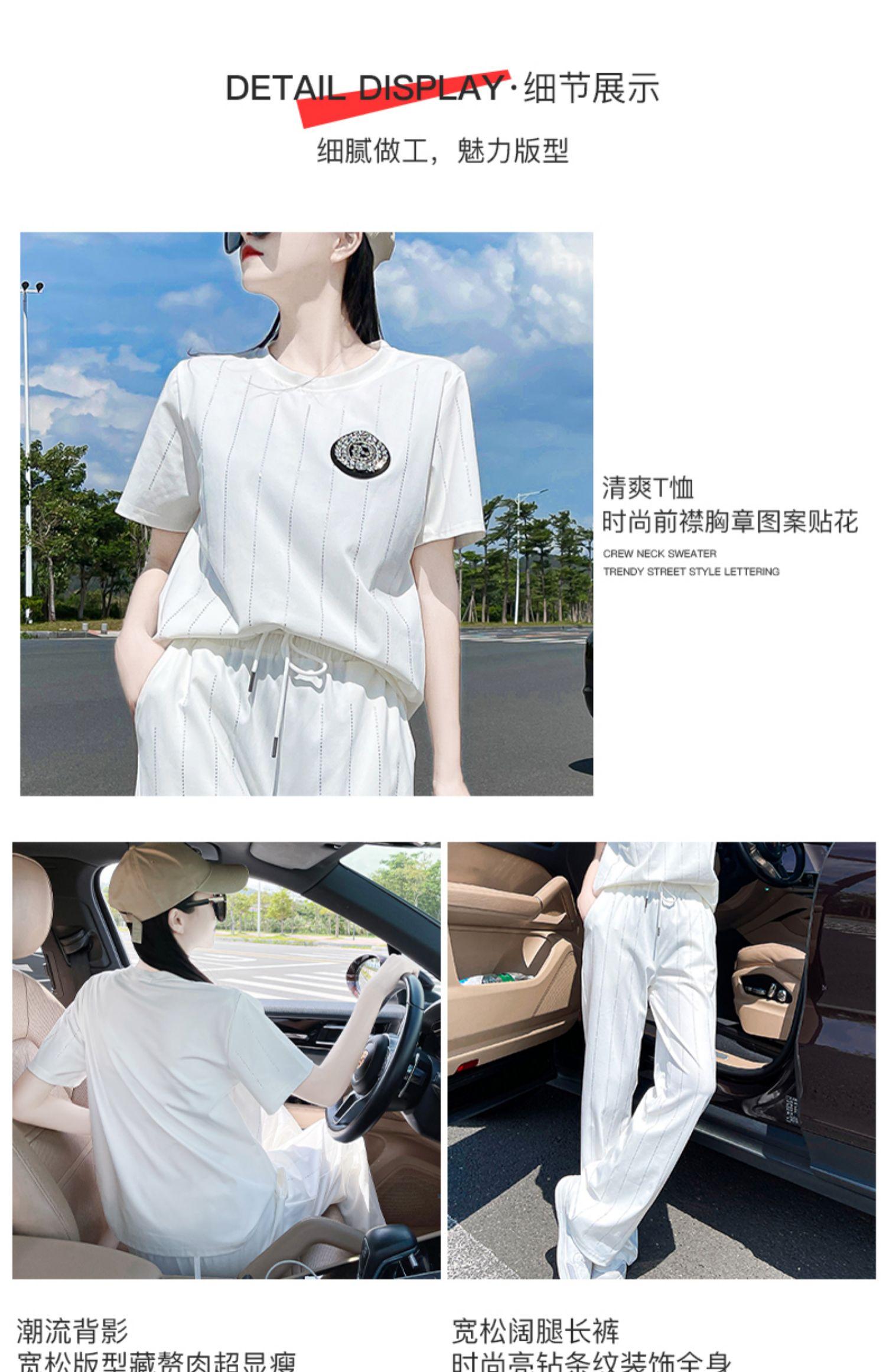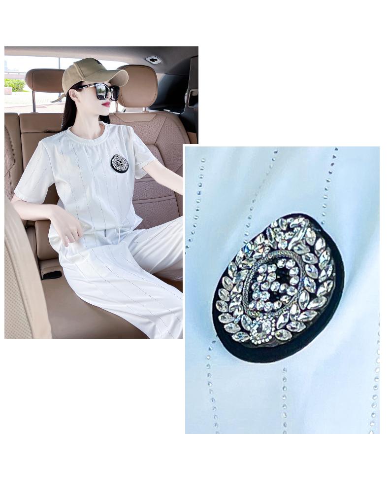 Traje deportivo europeo para mujer, verano 2022, nuevo estilo occidental, con perforación en caliente, adelgazante, elegante, informal, con pantalones de pierna ancha, conjunto de dos piezas