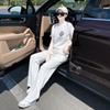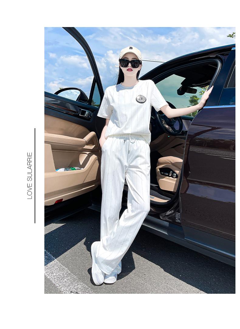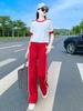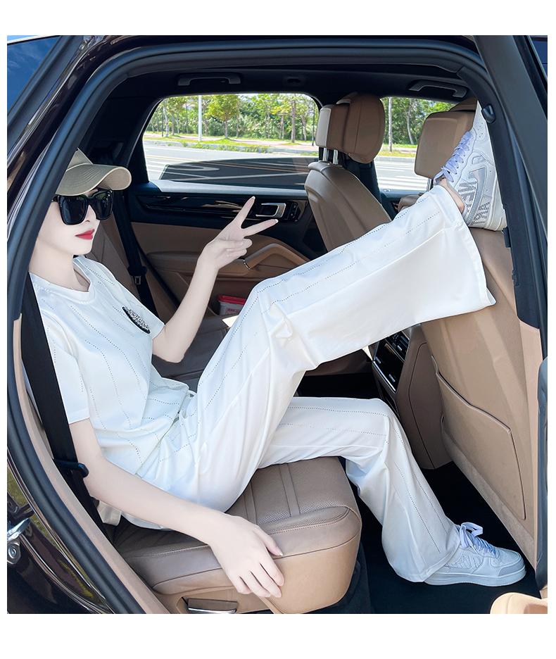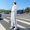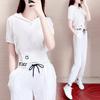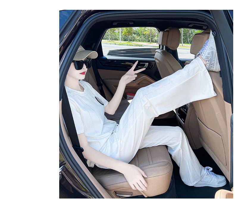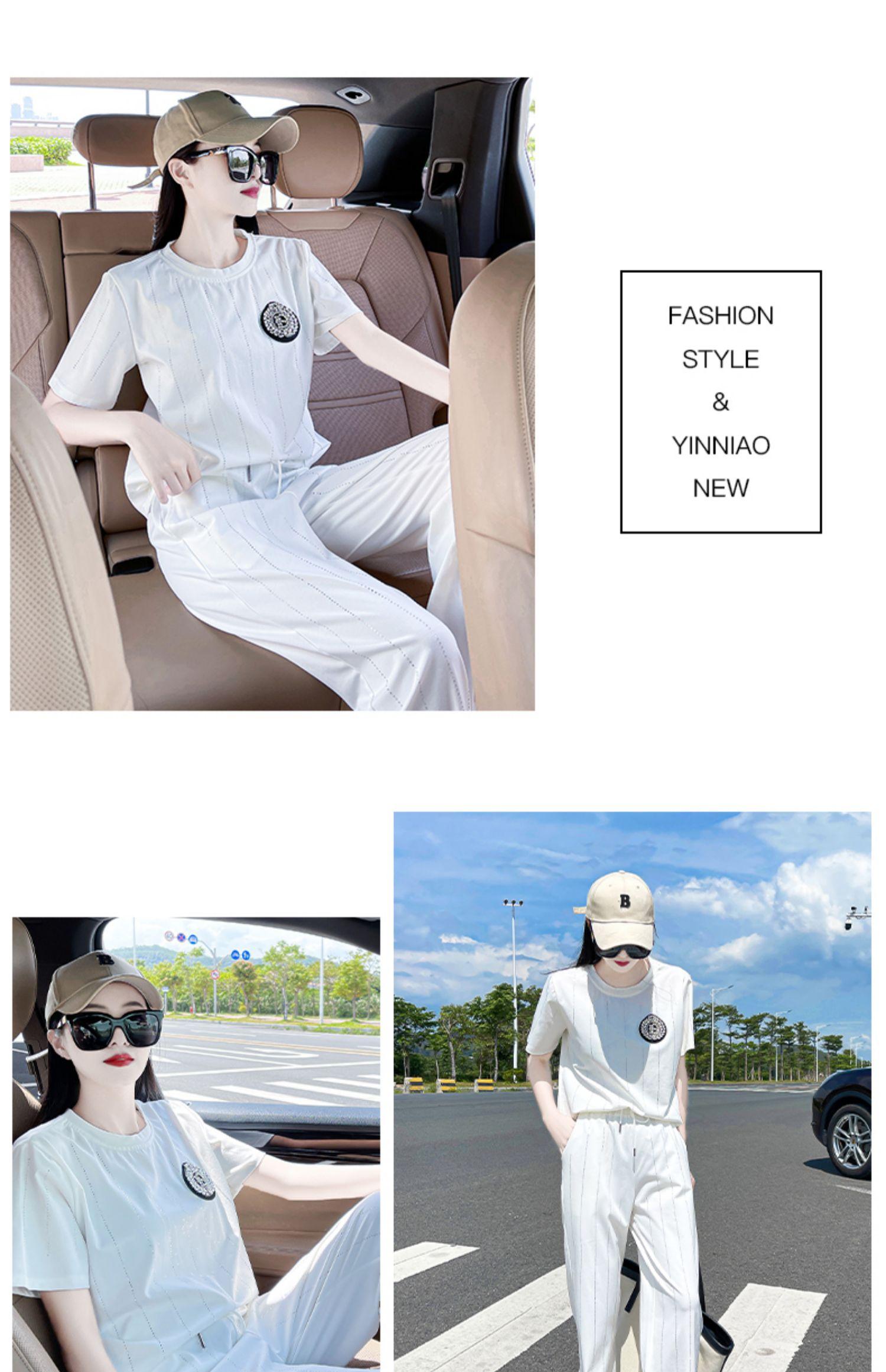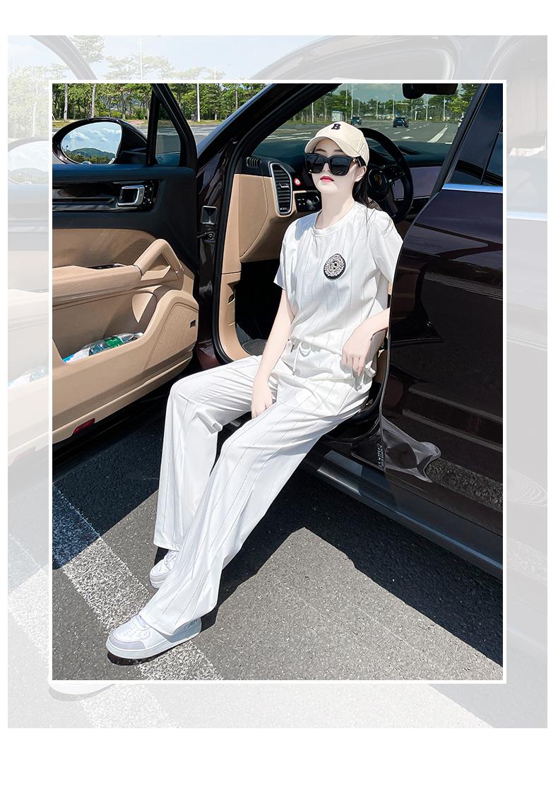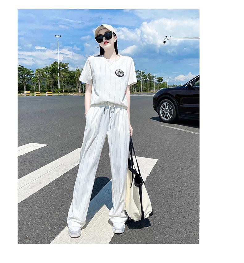 Traje deportivo europeo para mujer, verano 2022, nuevo estilo occidental, con perforación en caliente, adelgazante, elegante, informal, con pantalones de pierna ancha, conjunto de dos piezas