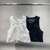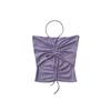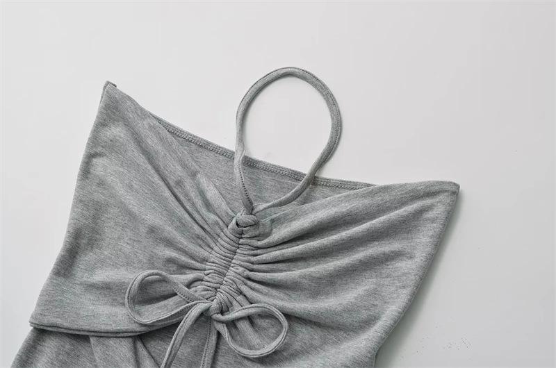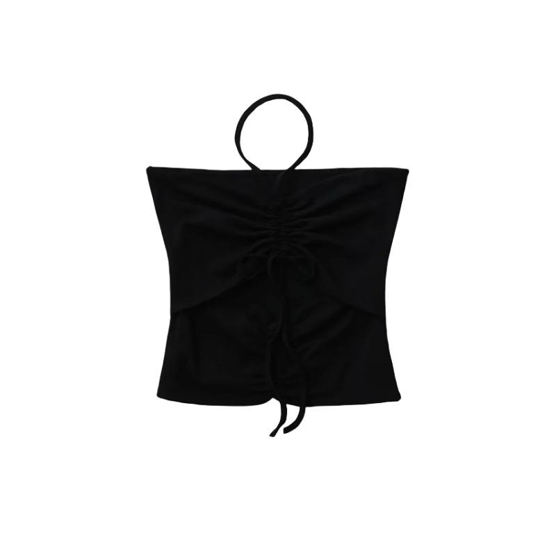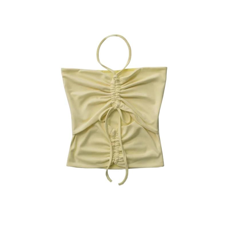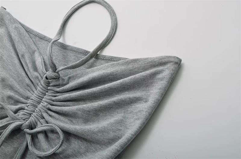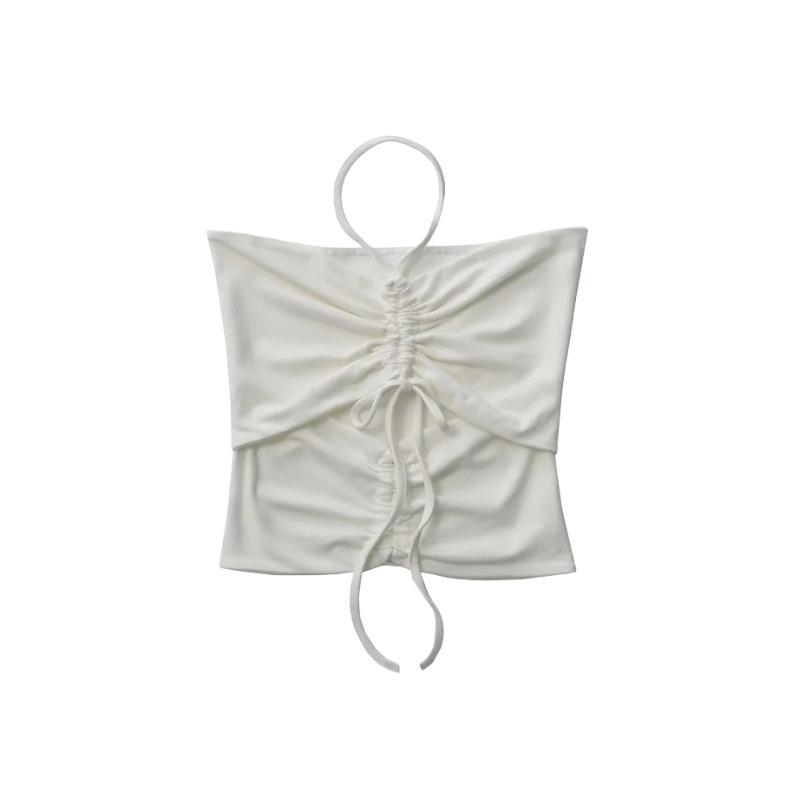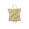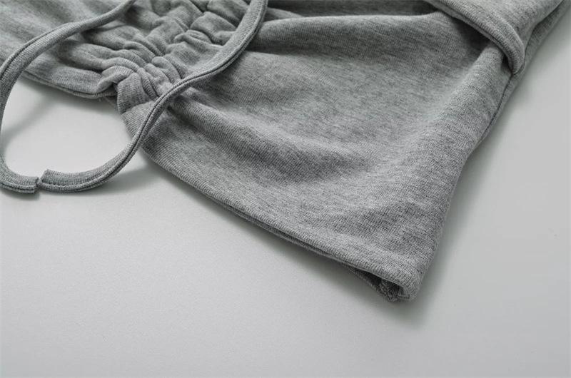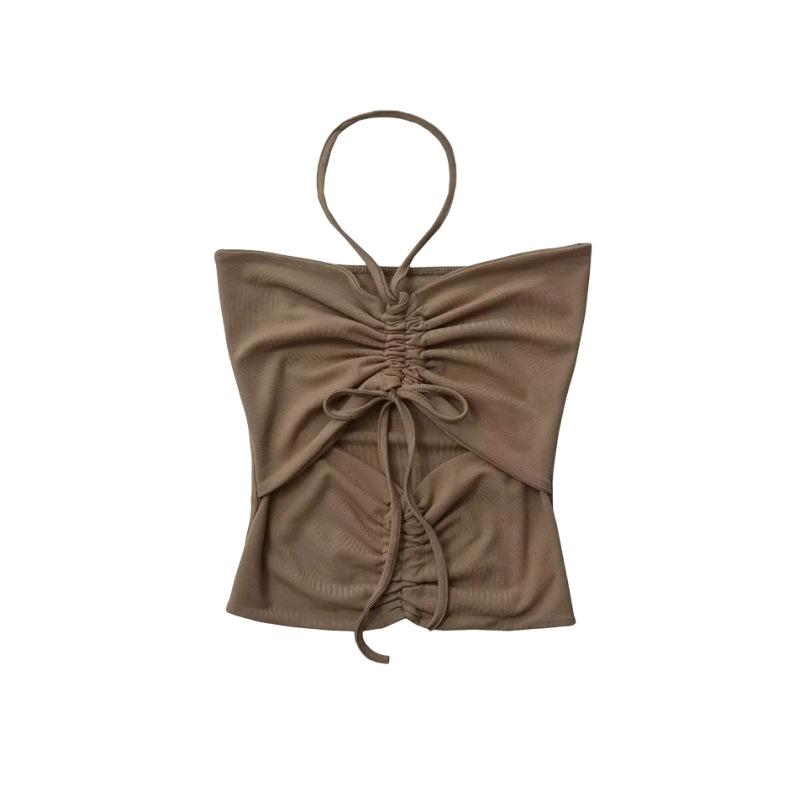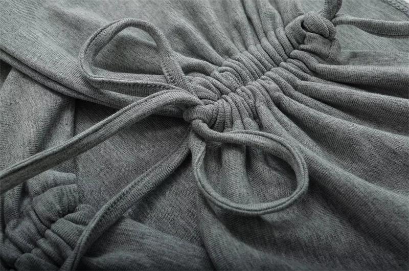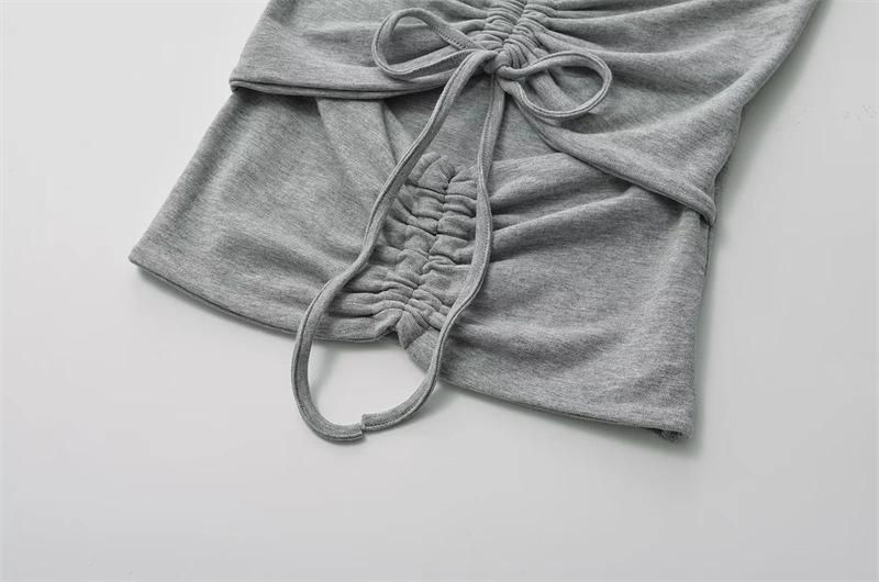 Camisola de cuello alto para mujer, nuevo diseño de nicho, con cordón en el pecho, plisada, con cordones, calada, ajustada y base.
