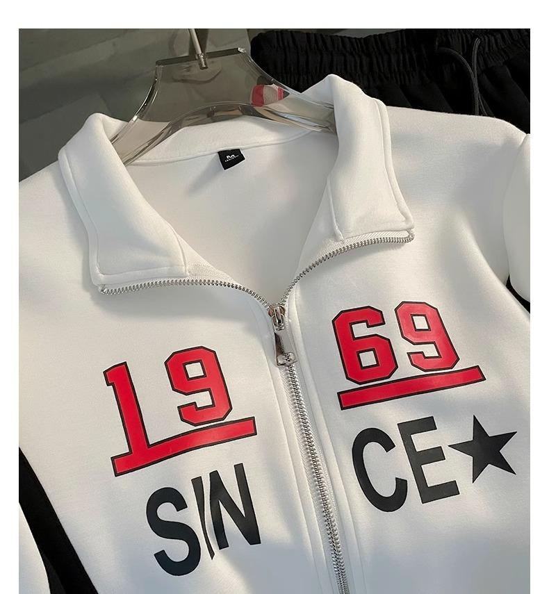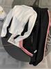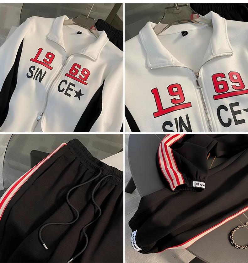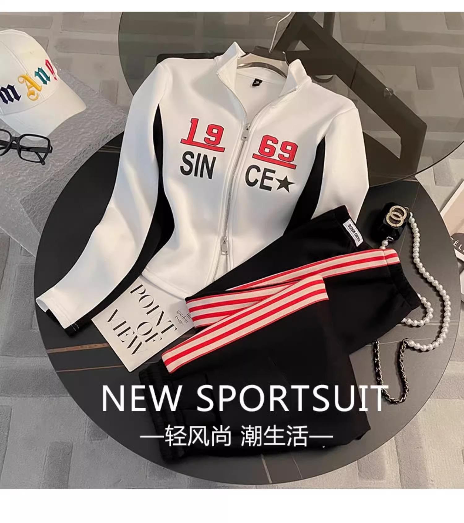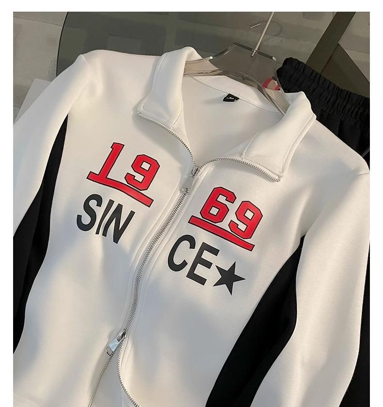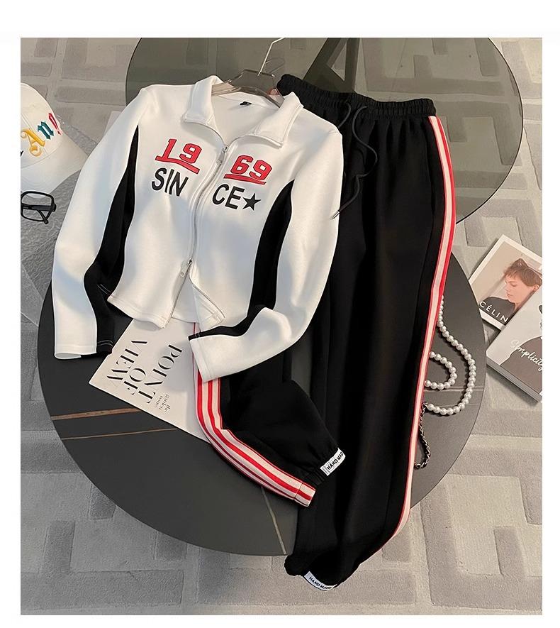 Conjunto deportivo informal de moda estilo Hong Kong para mujer, otoño 2024, nuevo cárdigan de manga larga con alfabeto, chaqueta y pantalones, conjunto de dos piezas