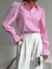 Camisa Casual de Algodón Azul para Desplazamiento Diario Primavera 2025 Camisa de Solapa con Manga Acampanada Largo Medio Ropa Profesional para Mujer