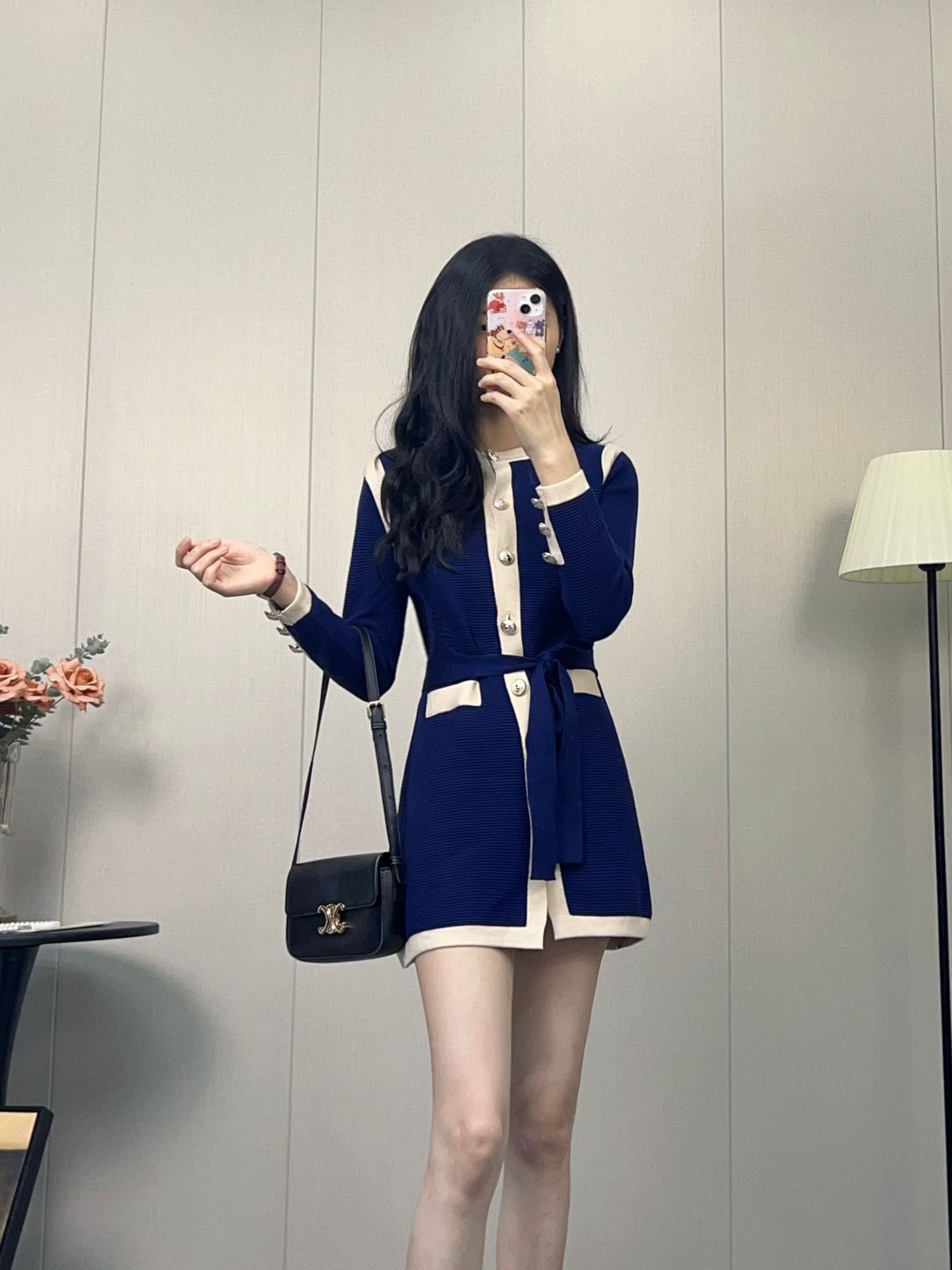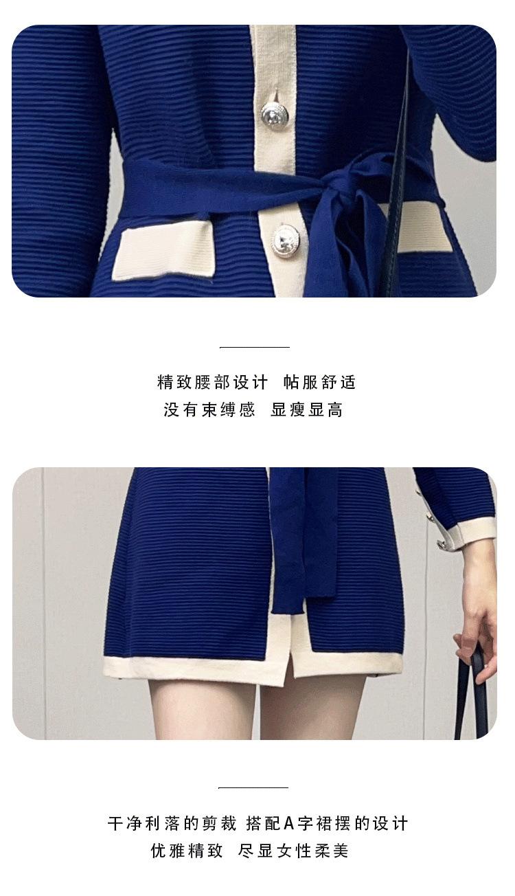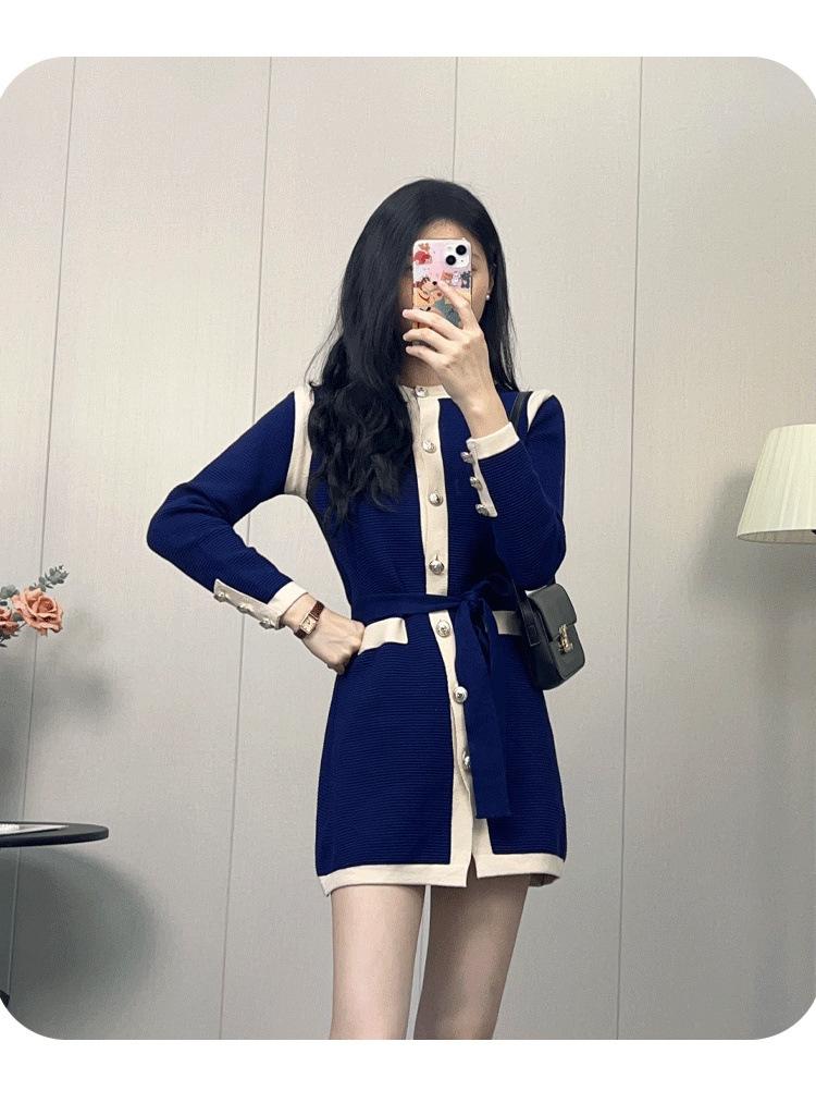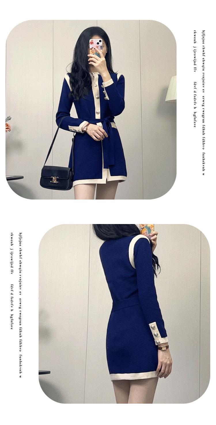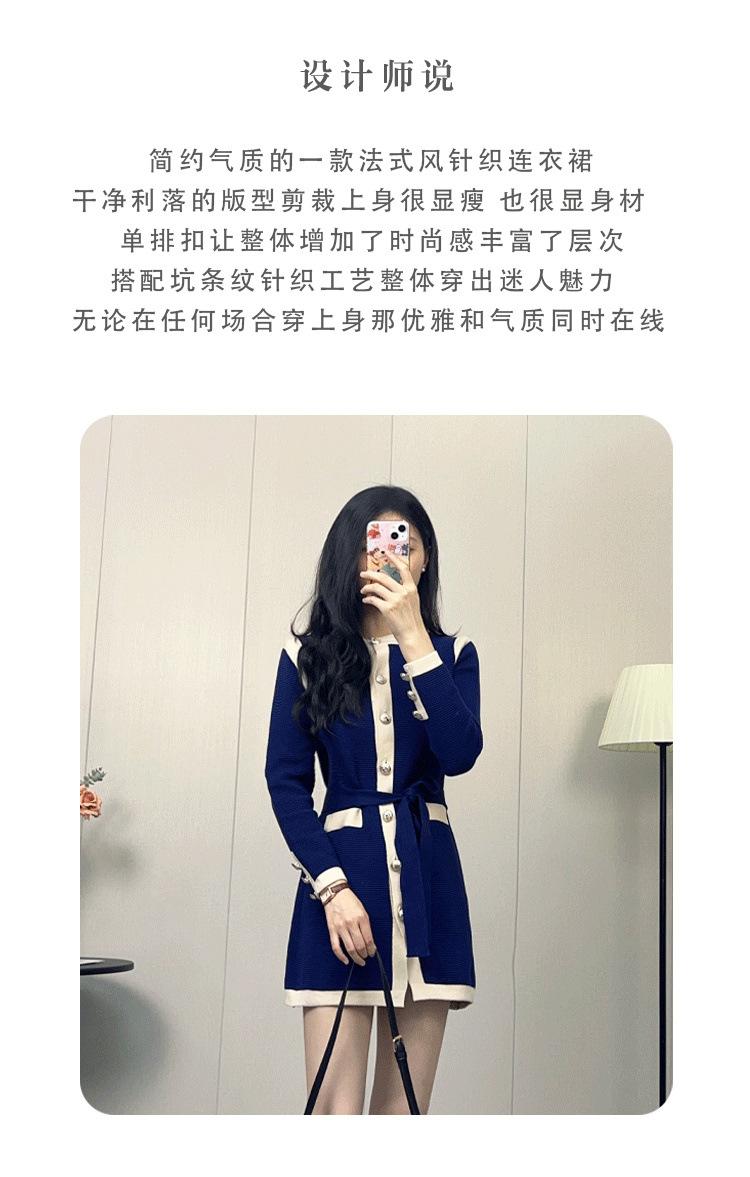 Vestido de Punto de Primavera Temprana 2025 Nuevo de un Solo Botón Francés Color en Contraste Elegante con Tirantes Cintura Ajustada Cuello Redondo Falda Línea A para Mujer