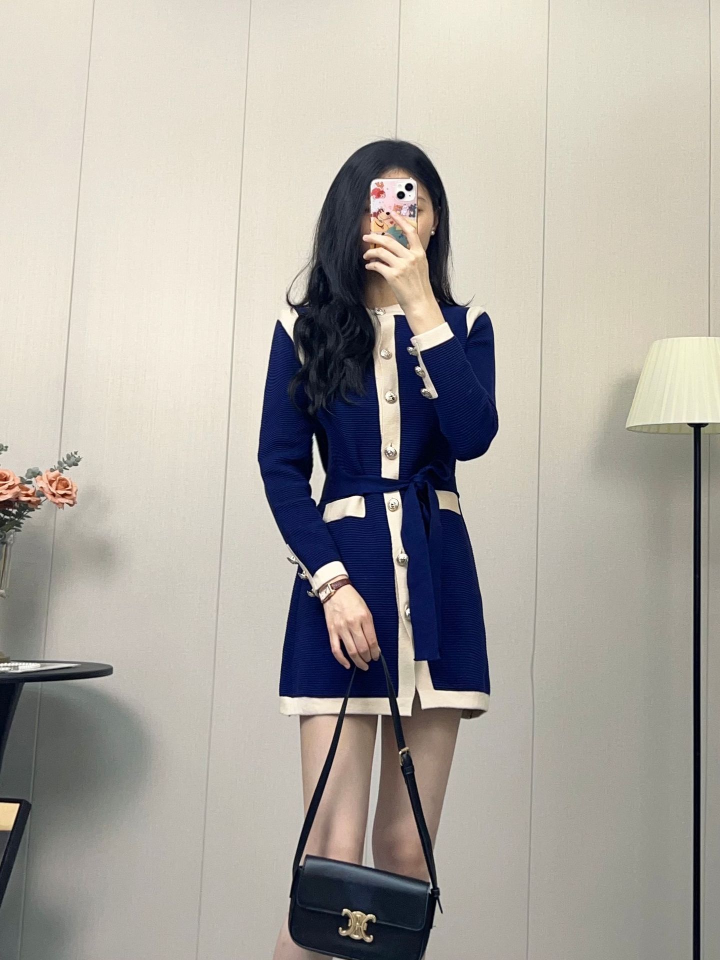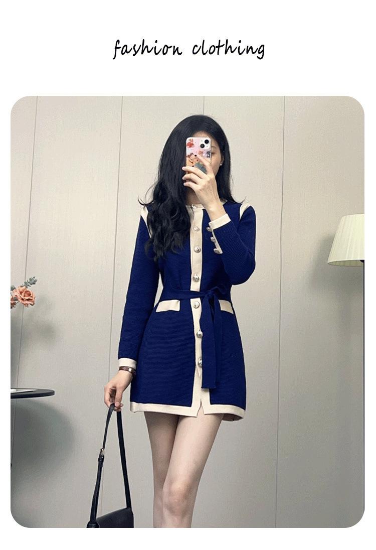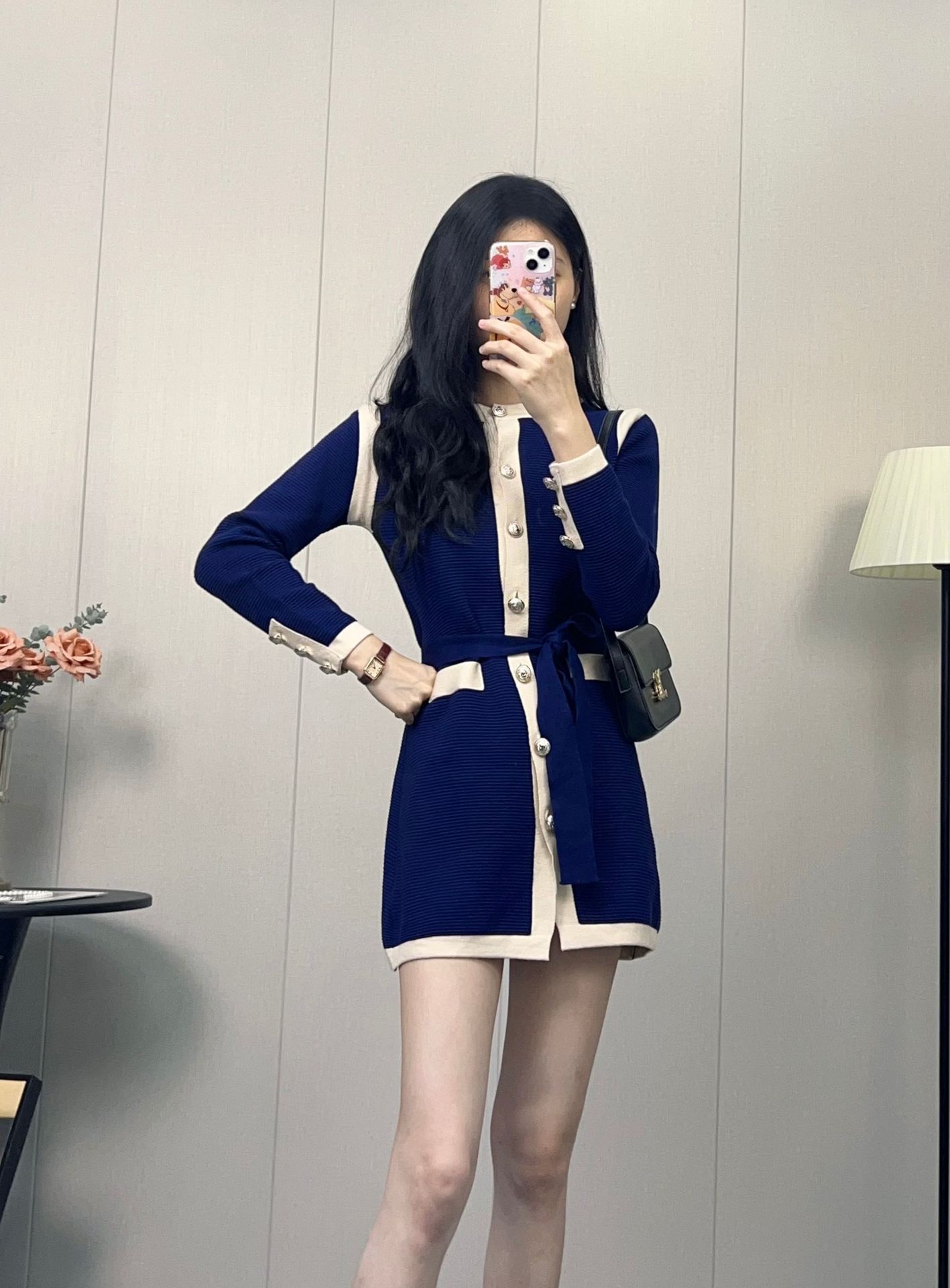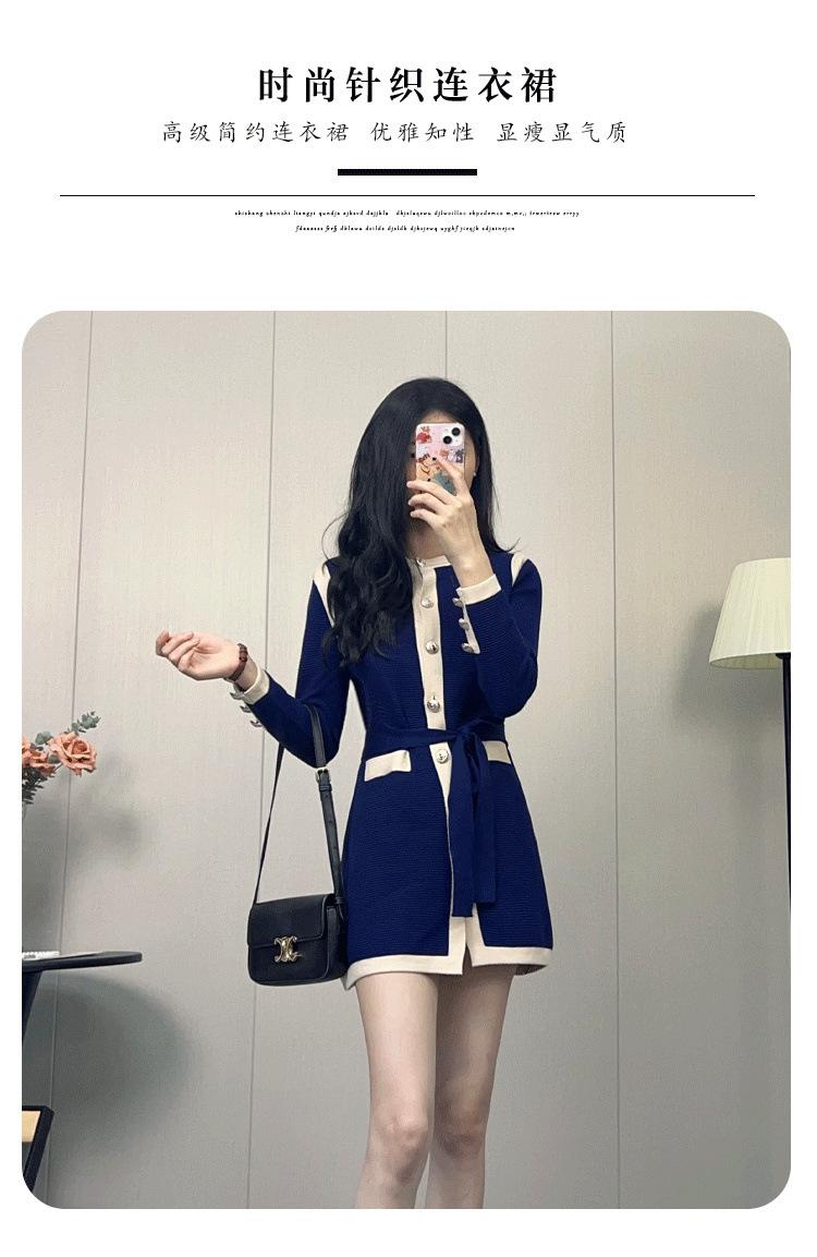 Vestido de Punto de Primavera Temprana 2025 Nuevo de un Solo Botón Francés Color en Contraste Elegante con Tirantes Cintura Ajustada Cuello Redondo Falda Línea A para Mujer