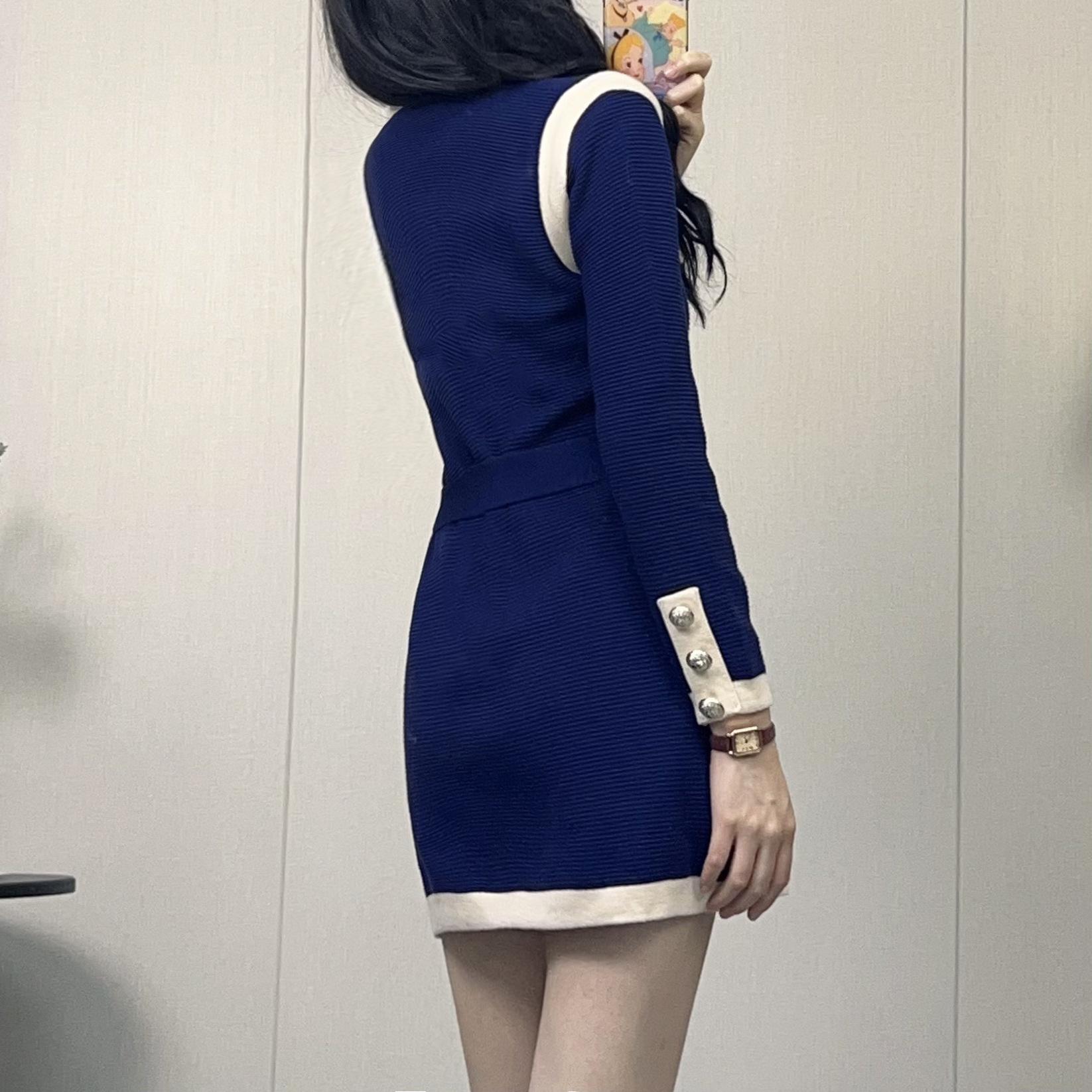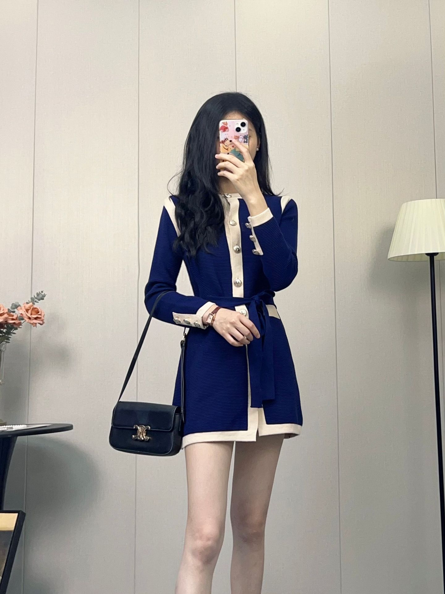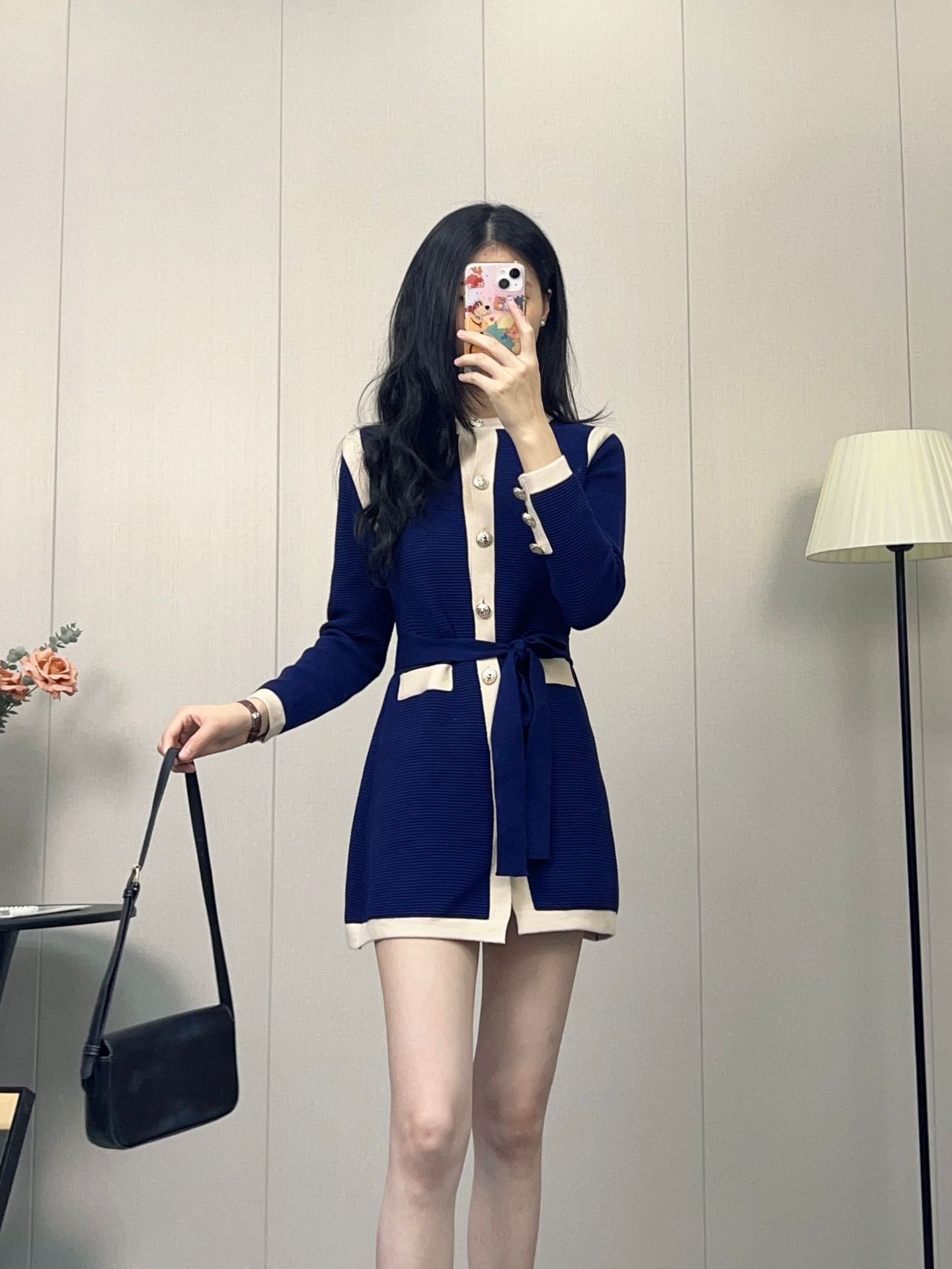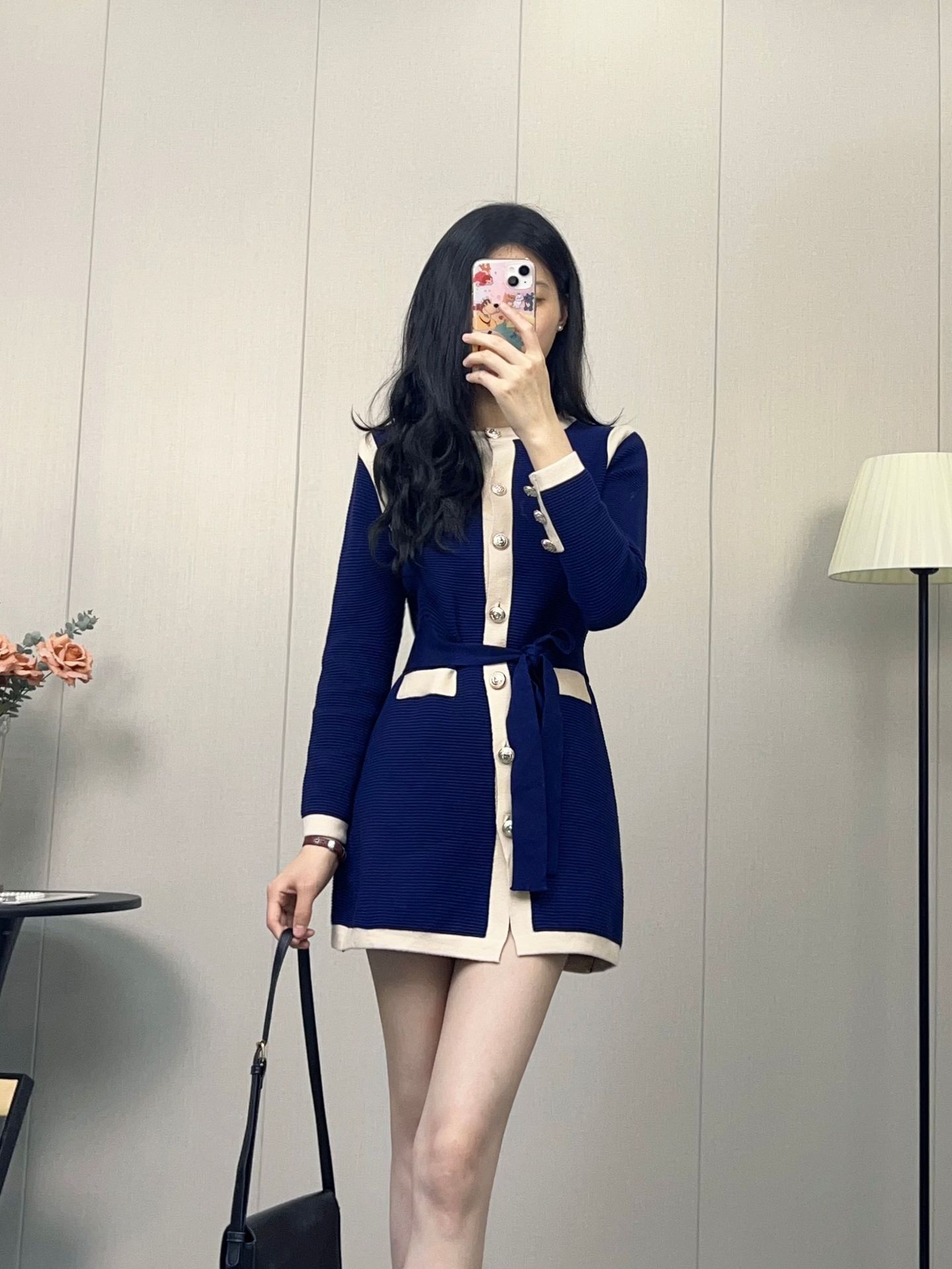 Vestido de Punto de Primavera Temprana 2025 Nuevo de un Solo Botón Francés Color en Contraste Elegante con Tirantes Cintura Ajustada Cuello Redondo Falda Línea A para Mujer