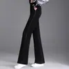 Pantalones negros micro para mujer de mediana edad, nuevos pantalones de otoño de cintura alta, elásticos y adelgazantes, pantalones casuales rectos.
