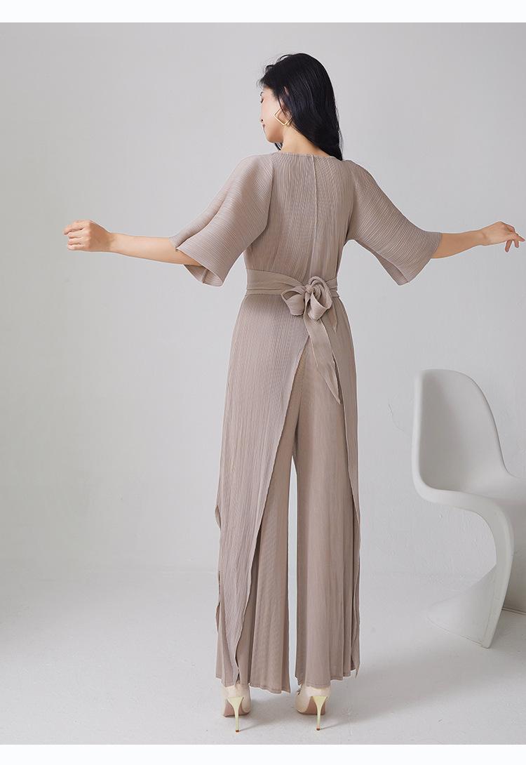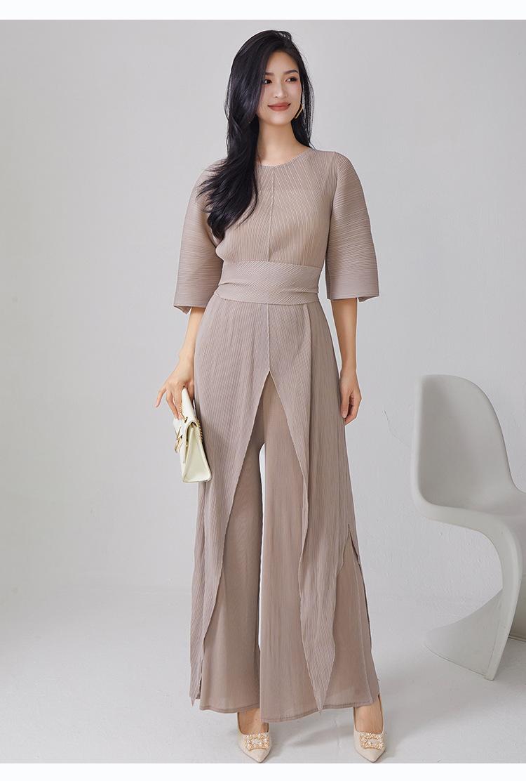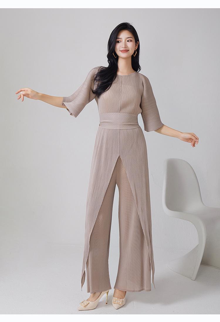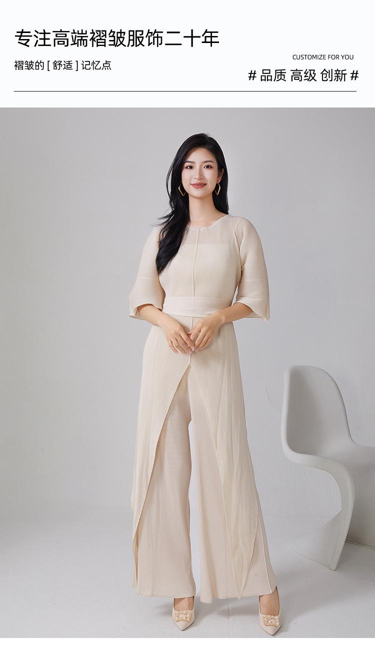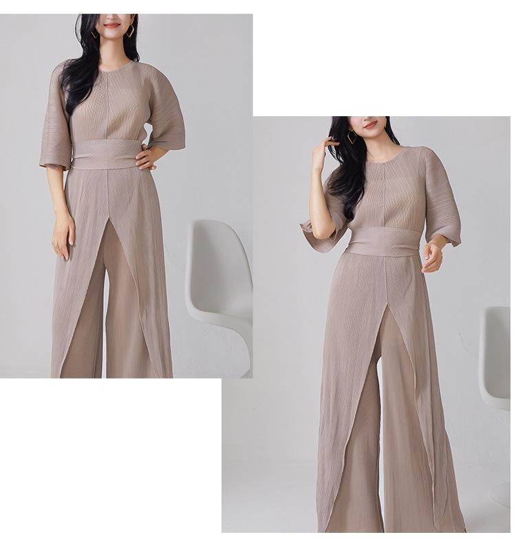 Comercio exterior ropa de otoño para mujer un conjunto de top irregular con cordones pantalones casuales drapeados traje Miyake traje de dos piezas