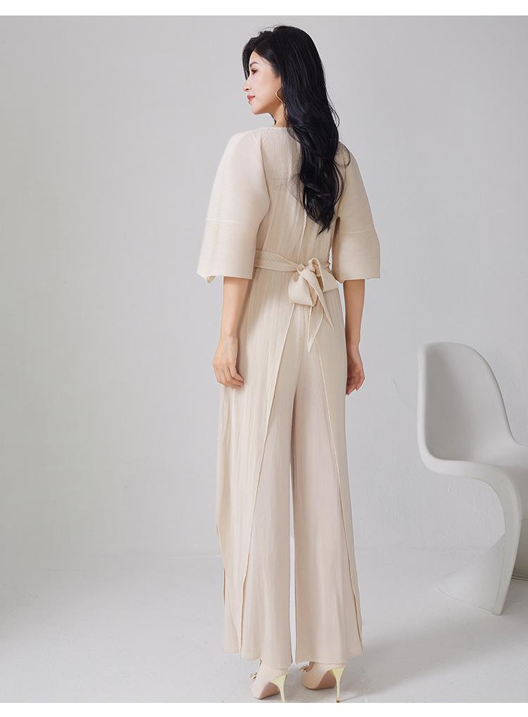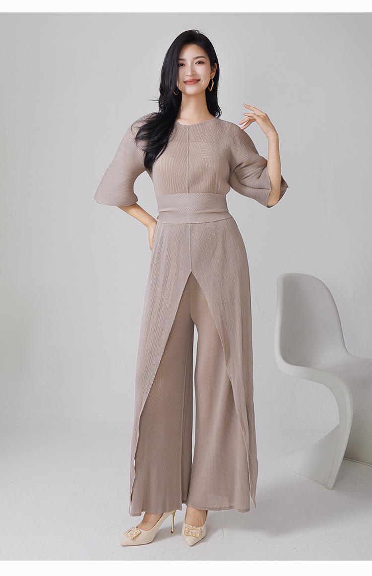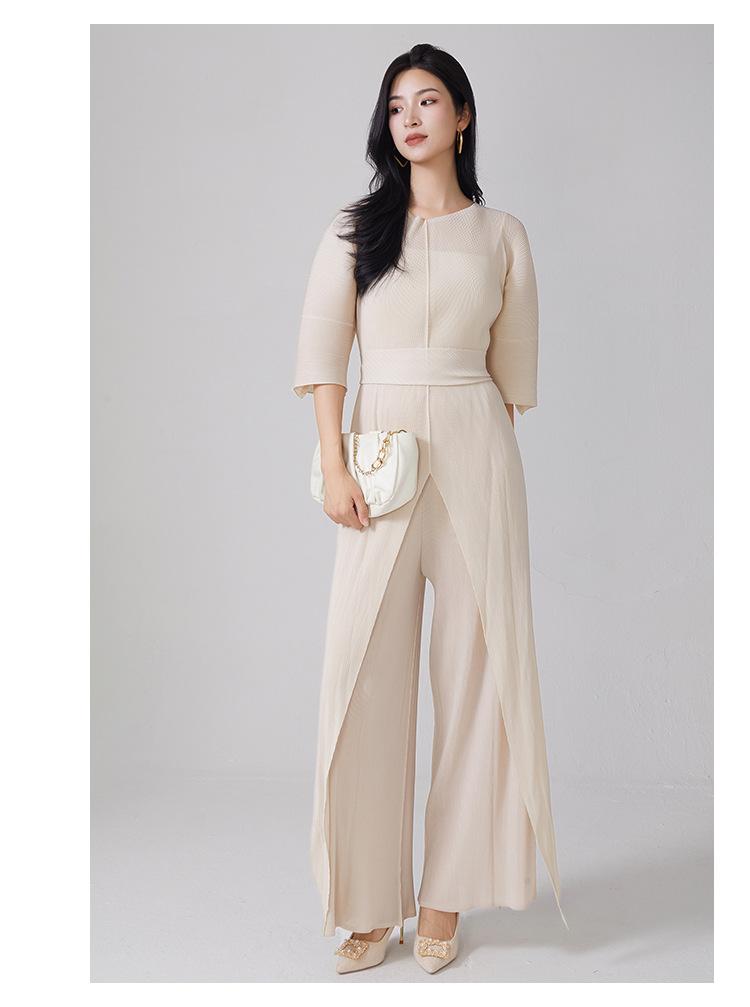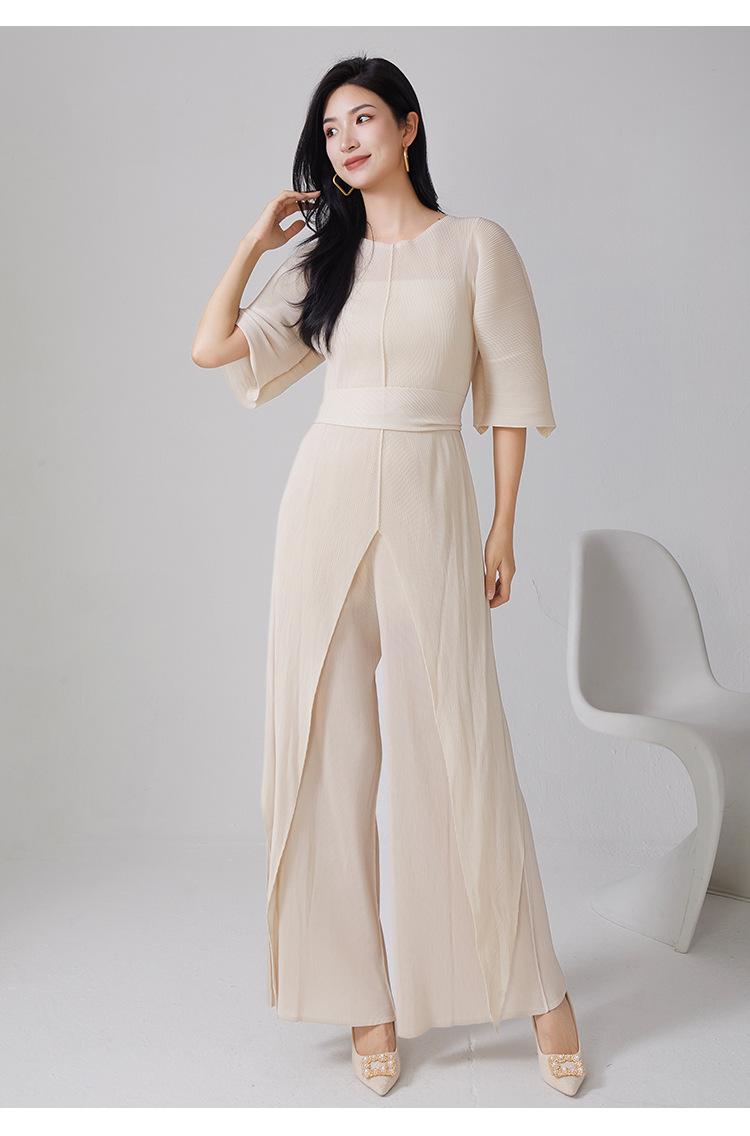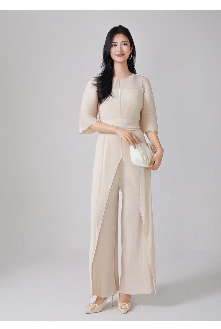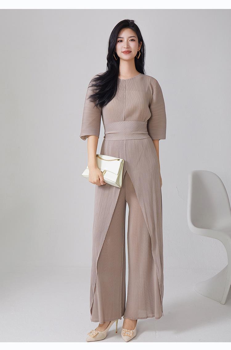Comercio exterior ropa de otoño para mujer un conjunto de top irregular con cordones pantalones casuales drapeados traje Miyake traje de dos piezas