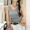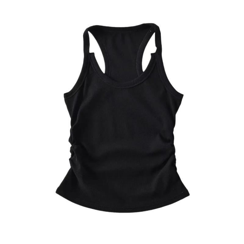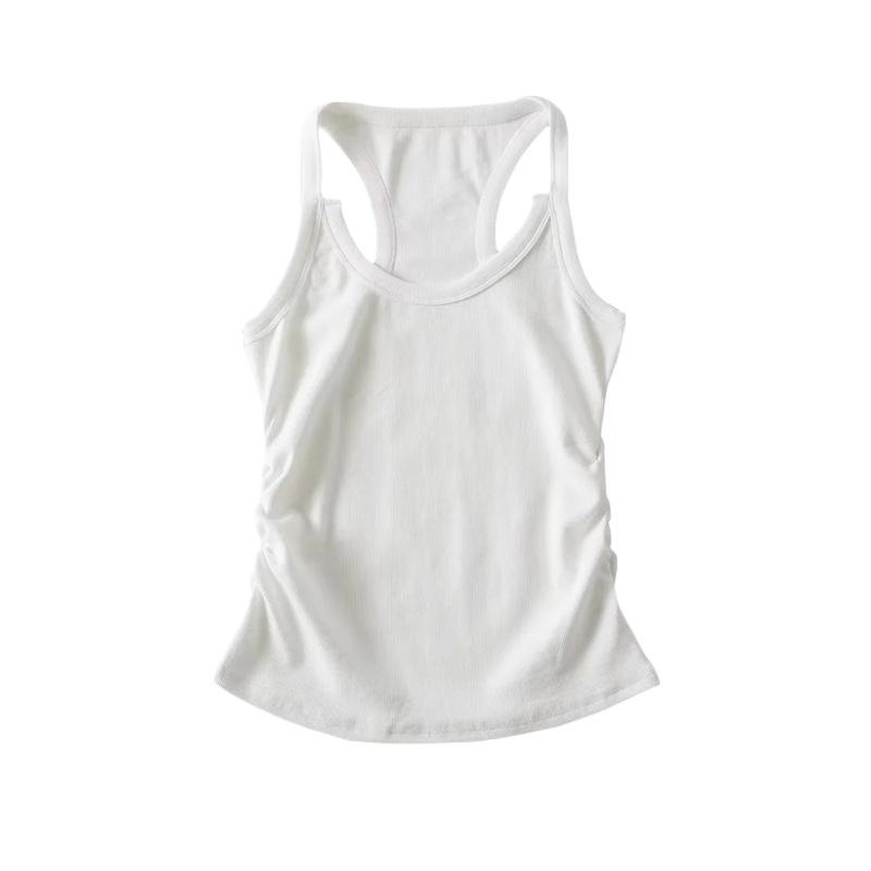 Chaleco de hilo en forma de I sin mangas para mujer, prenda exterior plisada de corte ajustado, básica y a juego, de verano, de color liso