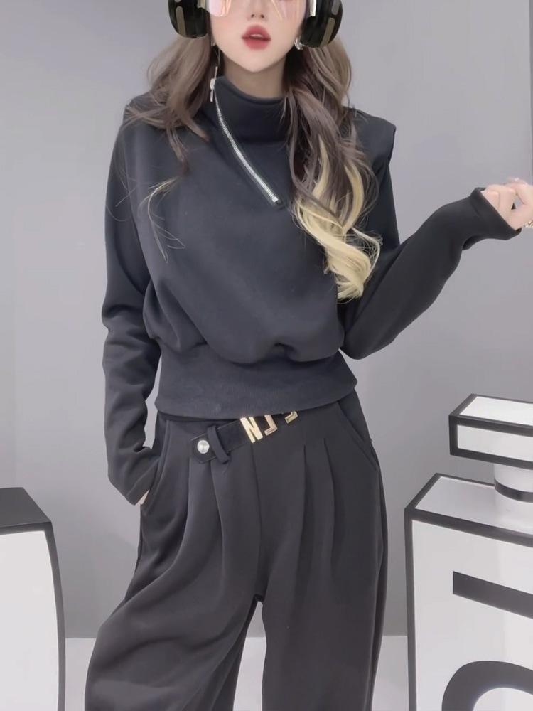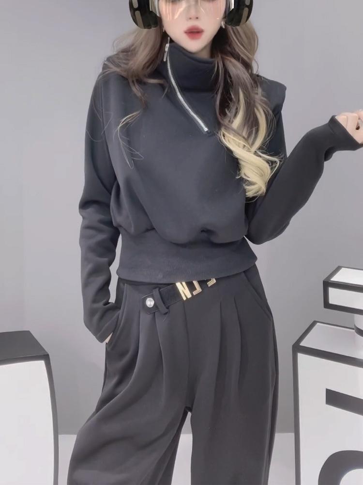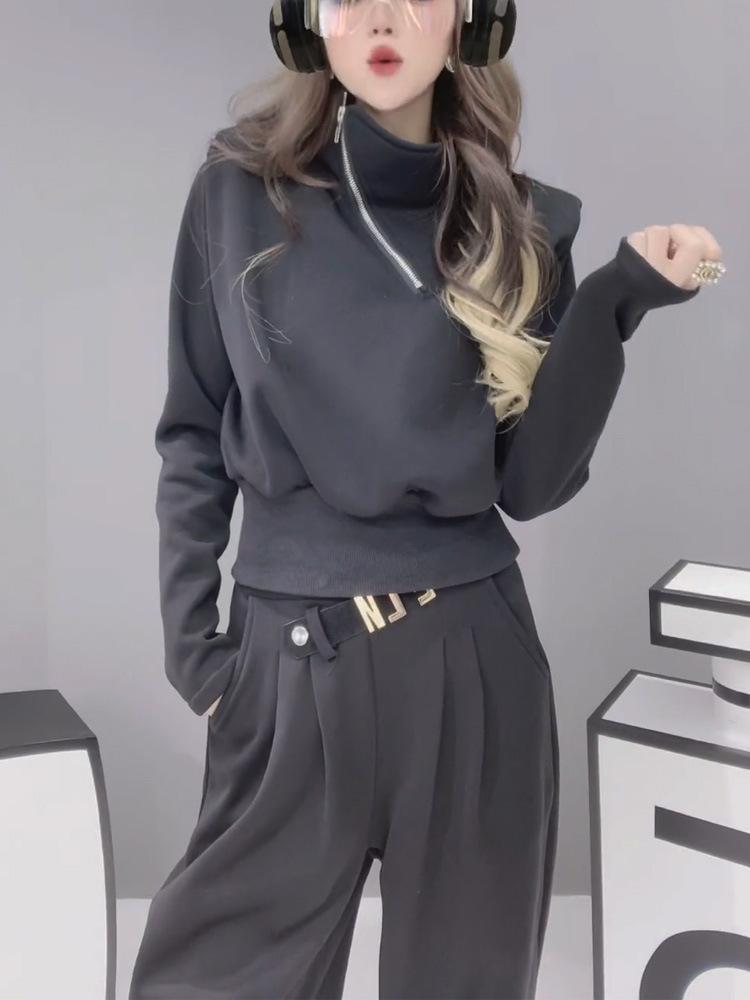Traje Deportivo Casual de Moda de Primavera y Otoño para Mujer 2023 Nuevo Estilo Elegante Top Corto Conjunto de Dos Piezas Tendencia Coreana
