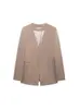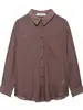 2024 Otoño e Invierno nueva blusa de mujer de color sólido con cuello en V y manga larga con costuras de encaje estilo europeo y americano transfronterizo