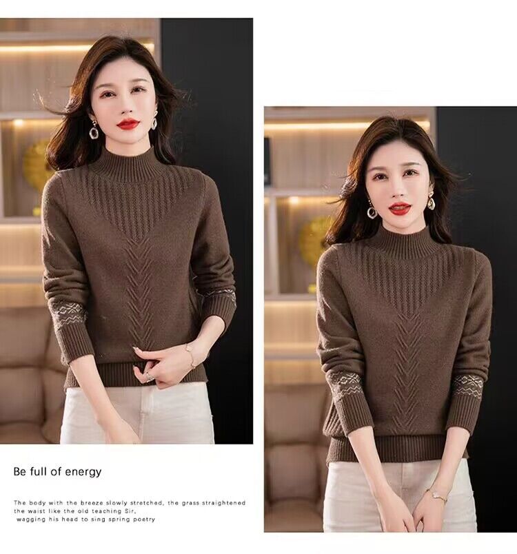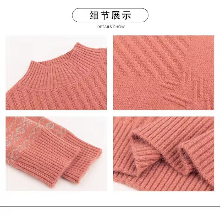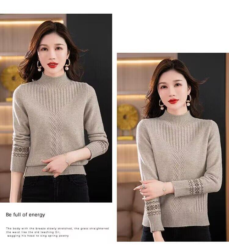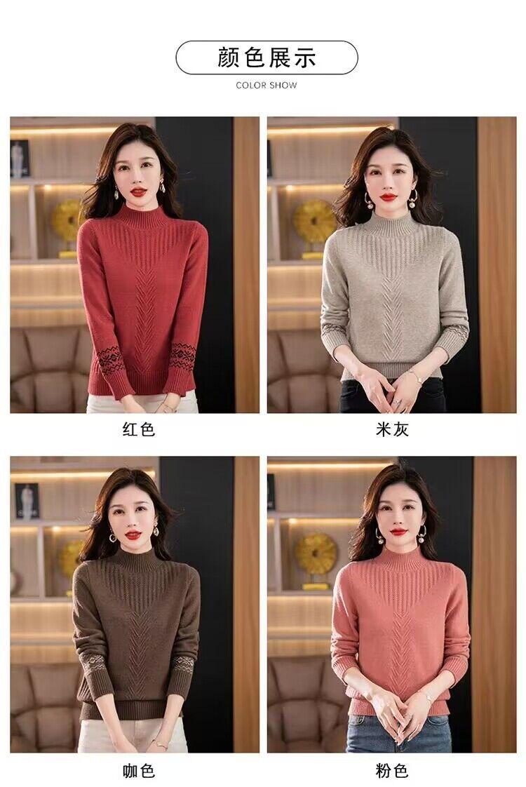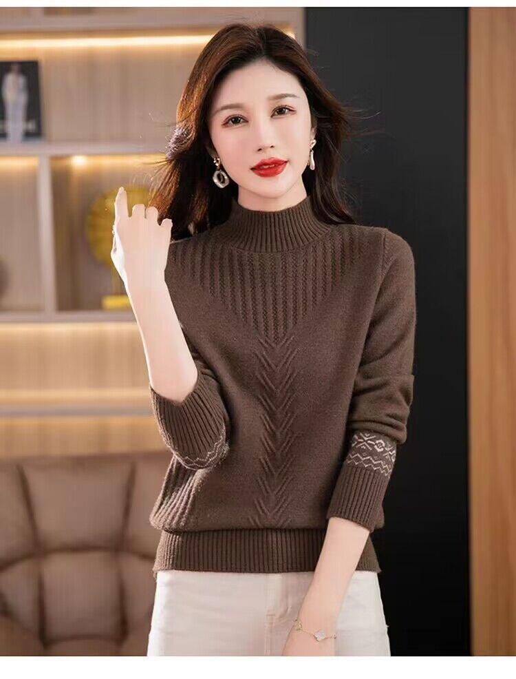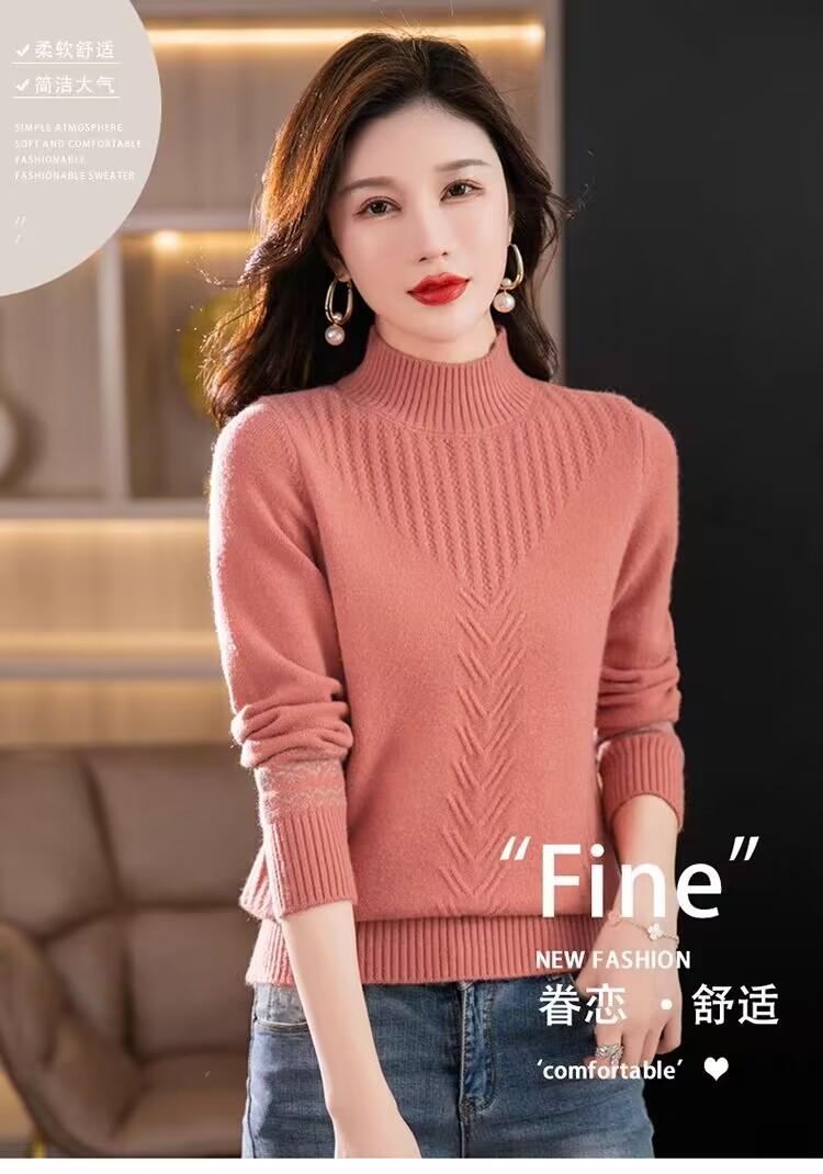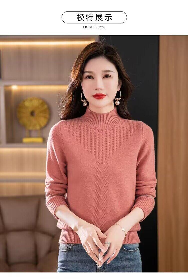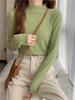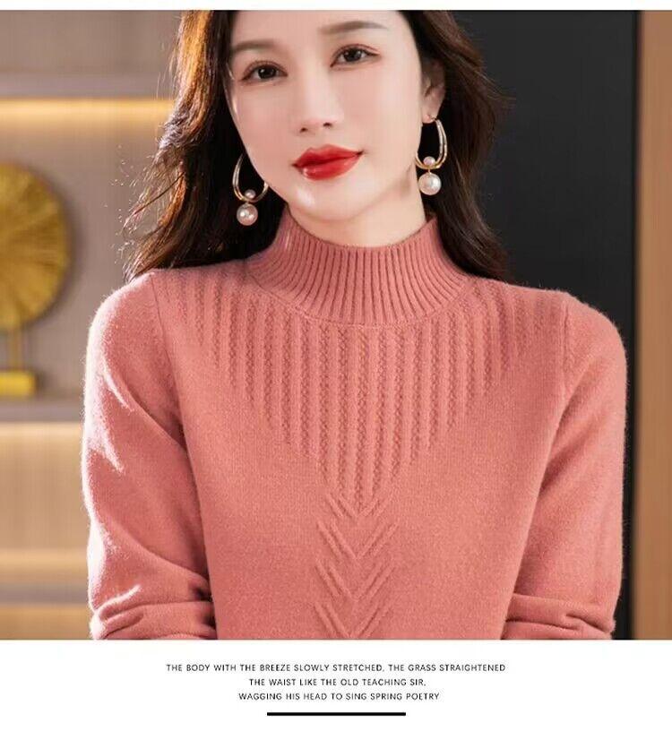 Suéter Corto de Cuello Medio Alto para Mujer 2024 Nuevo Otoño e Invierno Camiseta Básica de Punto Grueso