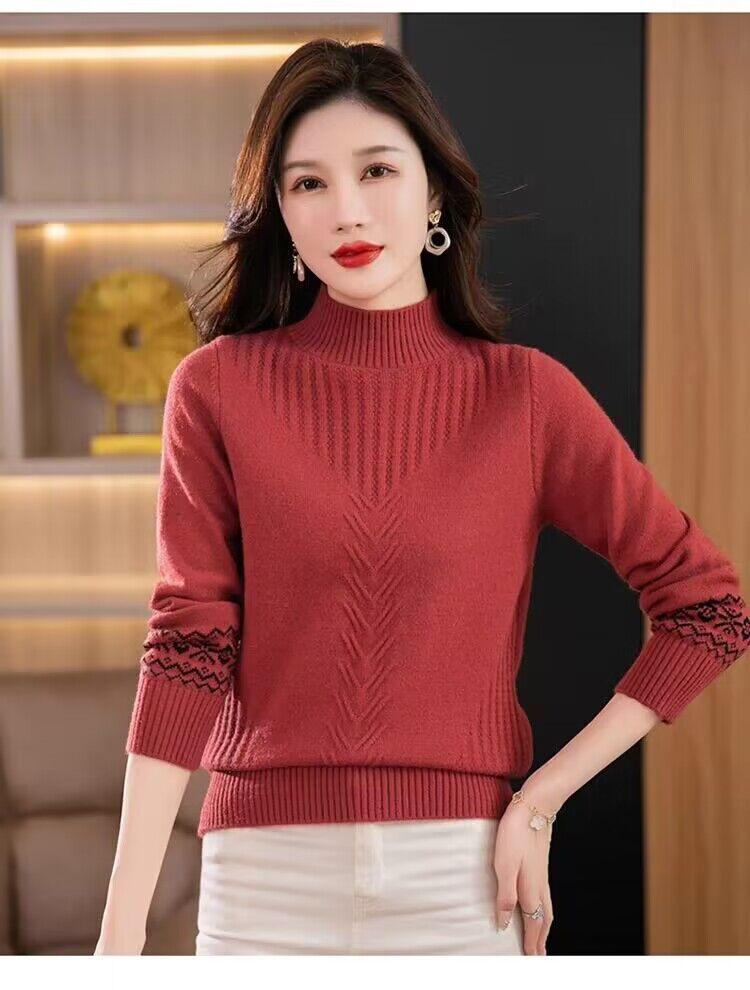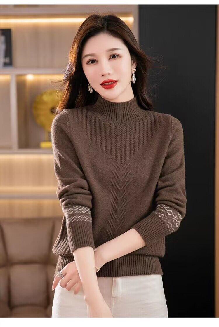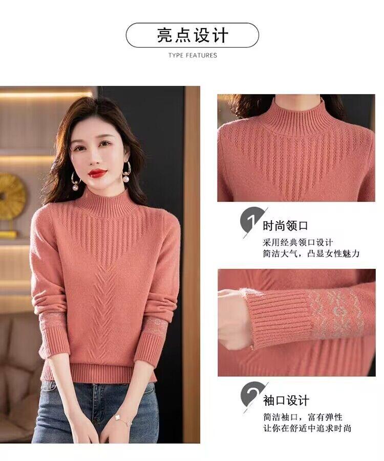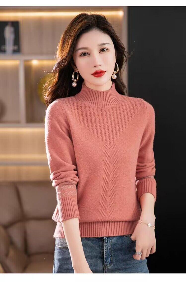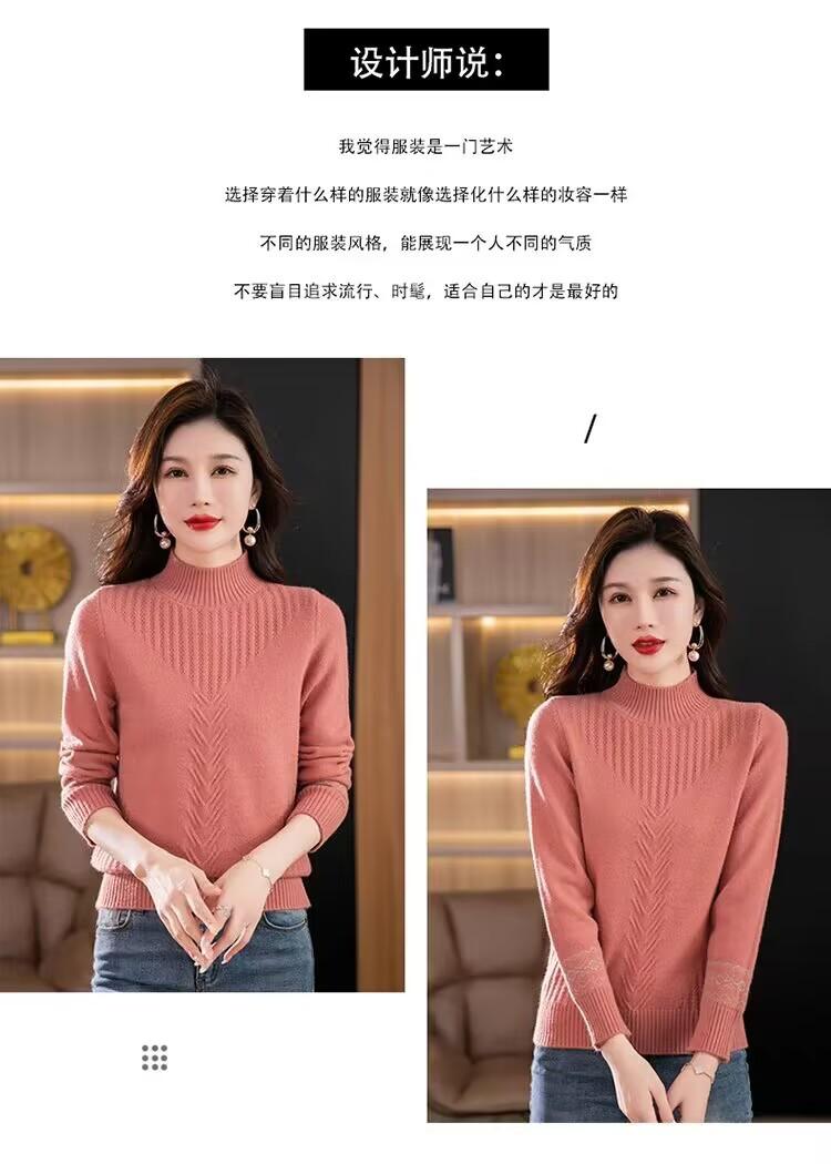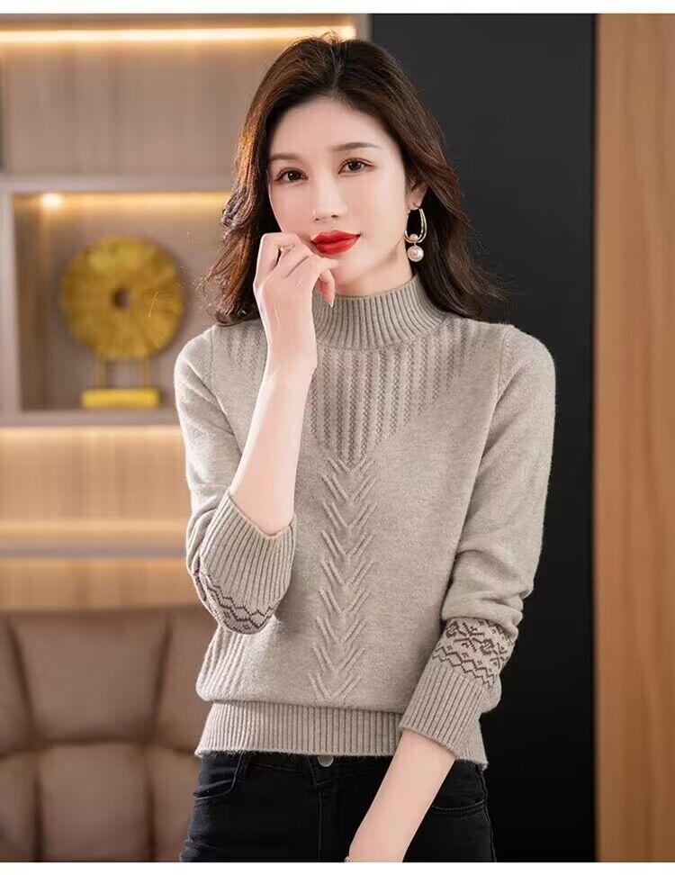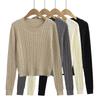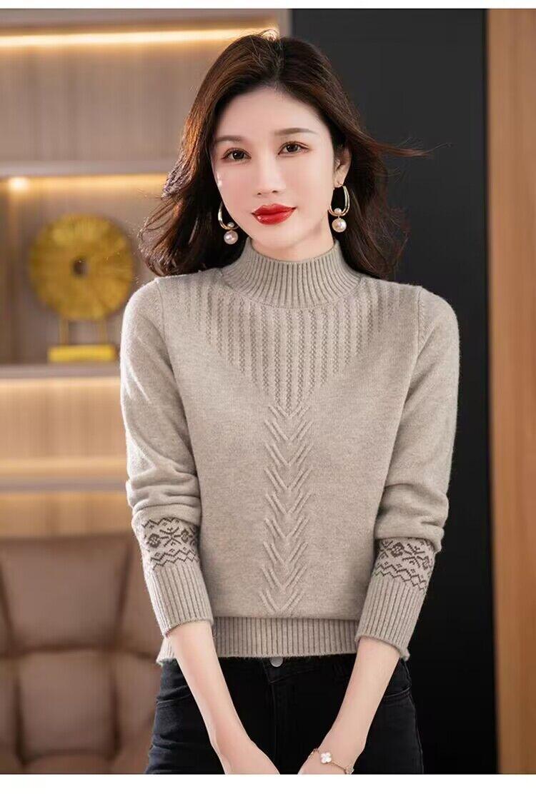 Suéter Corto de Cuello Medio Alto para Mujer 2024 Nuevo Otoño e Invierno Camiseta Básica de Punto Grueso