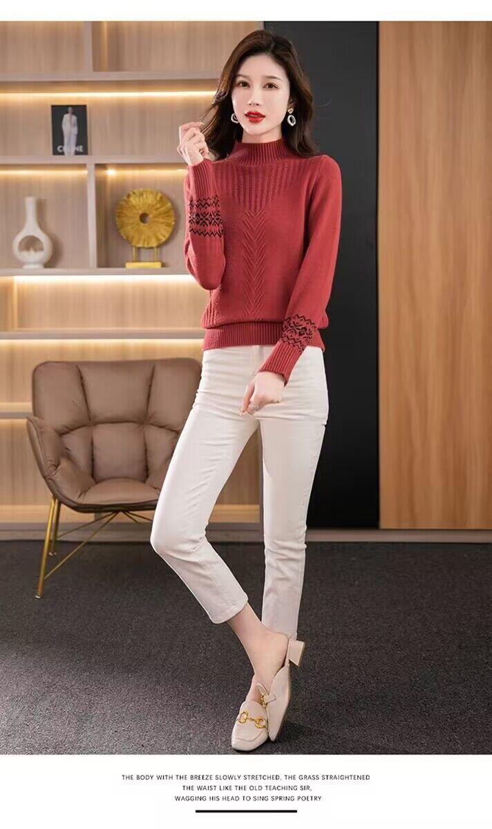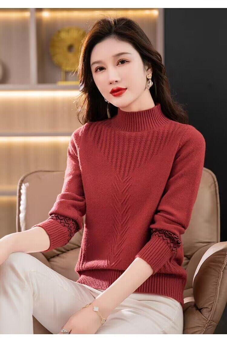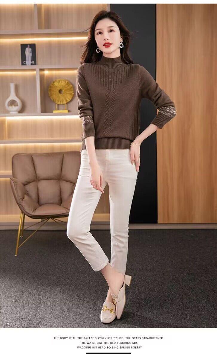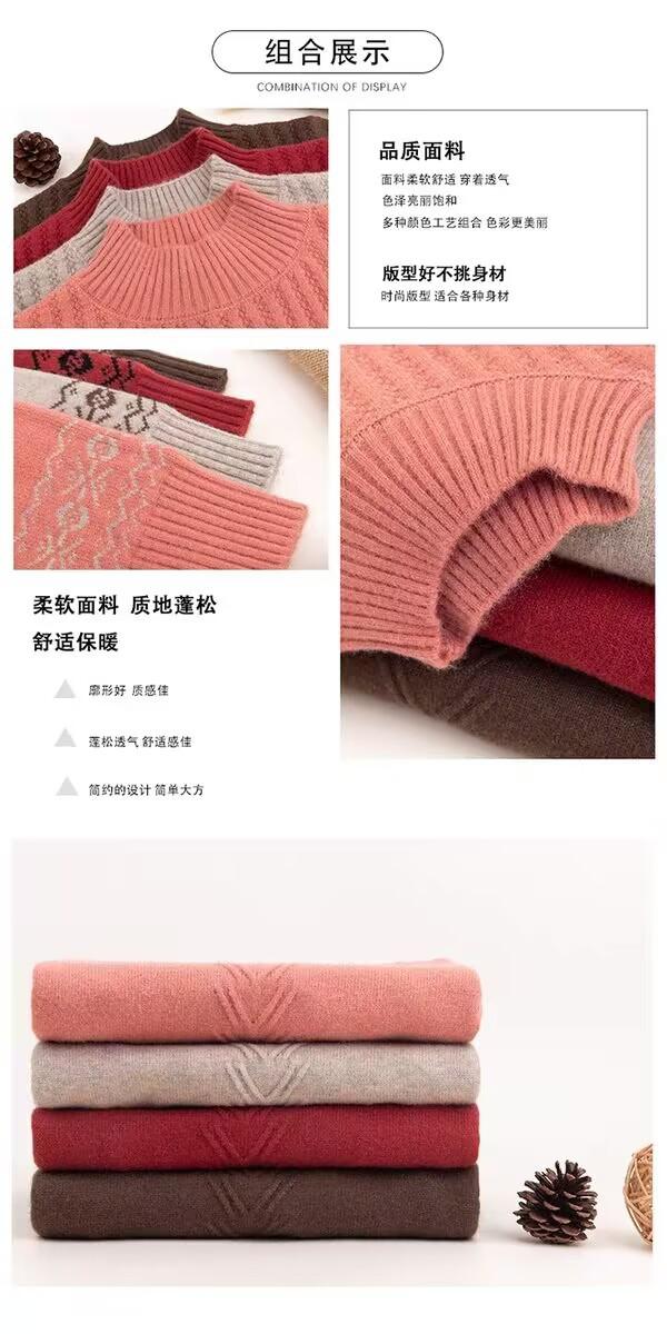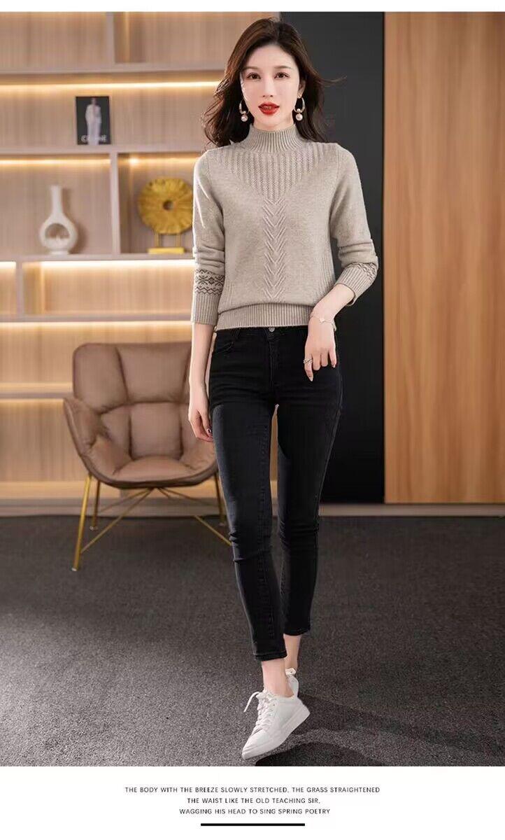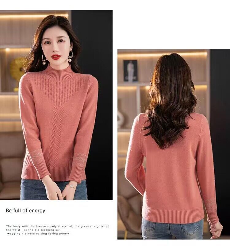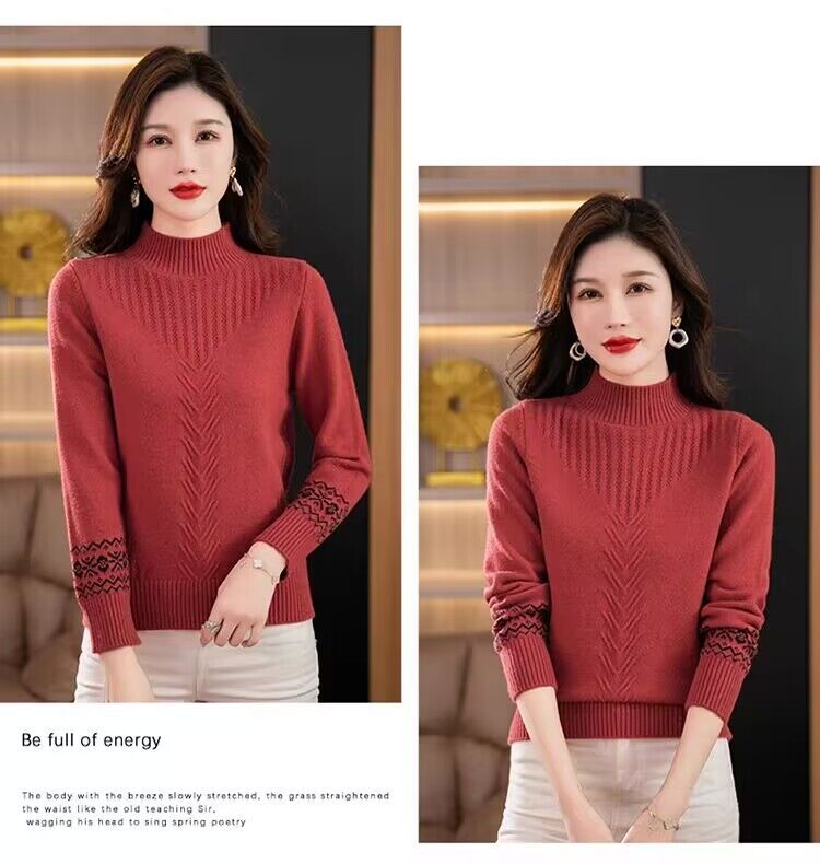 Suéter Corto de Cuello Medio Alto para Mujer 2024 Nuevo Otoño e Invierno Camiseta Básica de Punto Grueso
