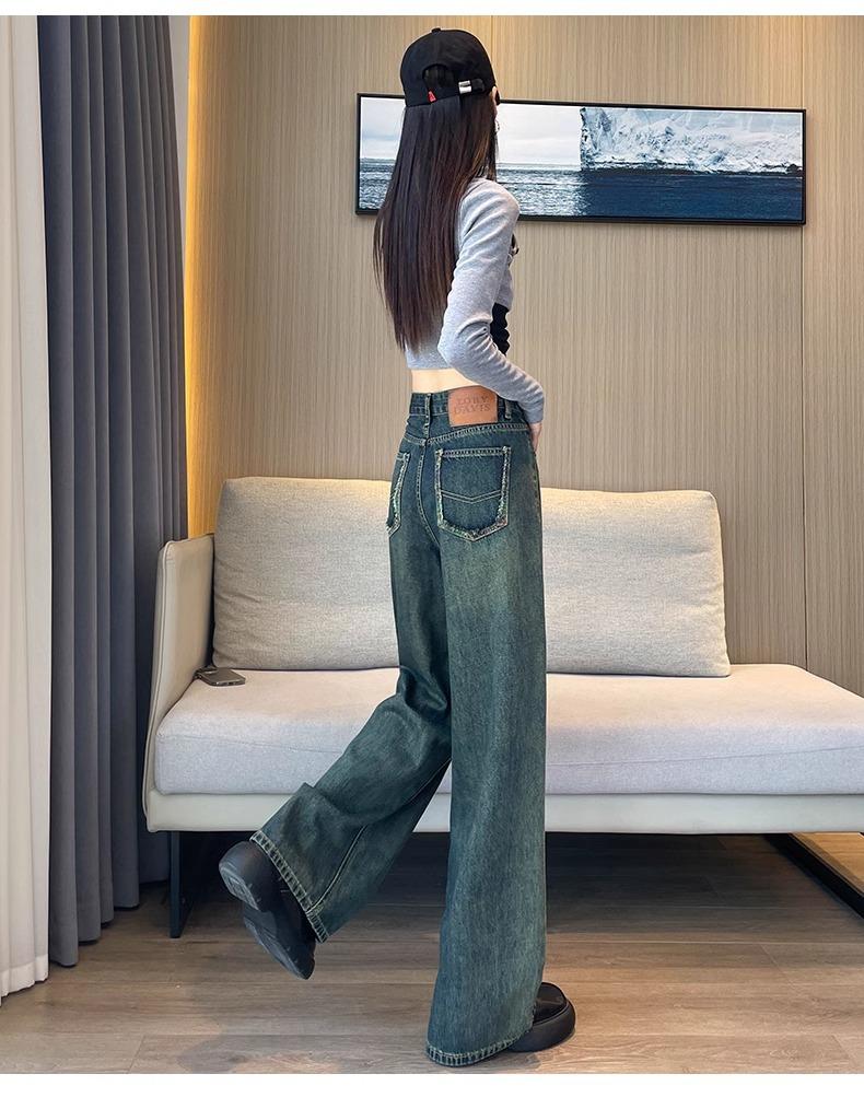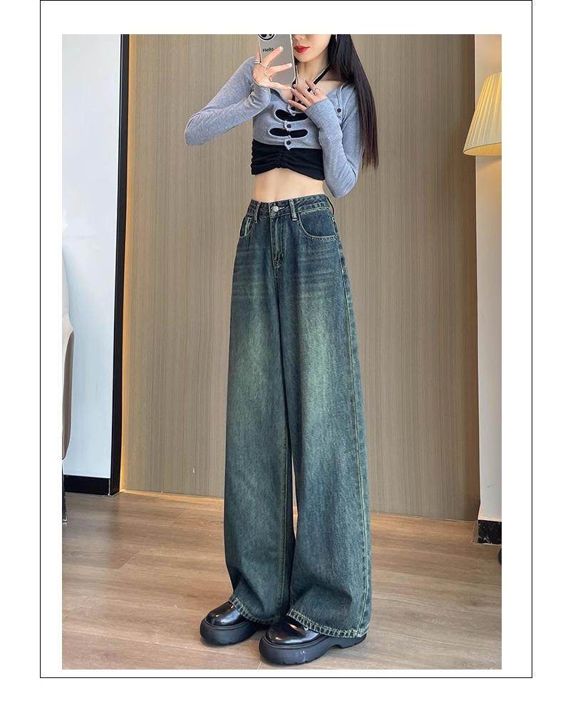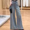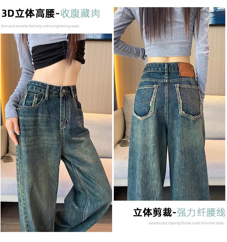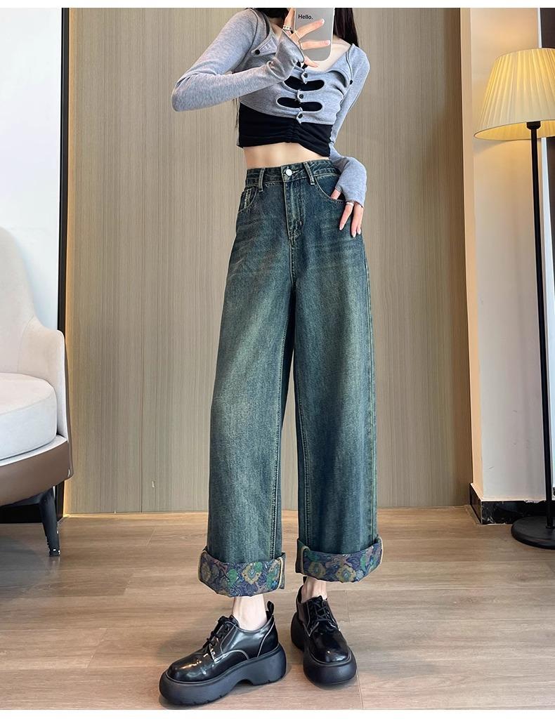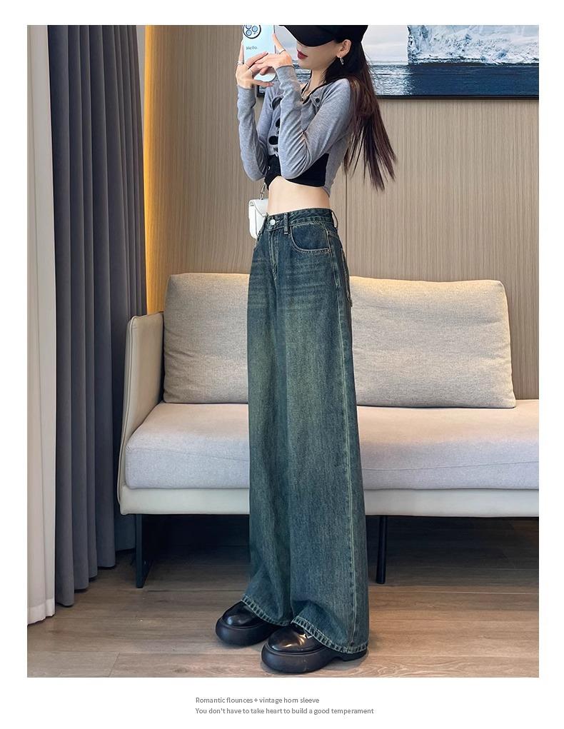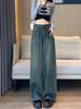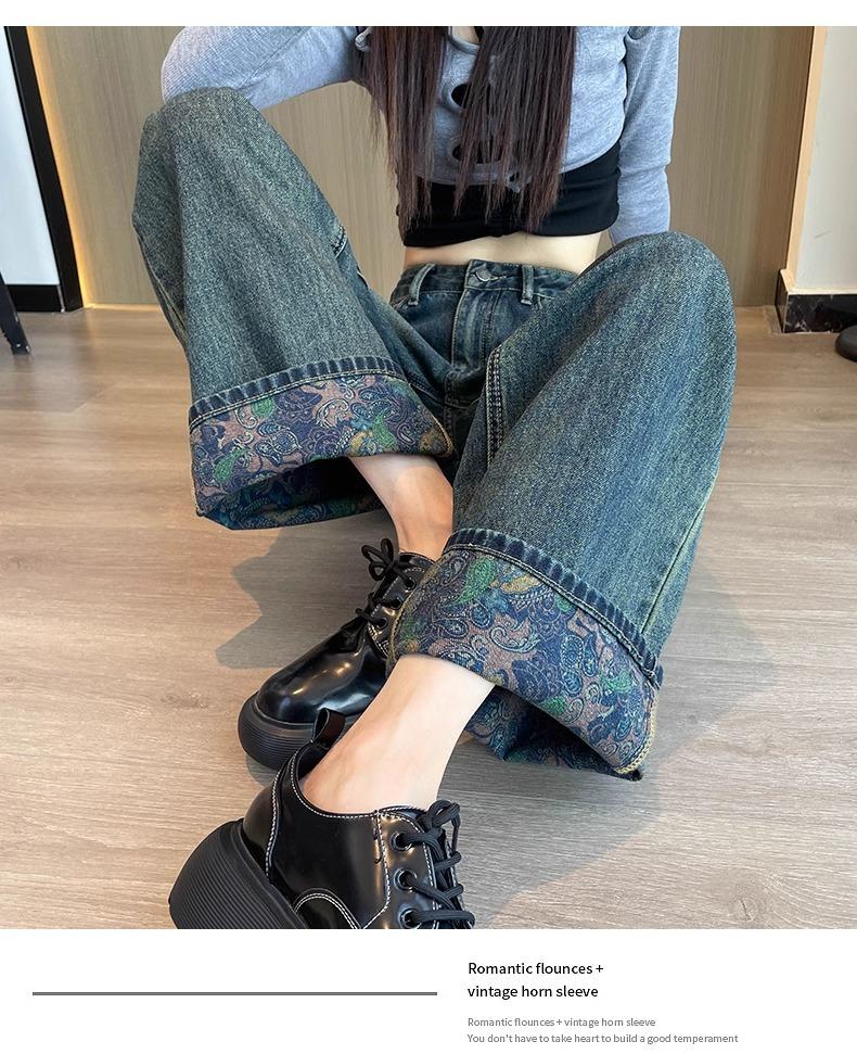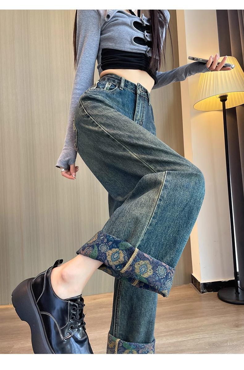 Jeans de Cintura Alta y Pierna Ancha para Mujer, Otoño 2025 Nuevo Estampado Retro Suelto Recto Drapeado Pantalones Largos hasta el Piso