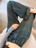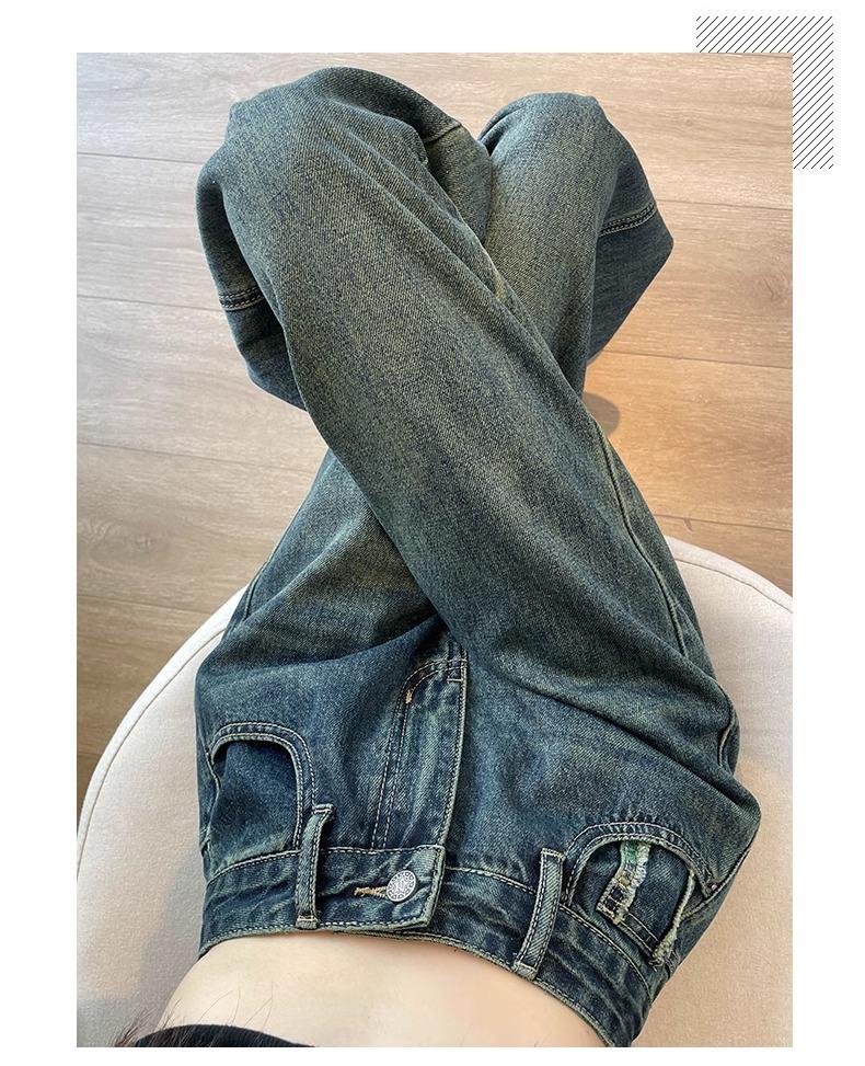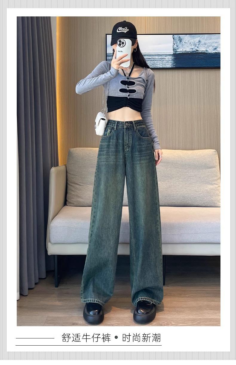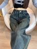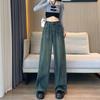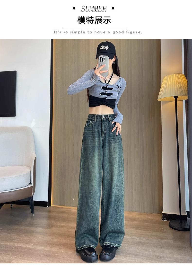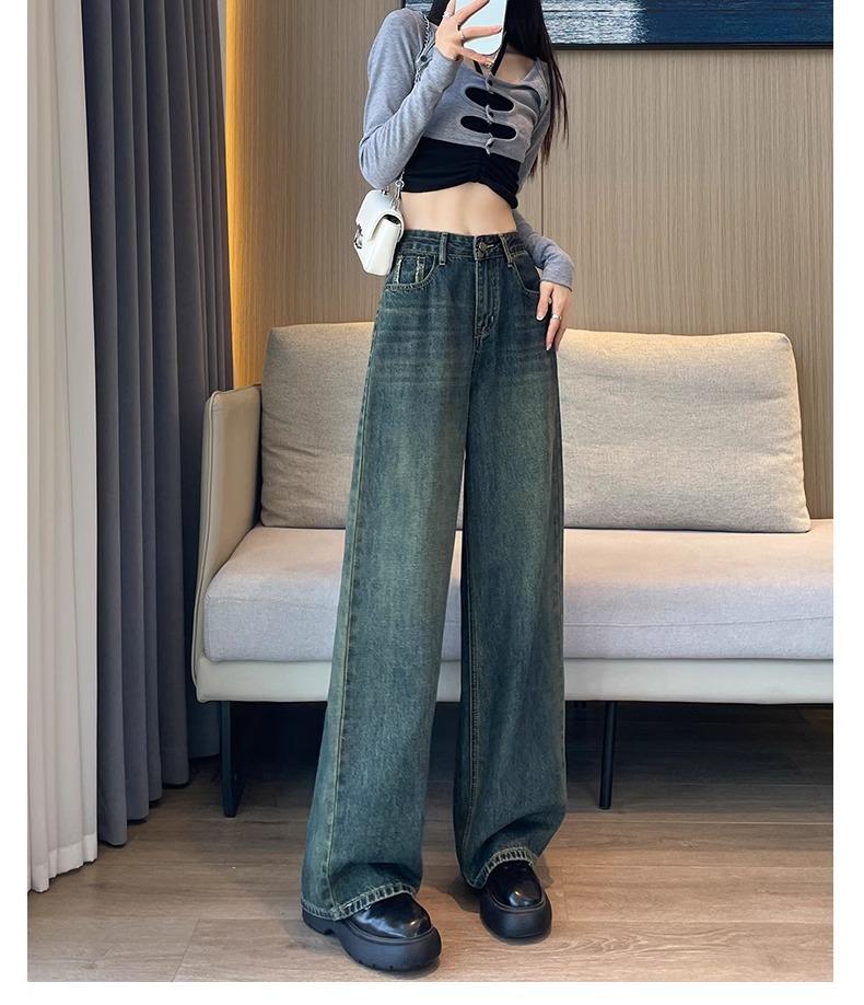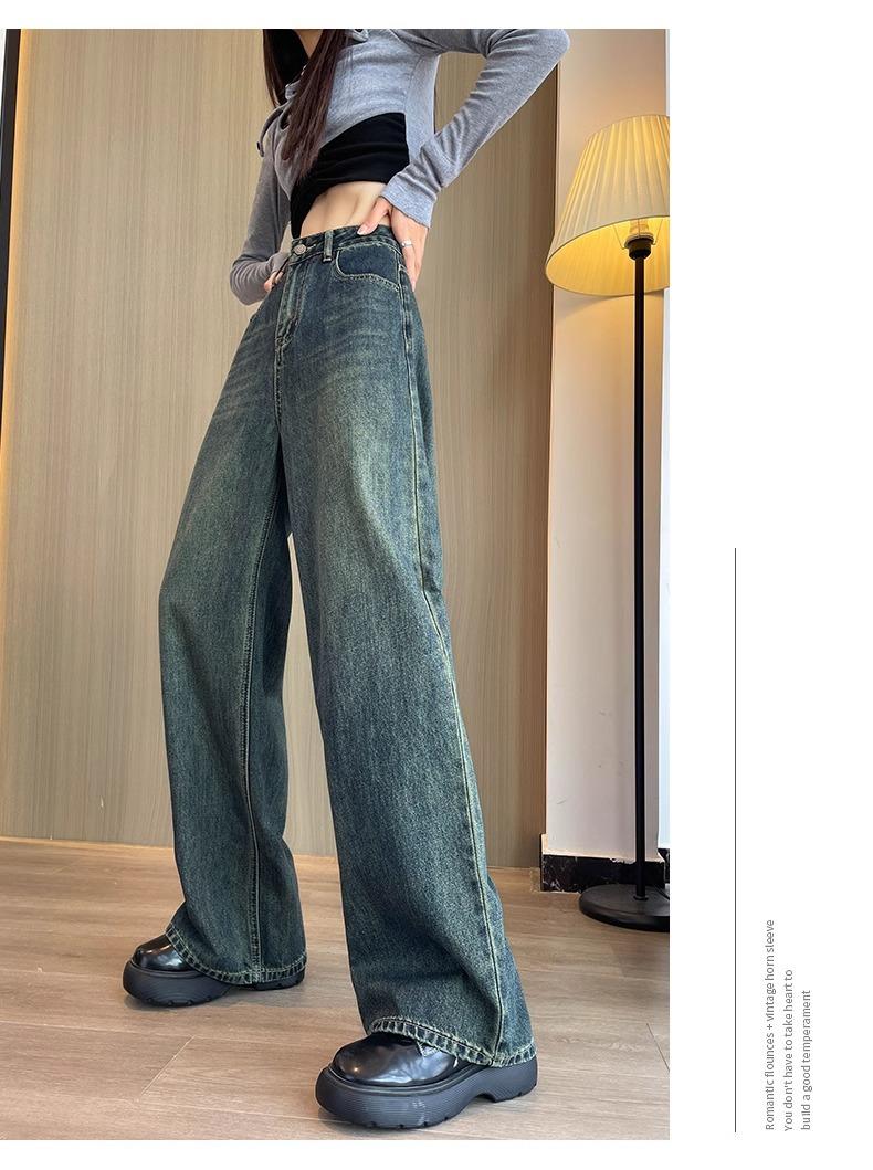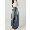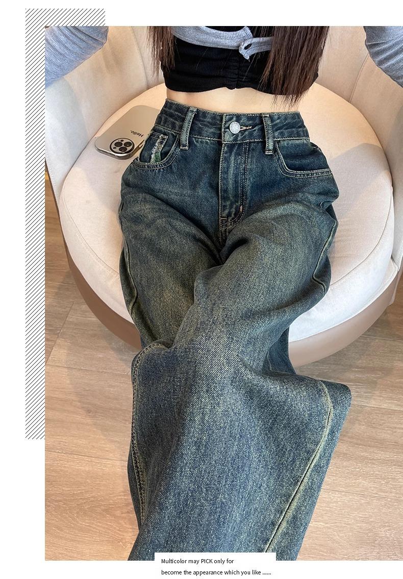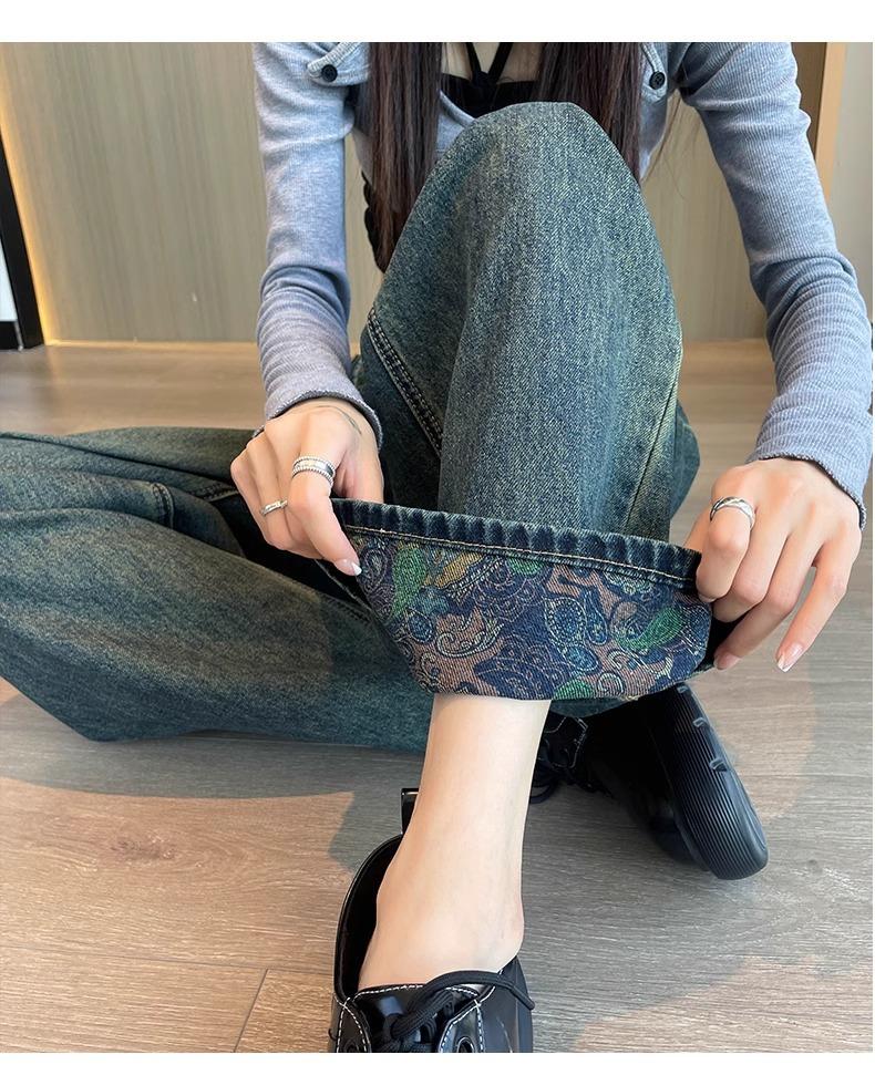 Jeans de Cintura Alta y Pierna Ancha para Mujer, Otoño 2025 Nuevo Estampado Retro Suelto Recto Drapeado Pantalones Largos hasta el Piso