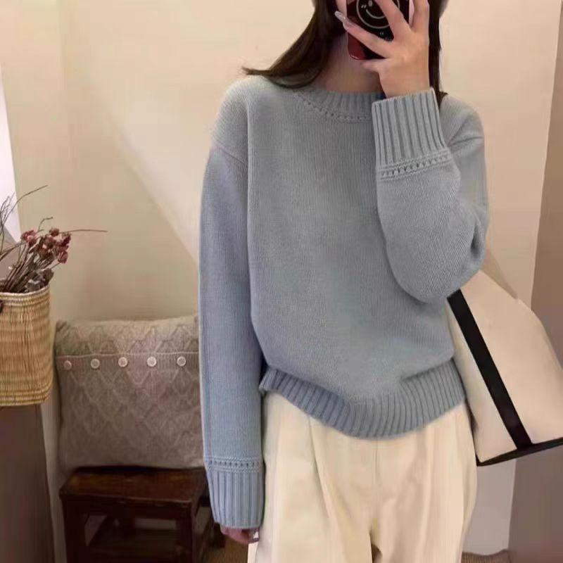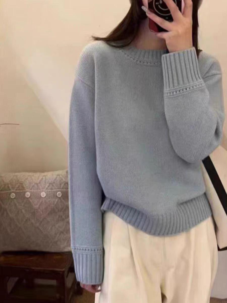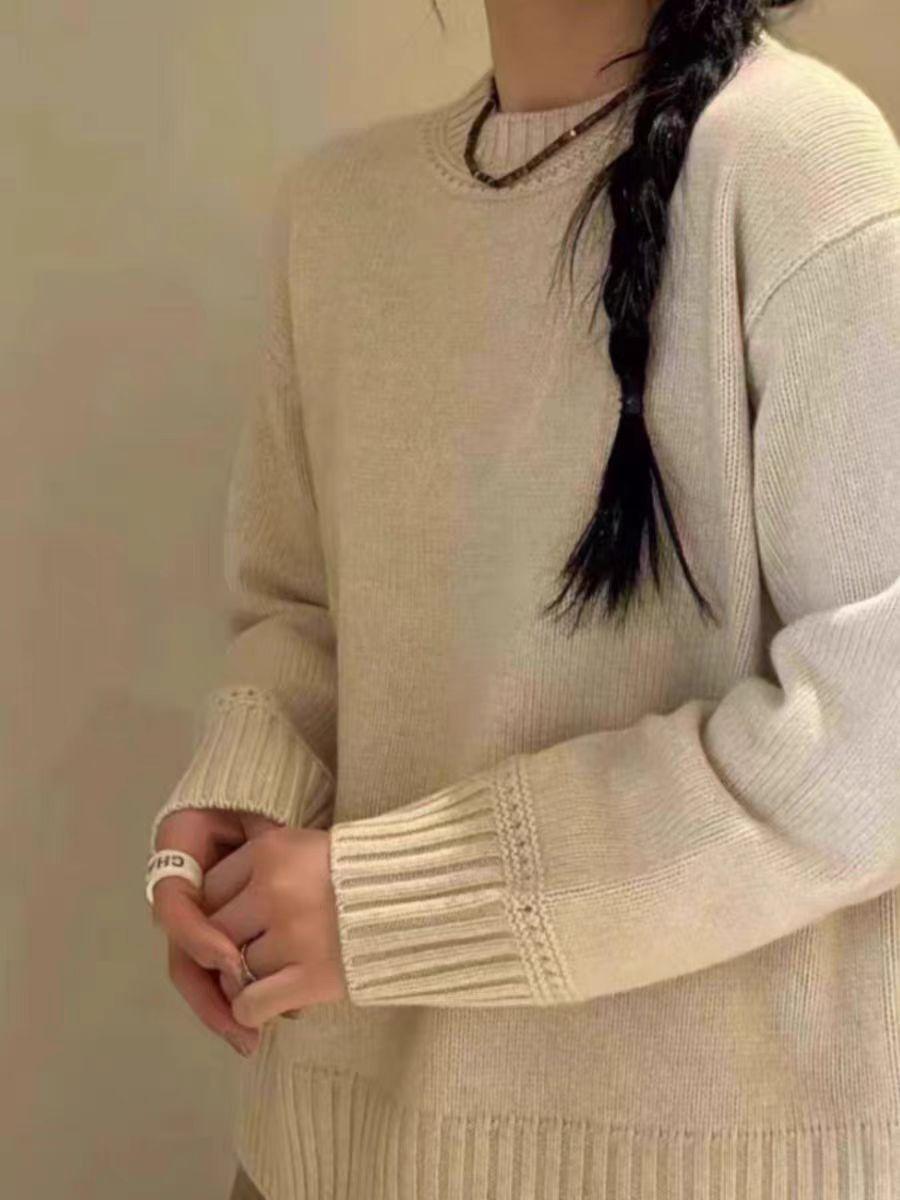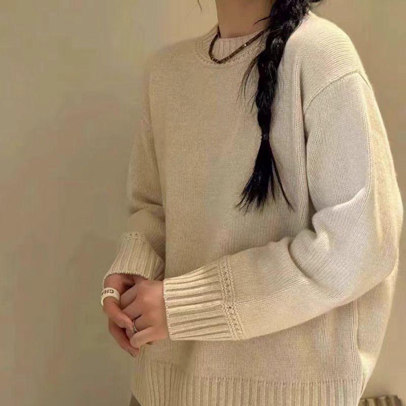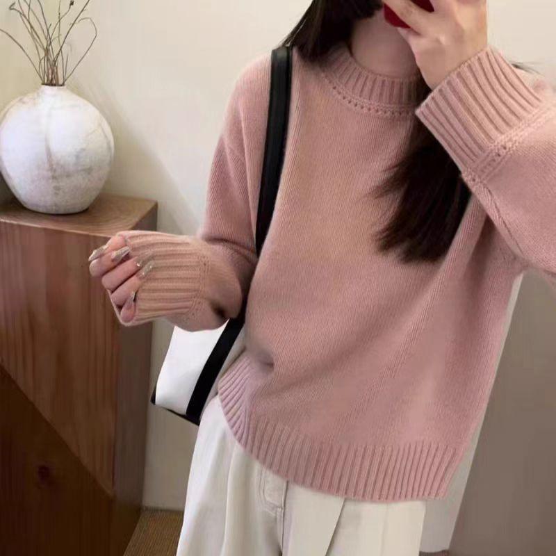 Nuevo Suéter de Lana Pura de 7 Pines con Cuello Redondo al Hombro para Mujer, Holgado, Suave, Ceroso, Grueso, Estilo Perezoso, Camisa Base Tejida para Uso Exterior