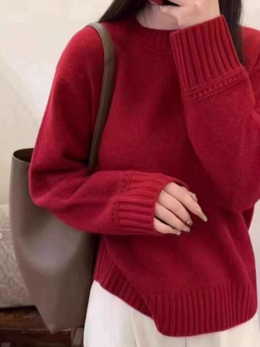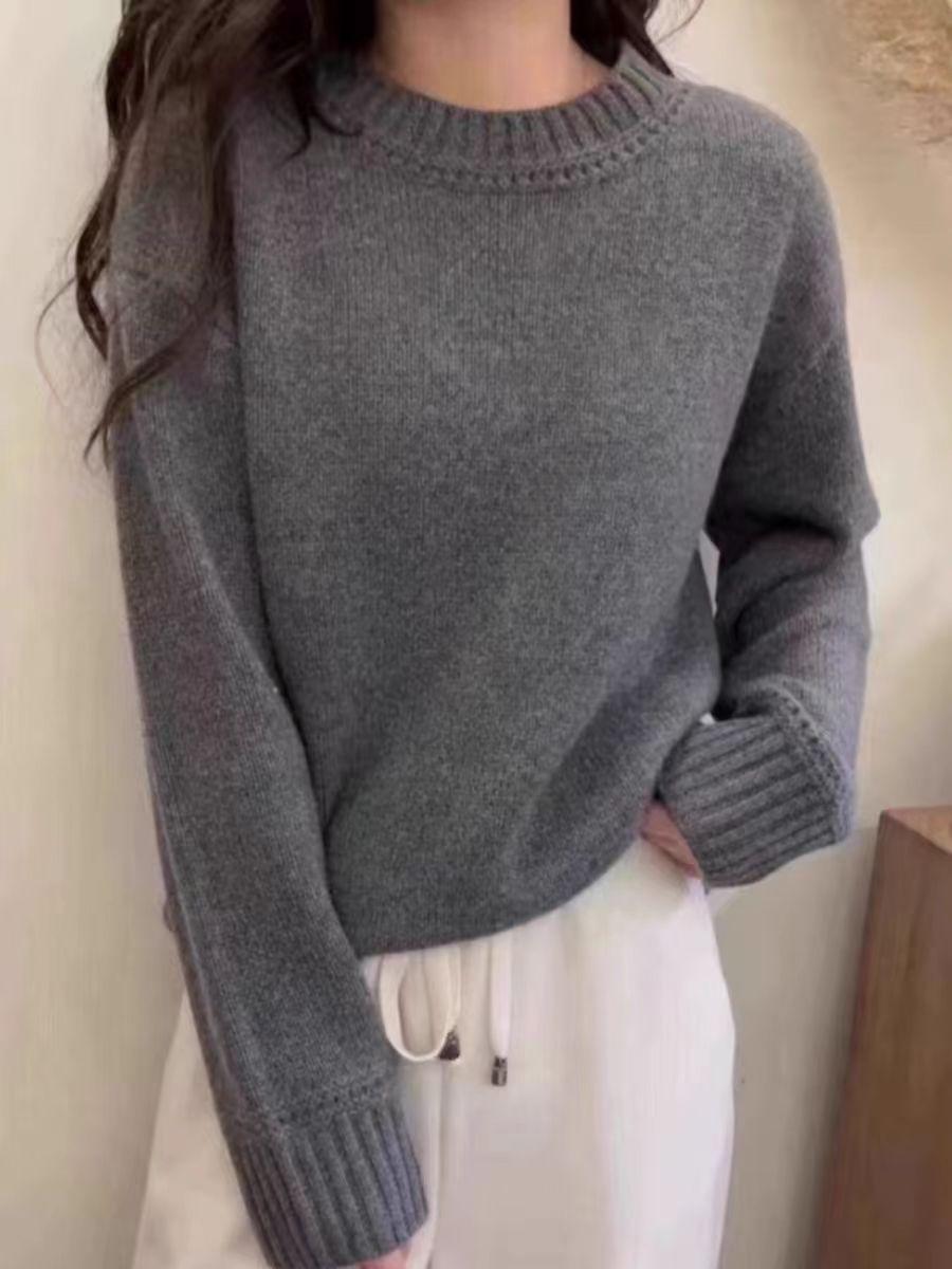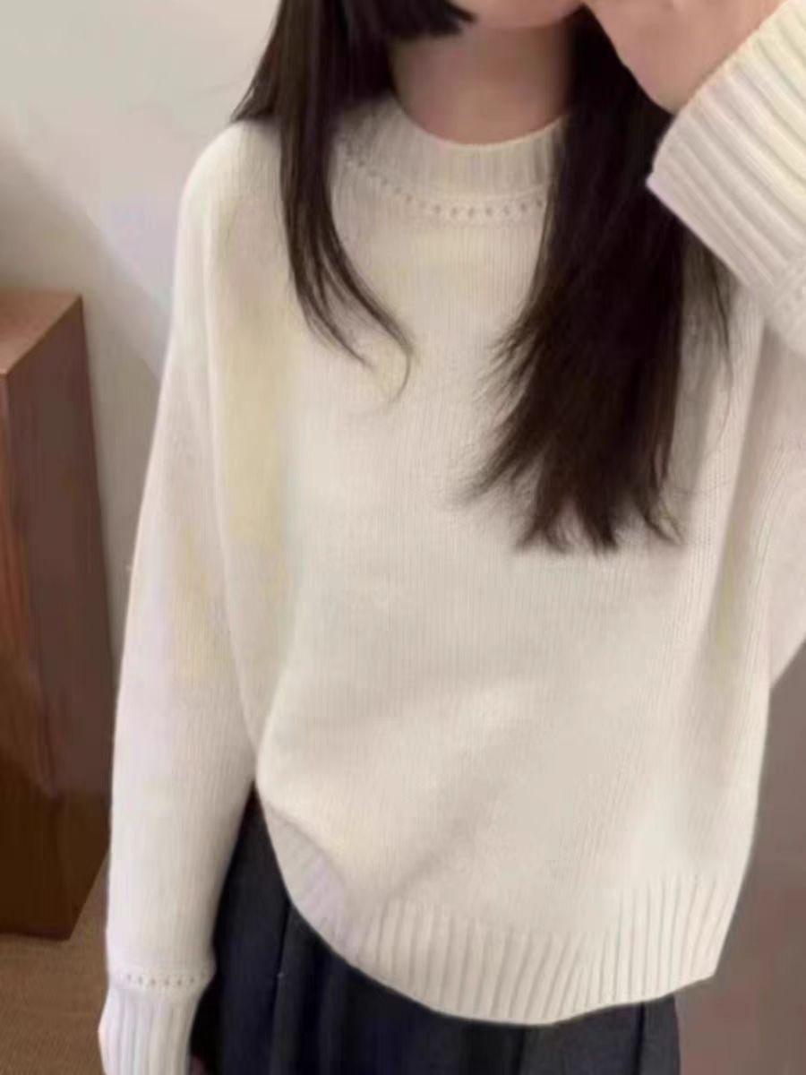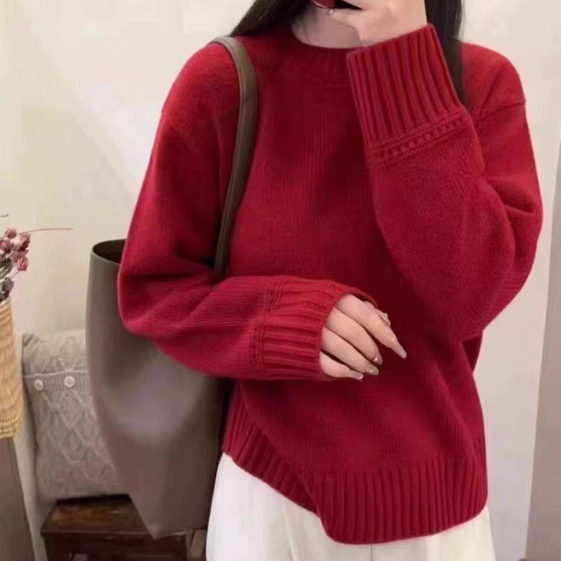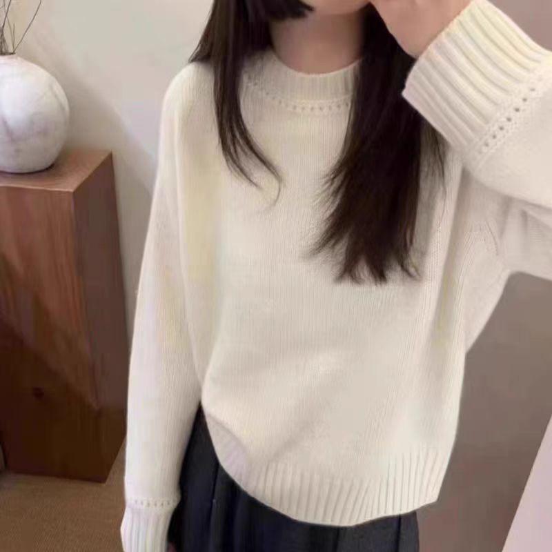 Nuevo Suéter de Lana Pura de 7 Pines con Cuello Redondo al Hombro para Mujer, Holgado, Suave, Ceroso, Grueso, Estilo Perezoso, Camisa Base Tejida para Uso Exterior