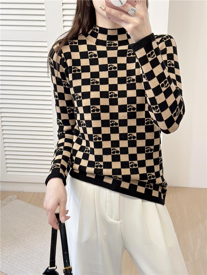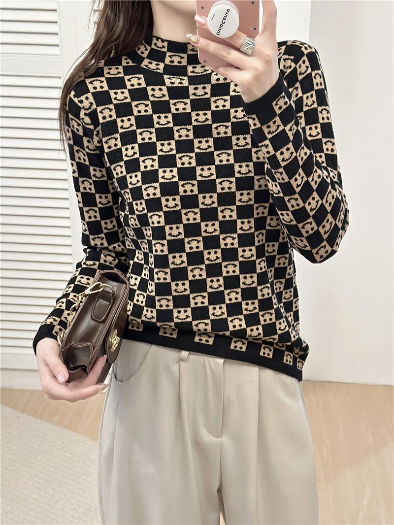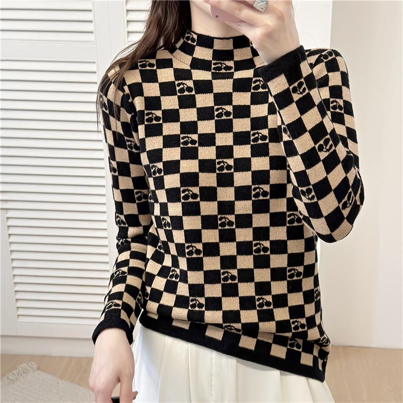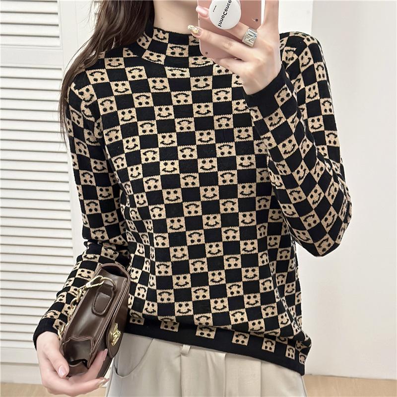 Suéter de terciopelo de cuello alto medio para mujer, otoño e invierno, nuevo diseño superior, camisa de base de punto de nicho engrosada