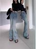 Pantalones de Herradura para Mujer Nostálgicos Combinan con Todo Ajustados Hebilla Doble Cintura Alta Rectos Elásticos Diseño de Costuras Retro Microcampana Pantalones Largos