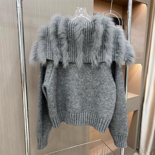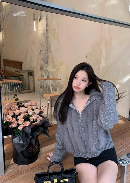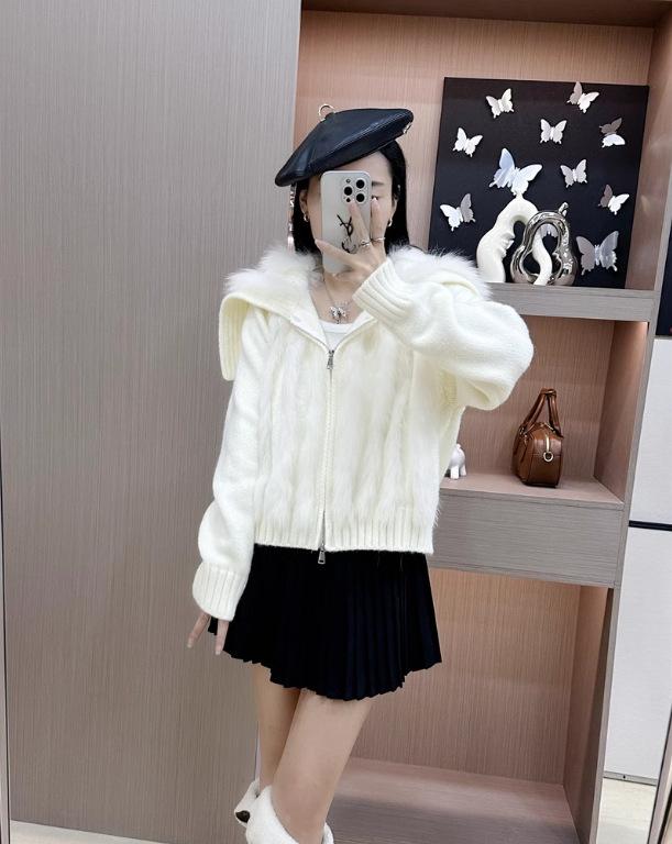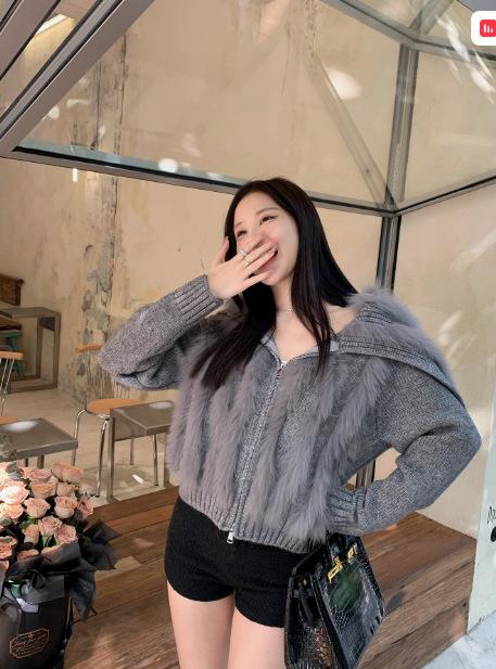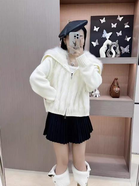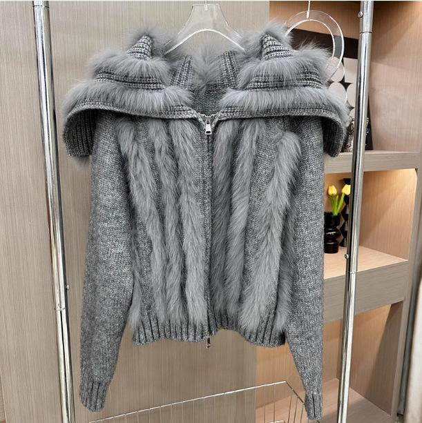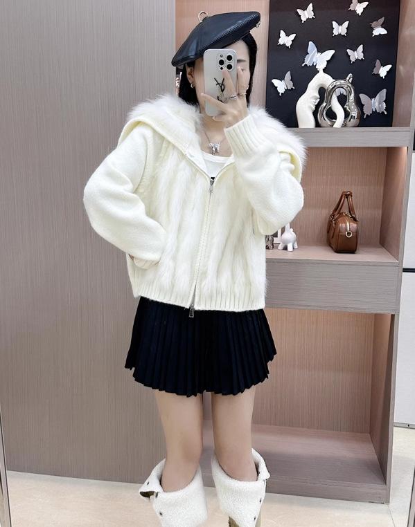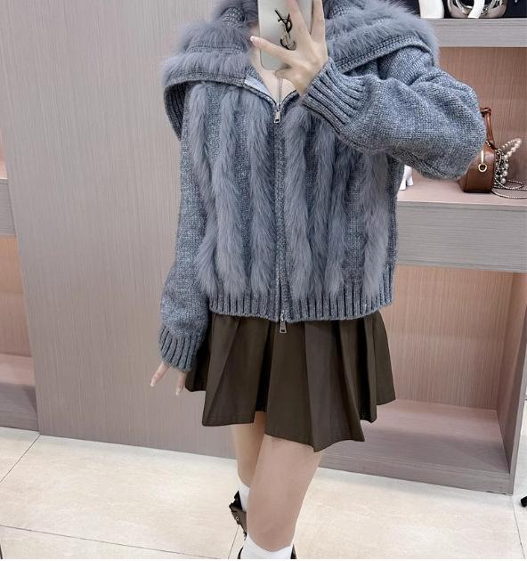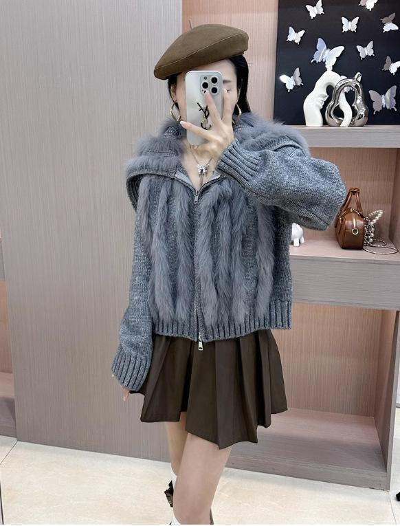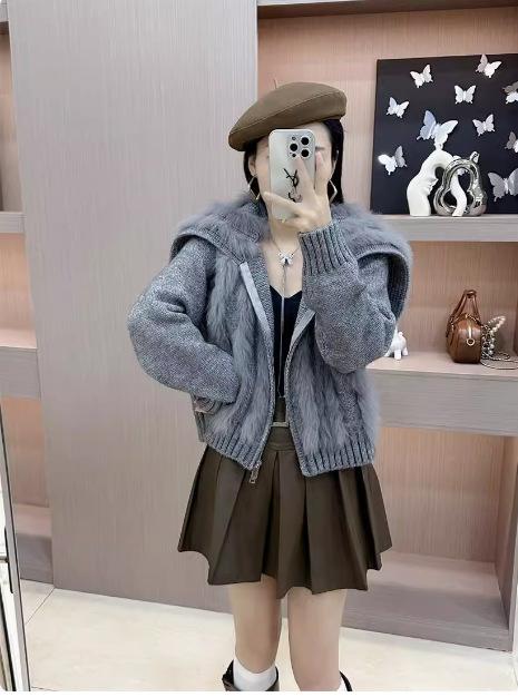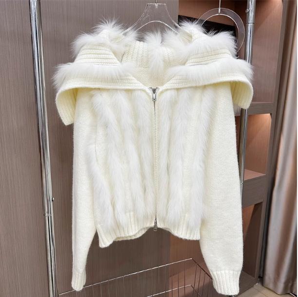 [Shan Ye Su Xin] Zorro Abrigo Coche Marino Cuello Corto Cremallera Cárdigan Tejido Suéter Chaqueta para Mujer Otoño e Invierno Nuevo