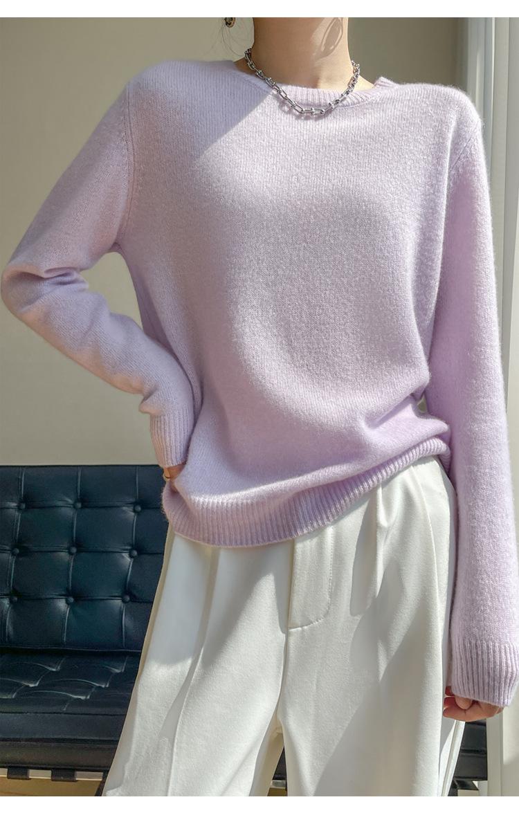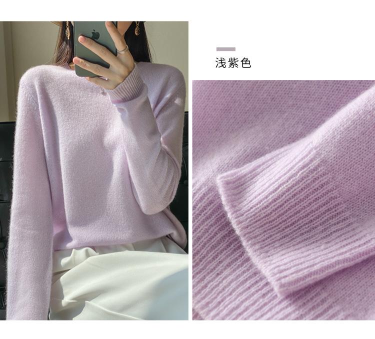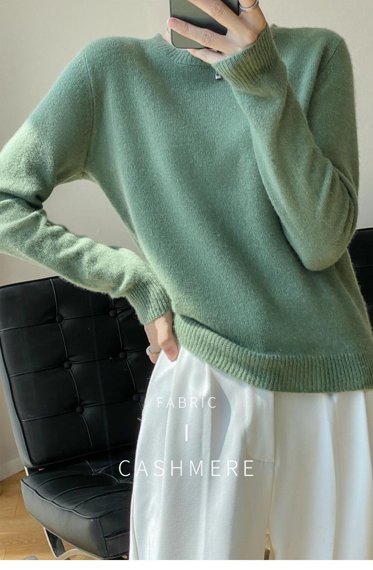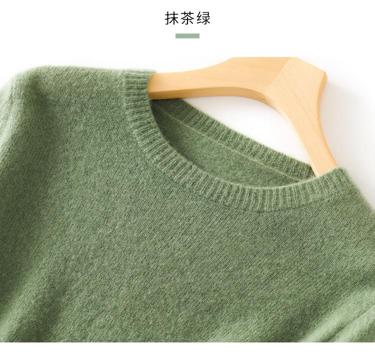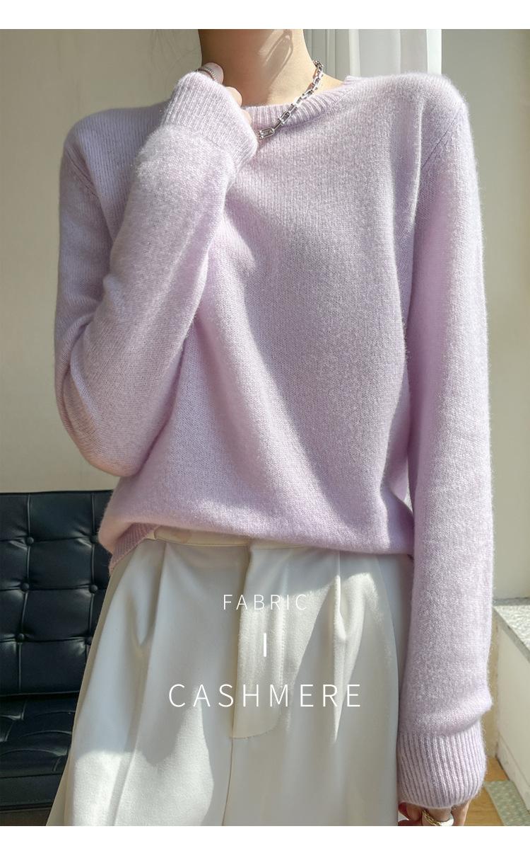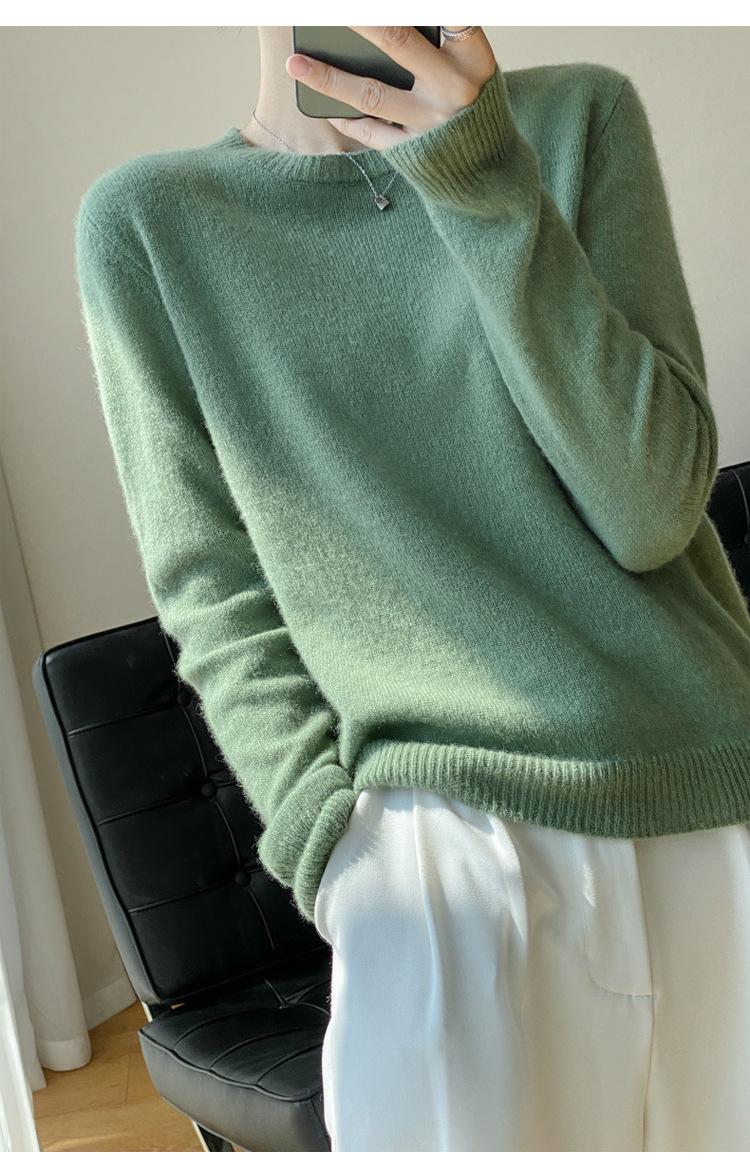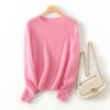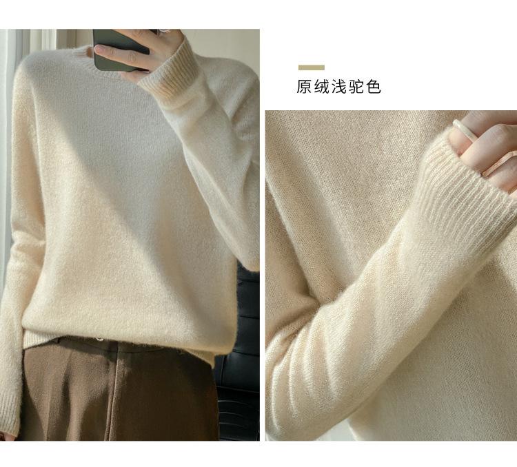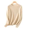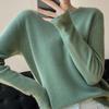 Suéter de cachemira de montaña para otoño e invierno, suéter de punto de lana de color liso con base de punto fino y cuello redondo para mujer