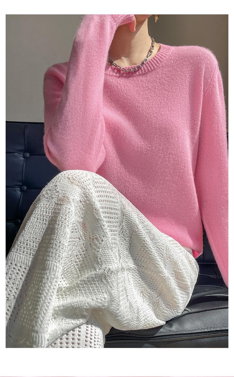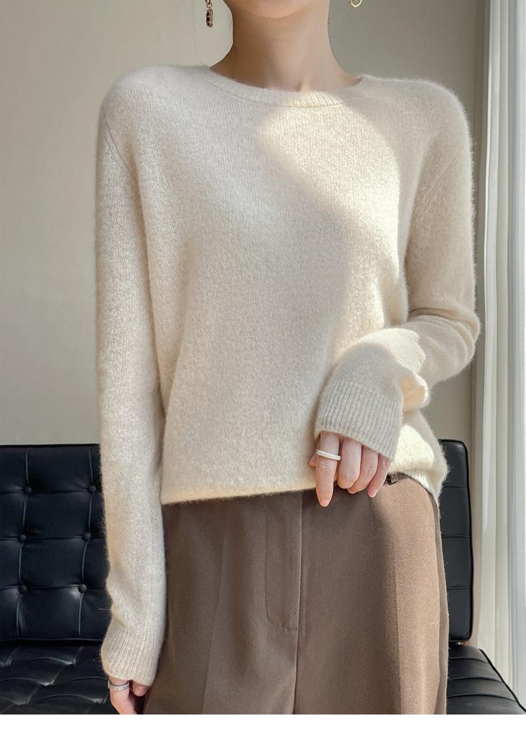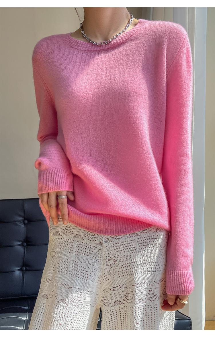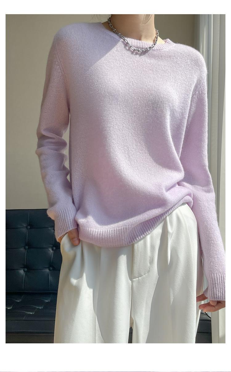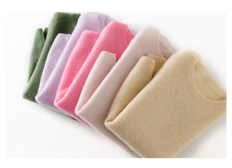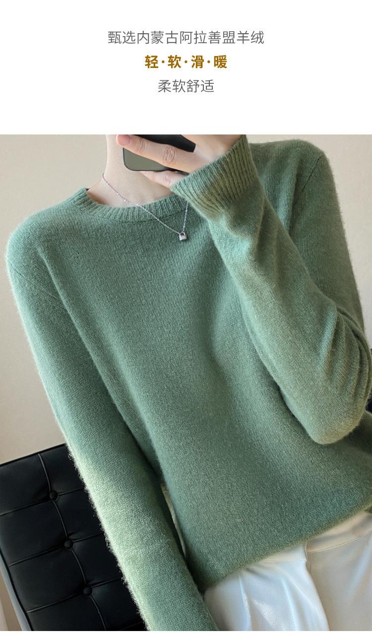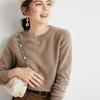 Suéter de cachemira de montaña para otoño e invierno, suéter de punto de lana de color liso con base de punto fino y cuello redondo para mujer