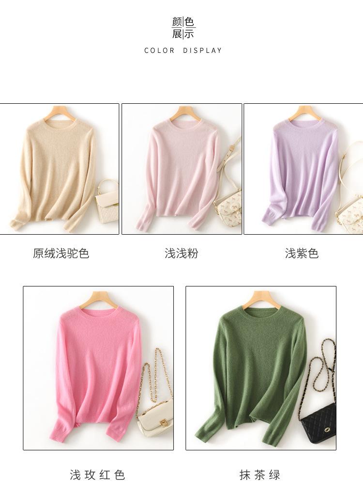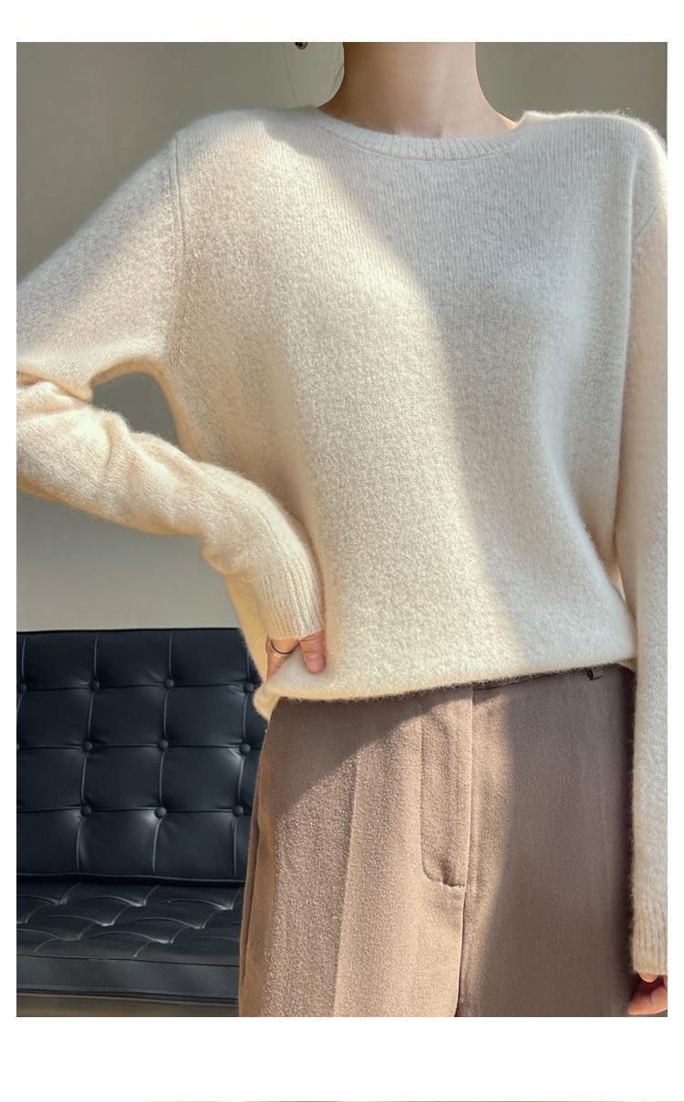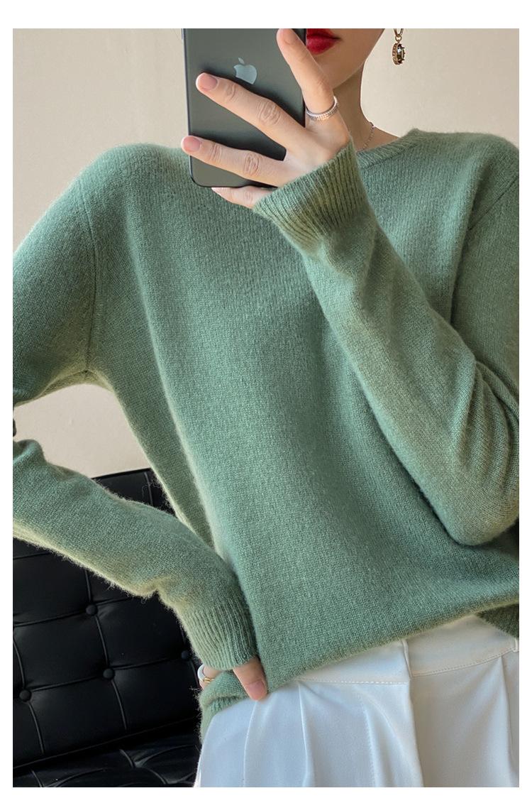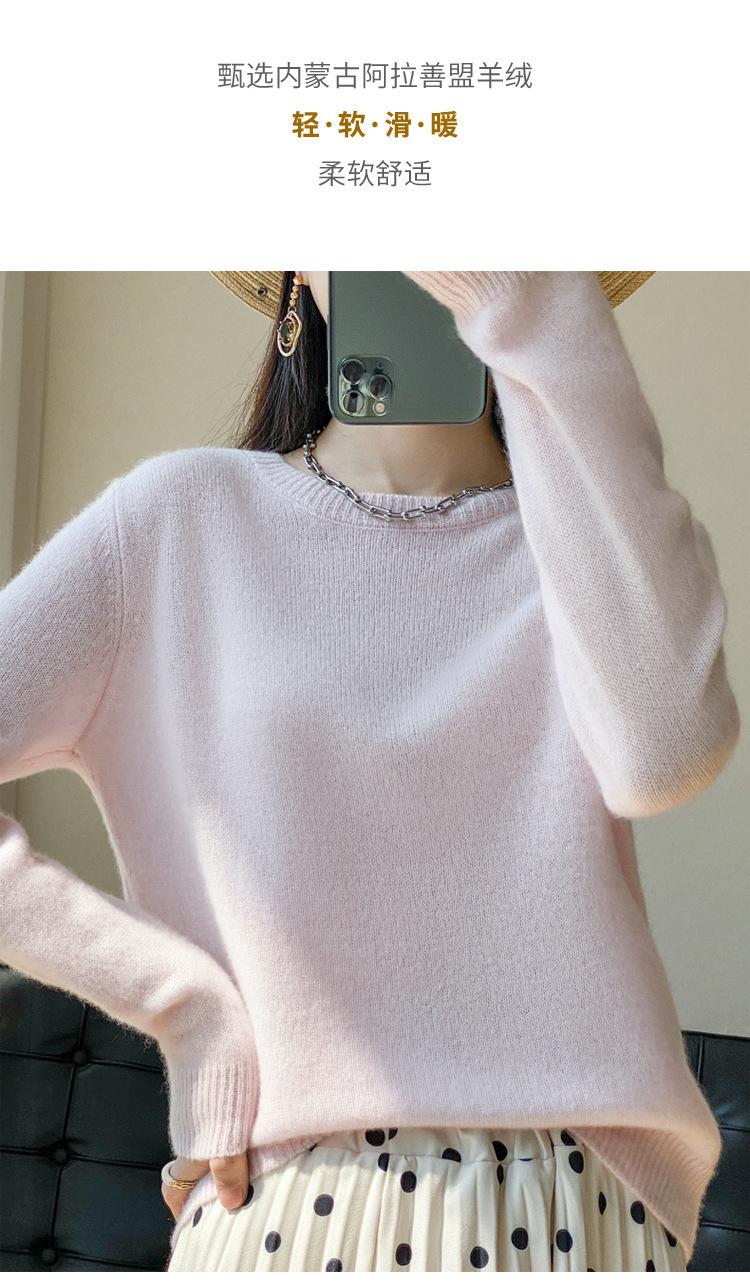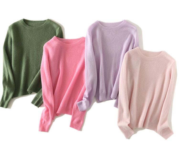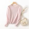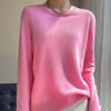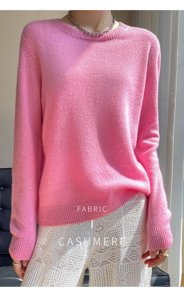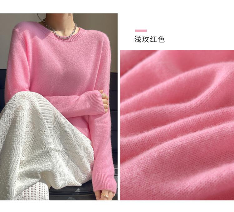 Suéter de cachemira de montaña para otoño e invierno, suéter de punto de lana de color liso con base de punto fino y cuello redondo para mujer