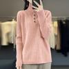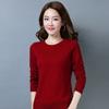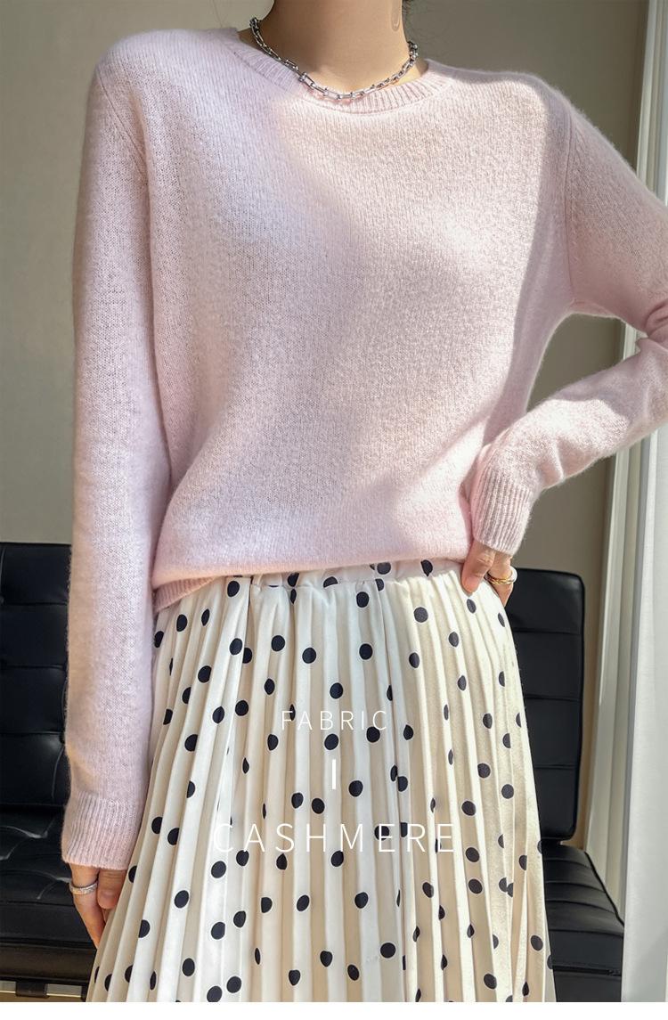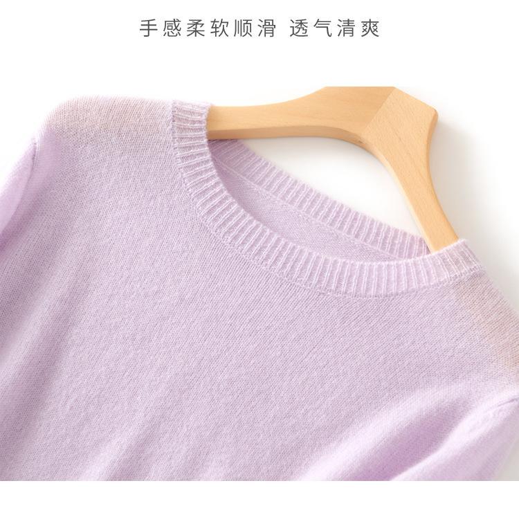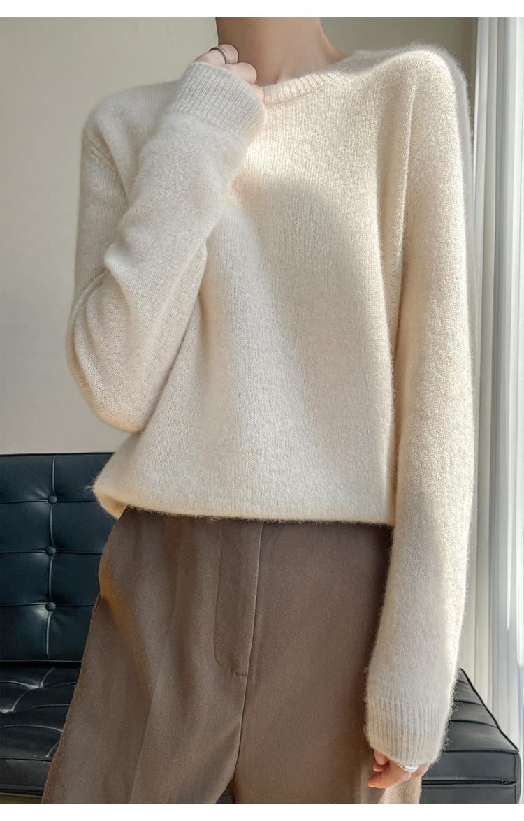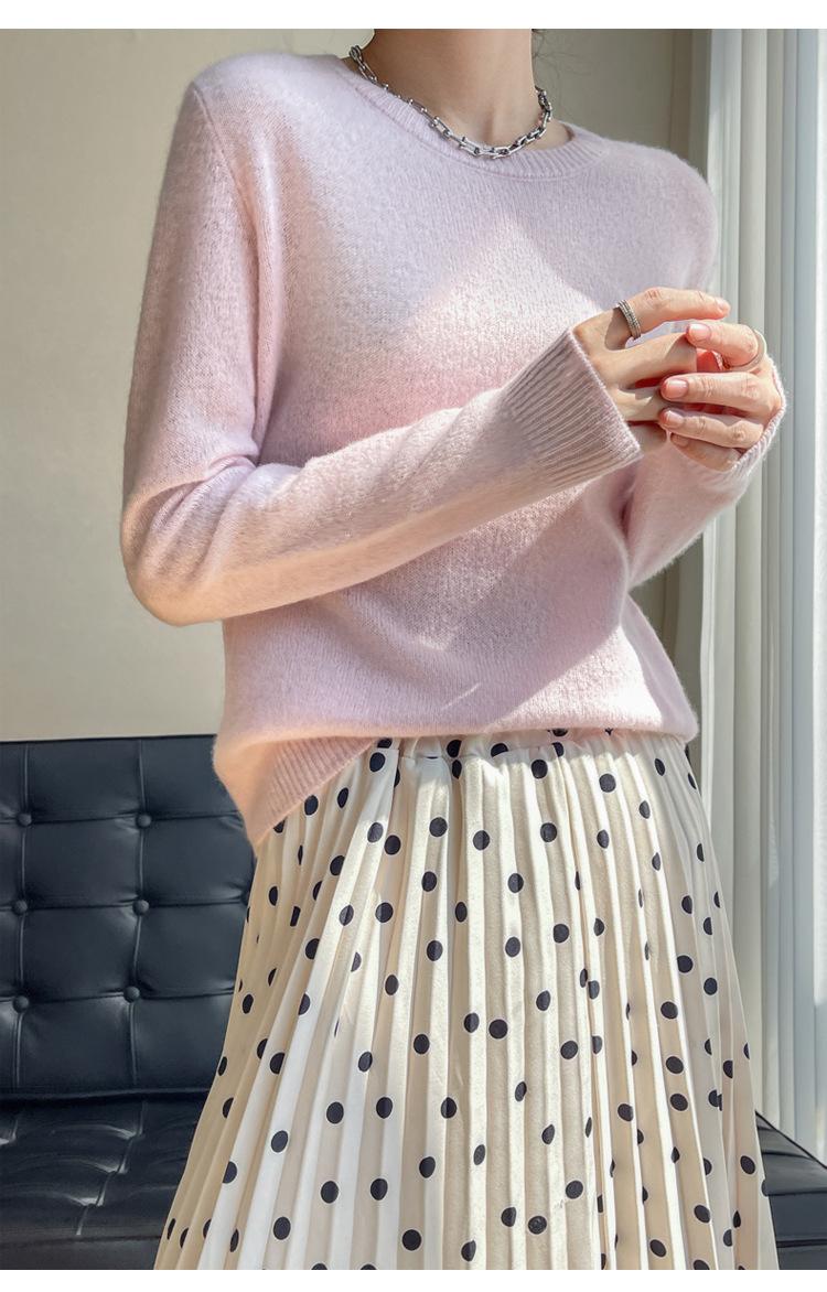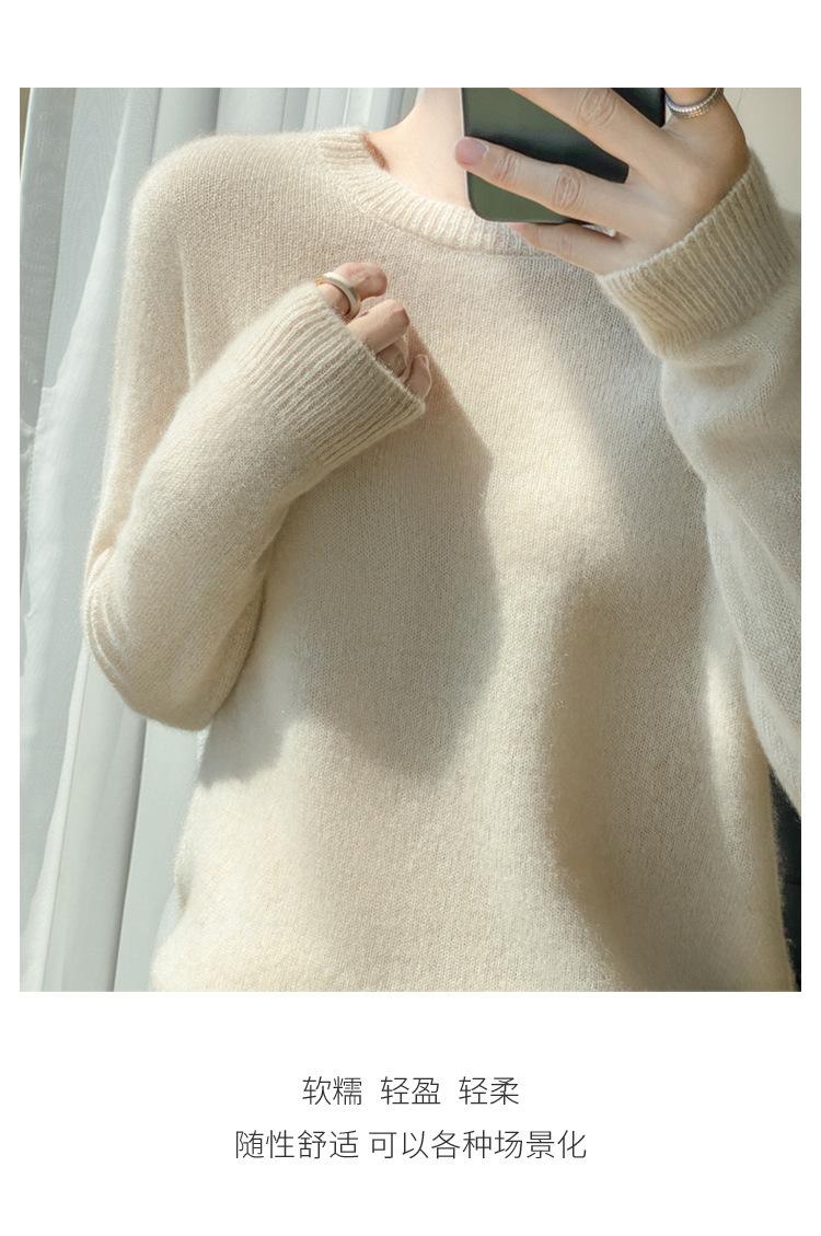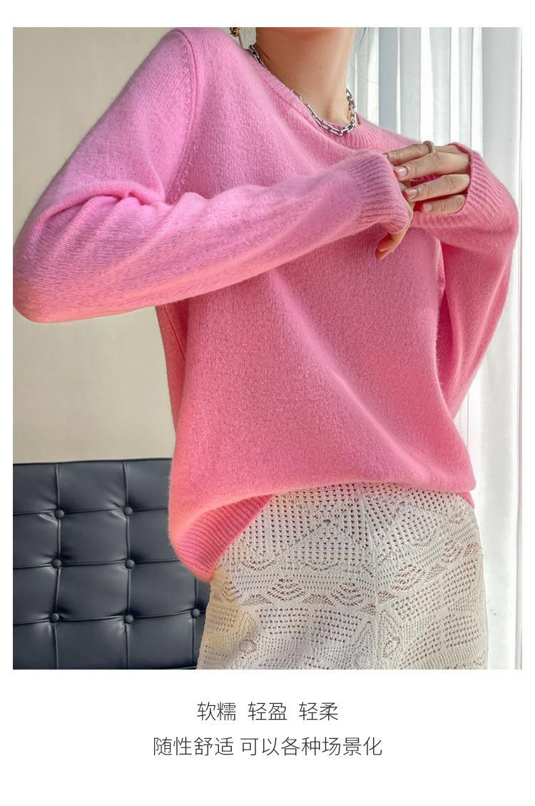 Suéter de cachemira de montaña para otoño e invierno, suéter de punto de lana de color liso con base de punto fino y cuello redondo para mujer