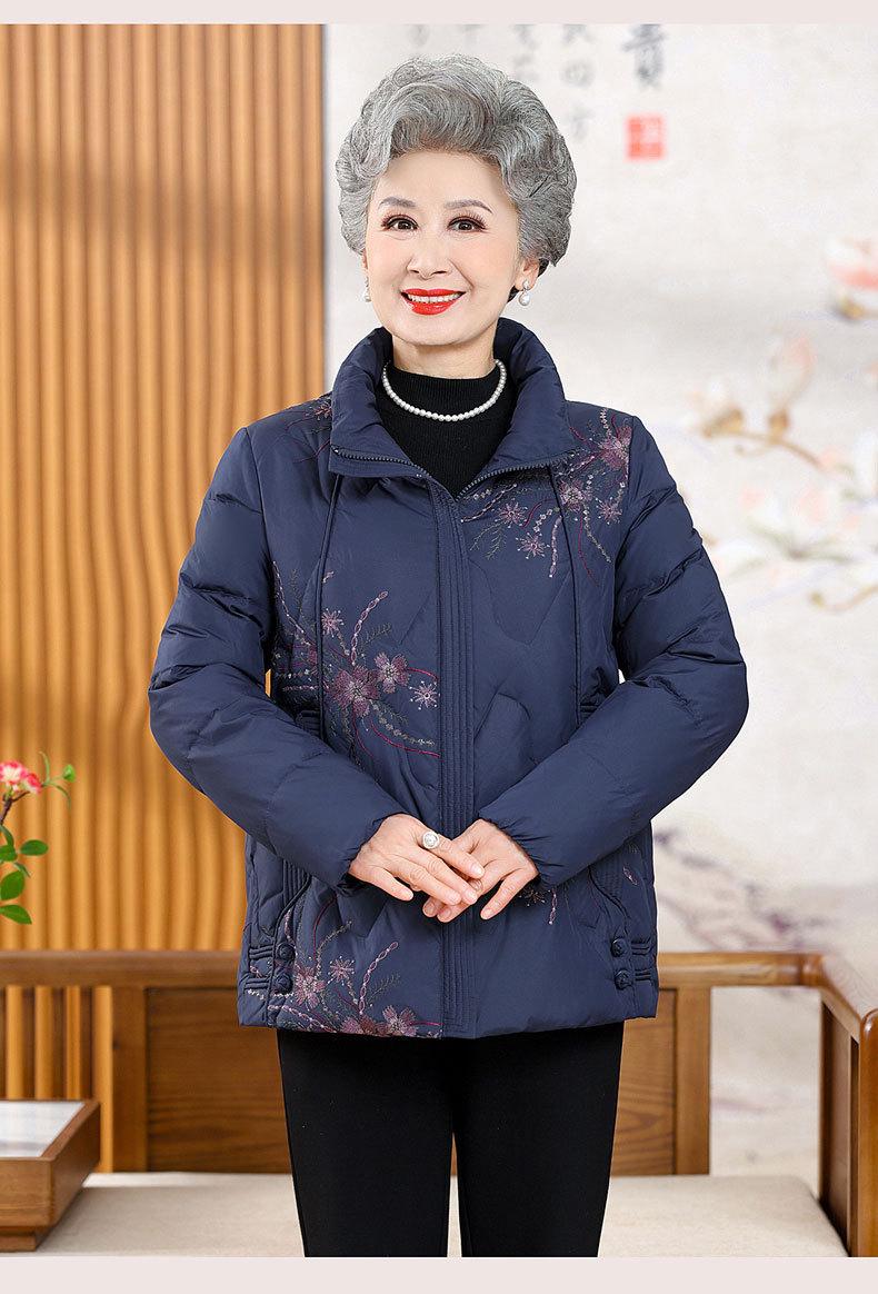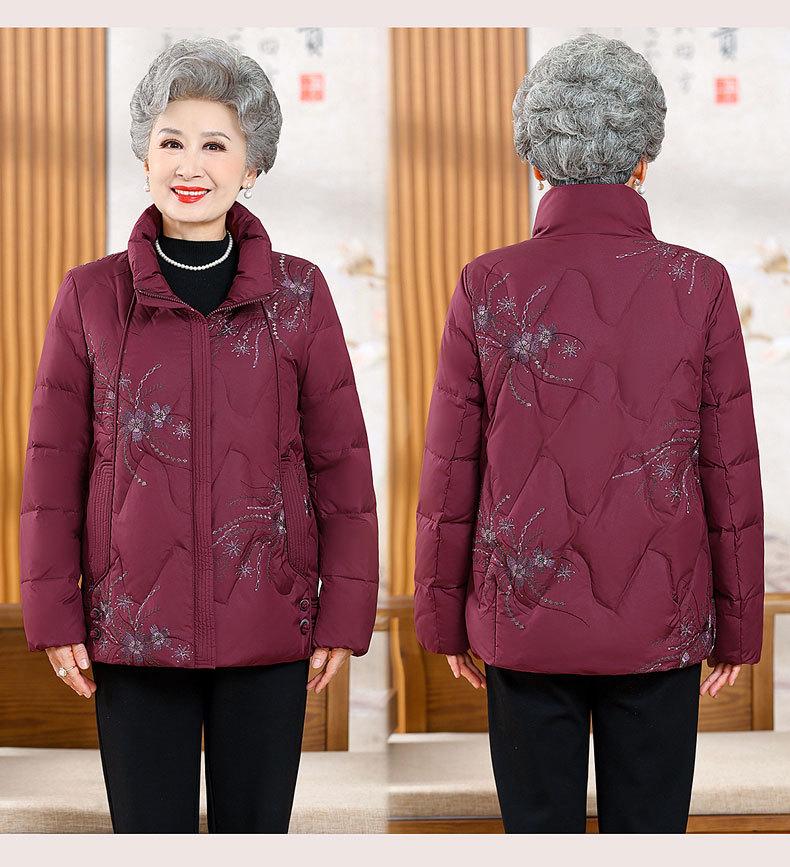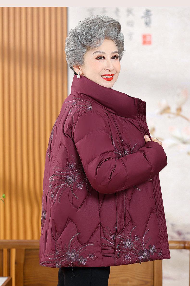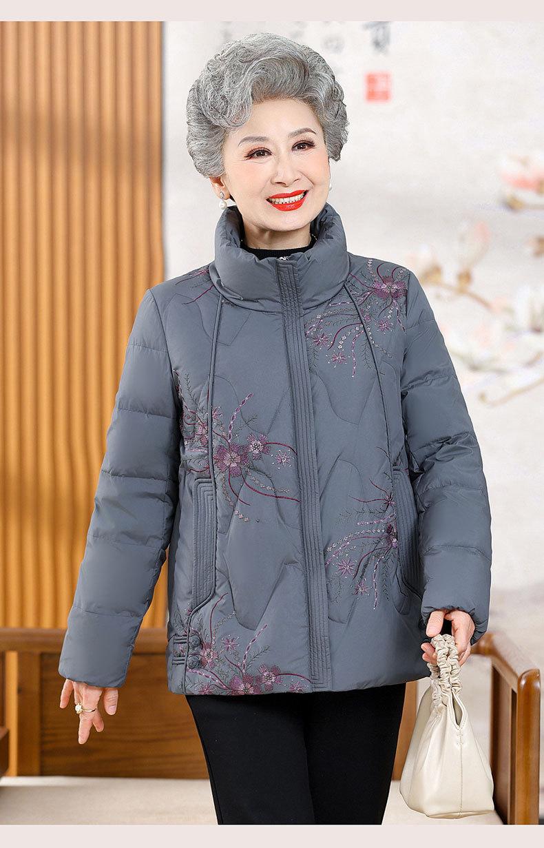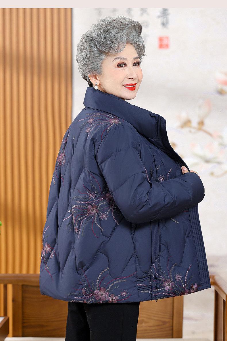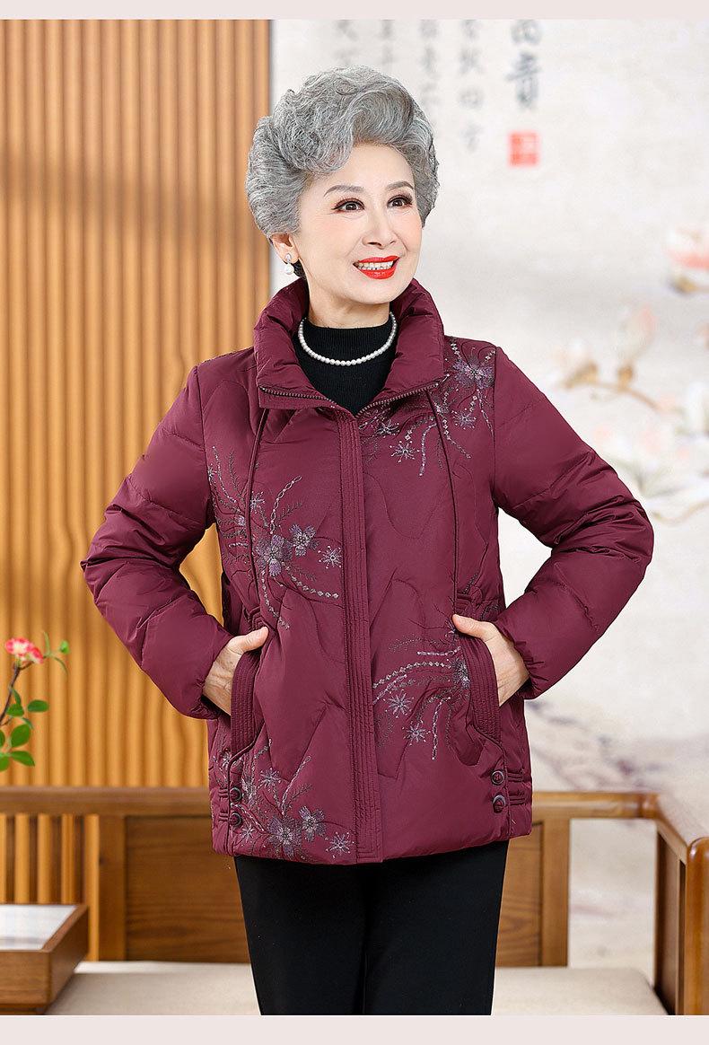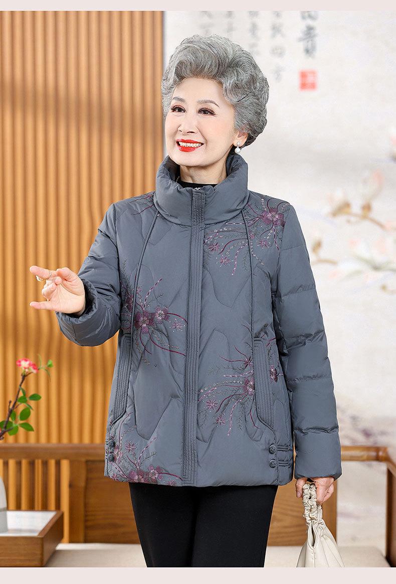 Chaqueta de plumas para personas de mediana edad y mayores, cálida y bordada, para invierno, estilo occidental, para abuela, 2024