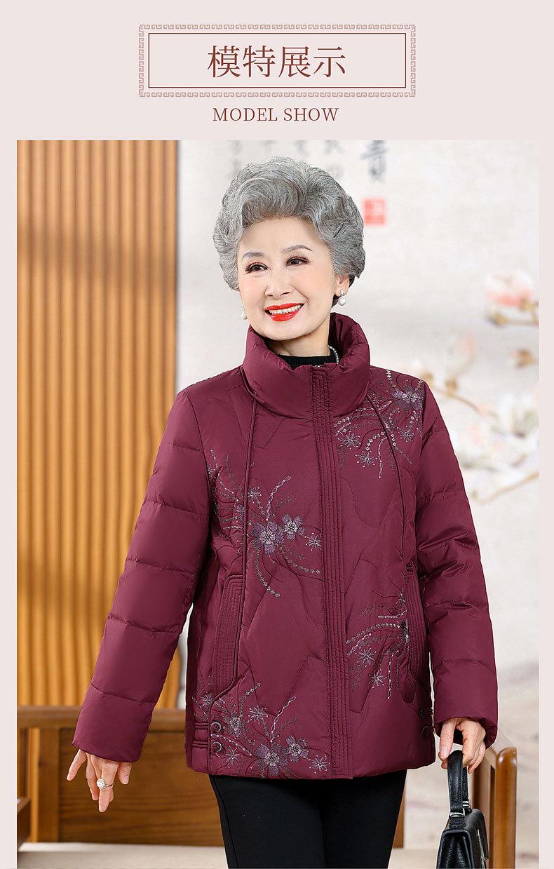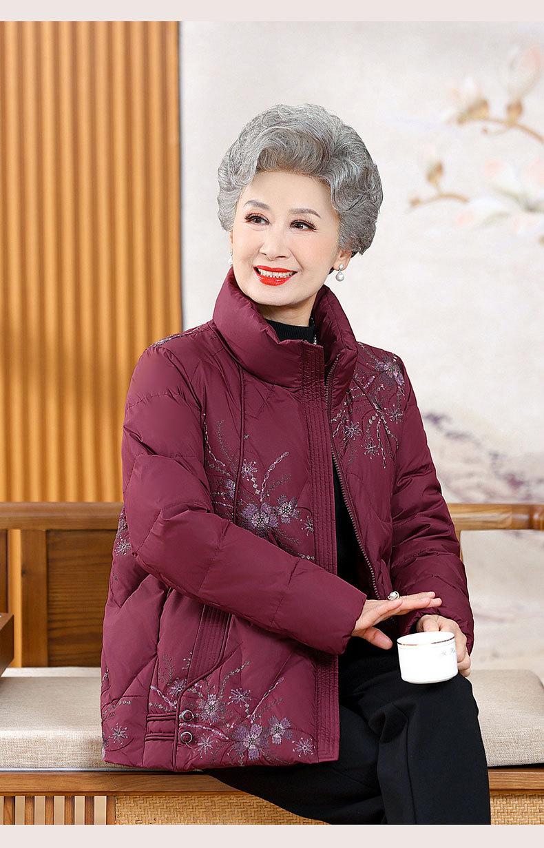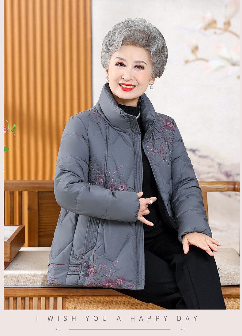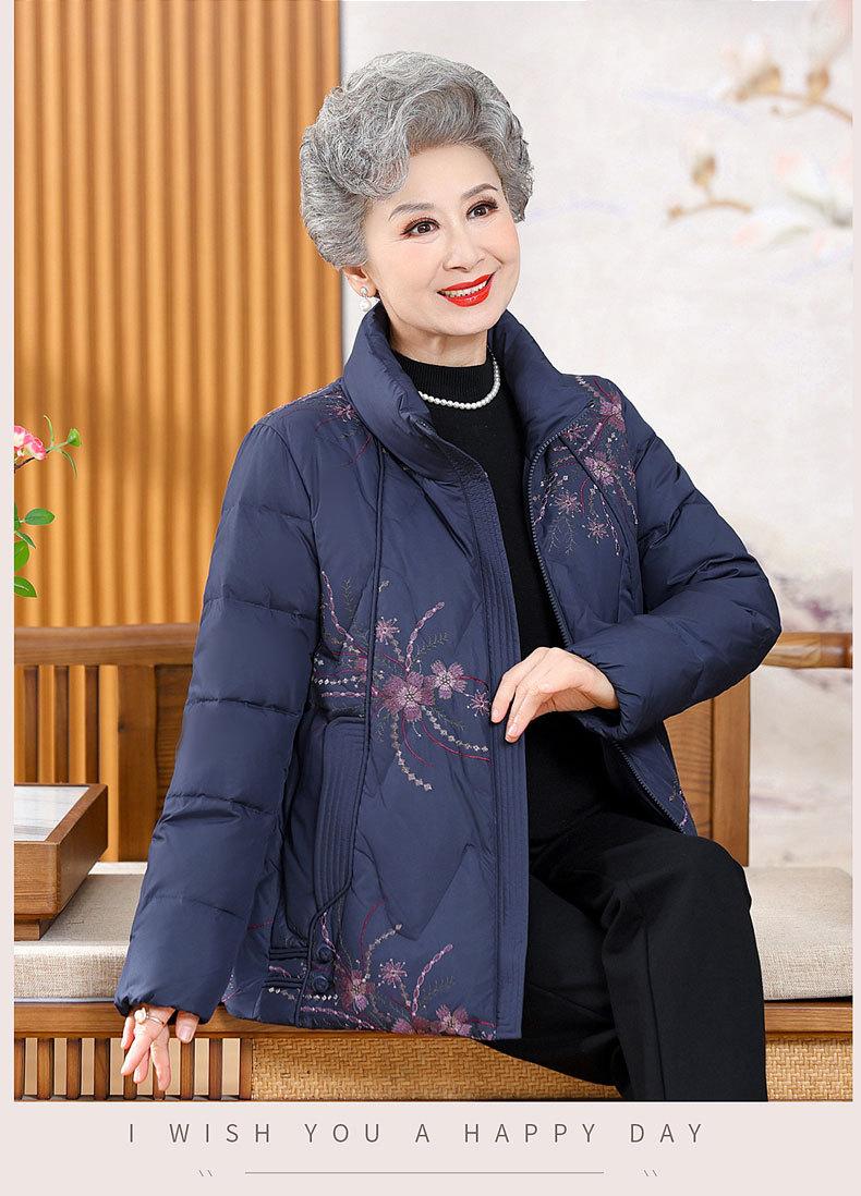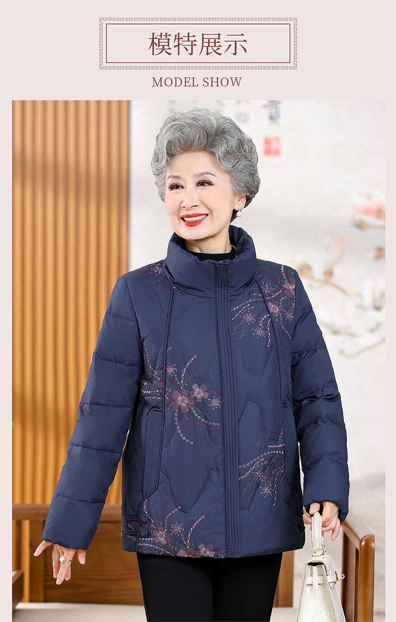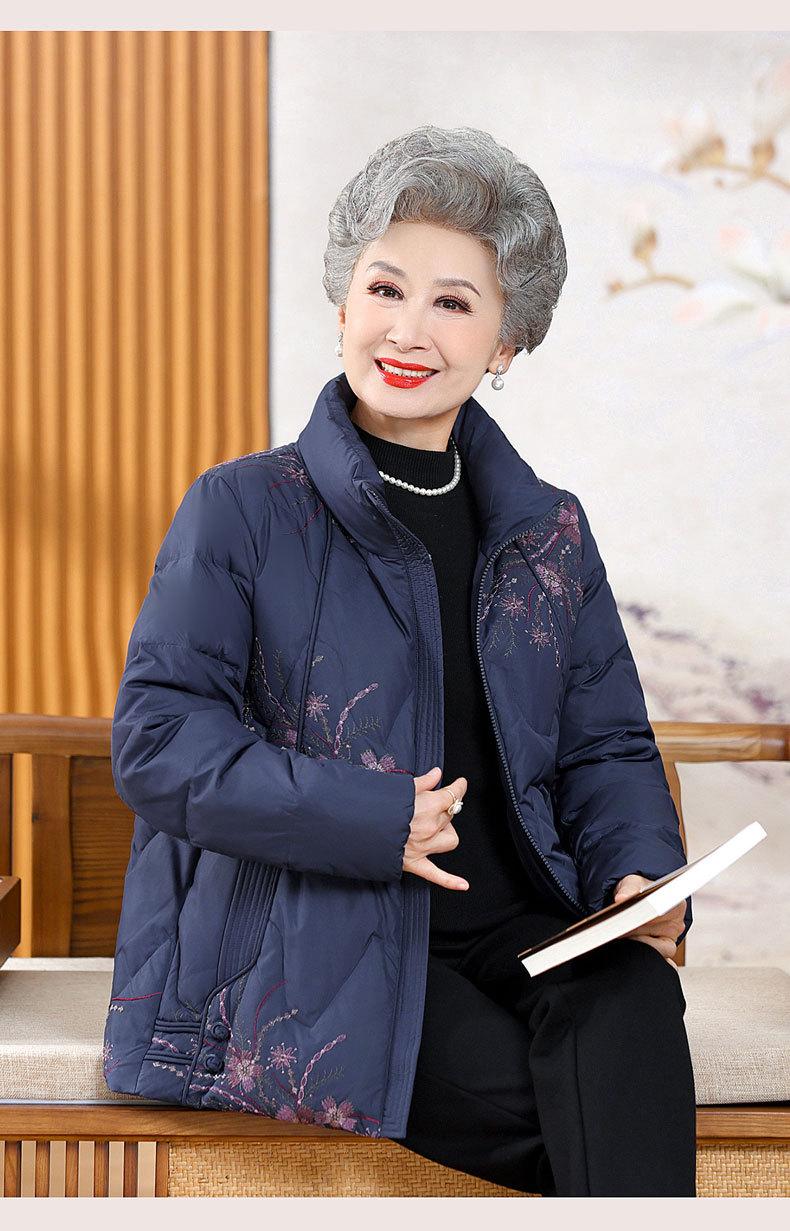 Chaqueta de plumas para personas de mediana edad y mayores, cálida y bordada, para invierno, estilo occidental, para abuela, 2024
