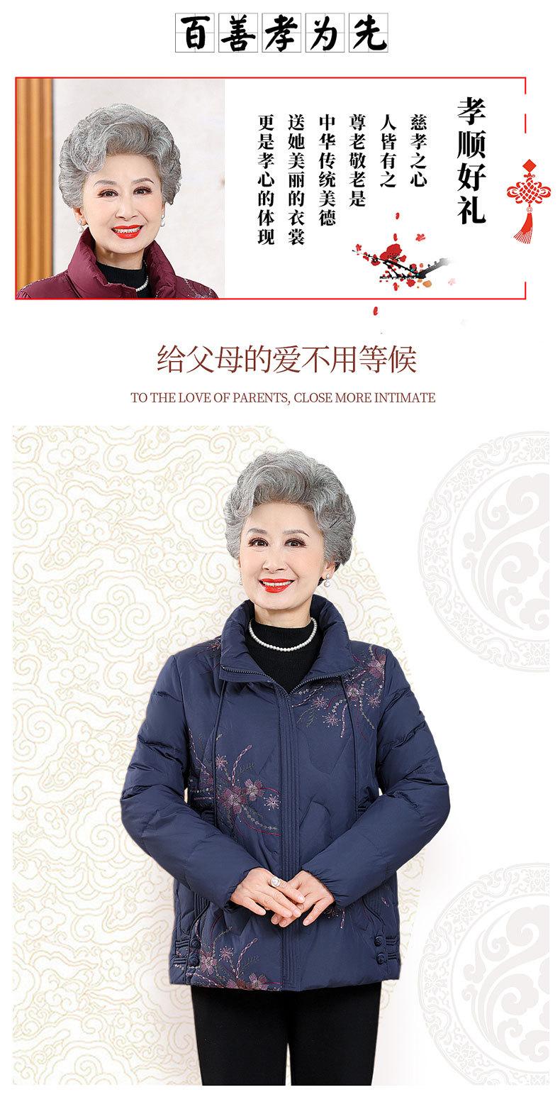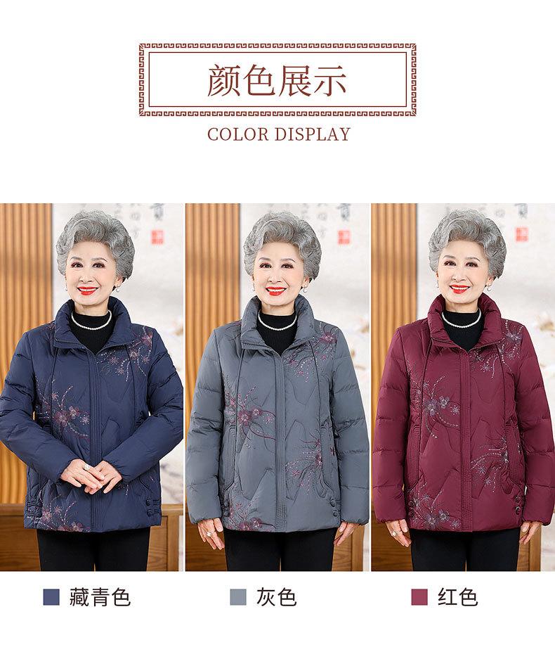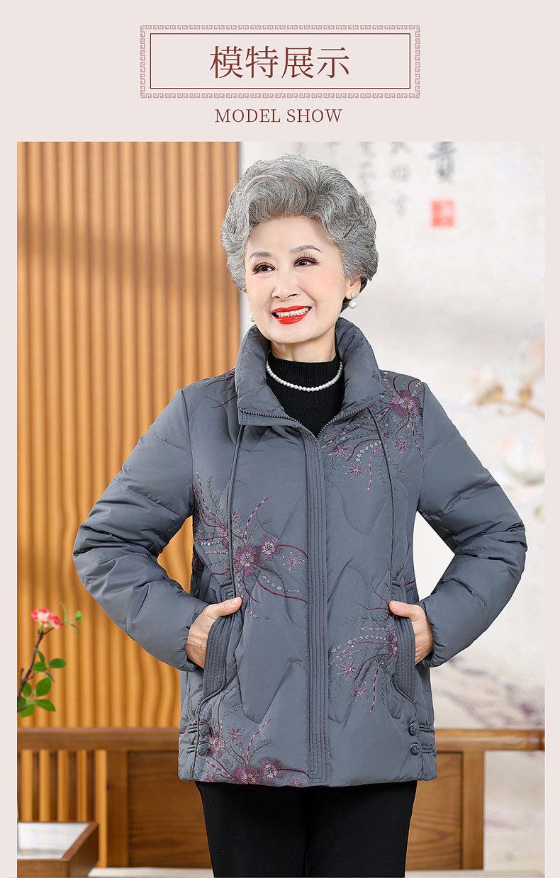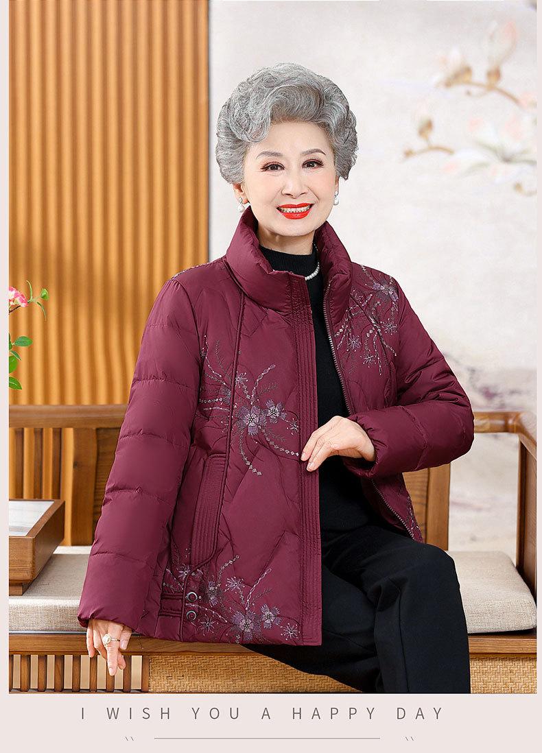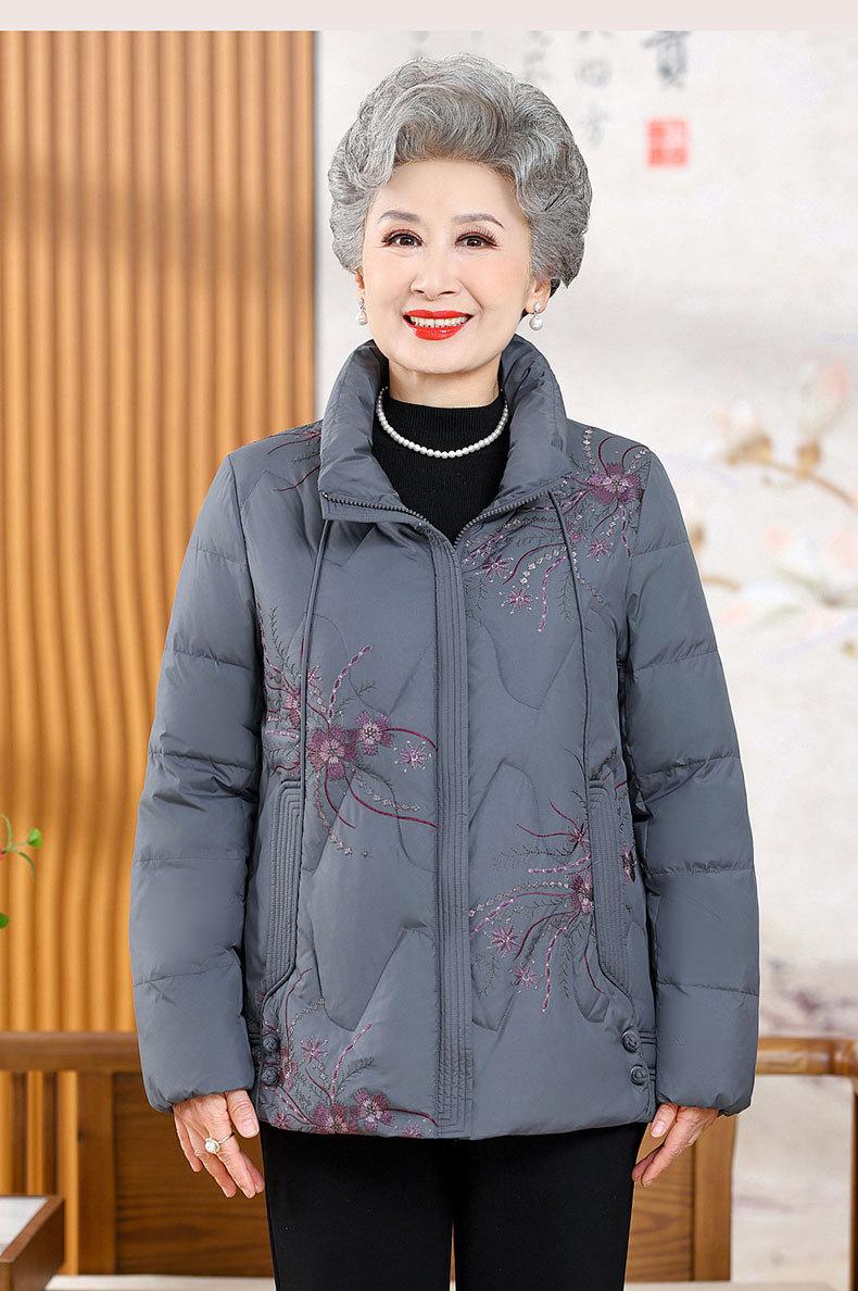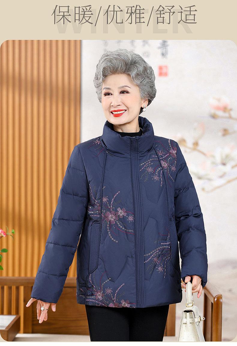 Chaqueta de plumas para personas de mediana edad y mayores, cálida y bordada, para invierno, estilo occidental, para abuela, 2024