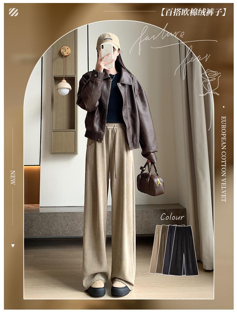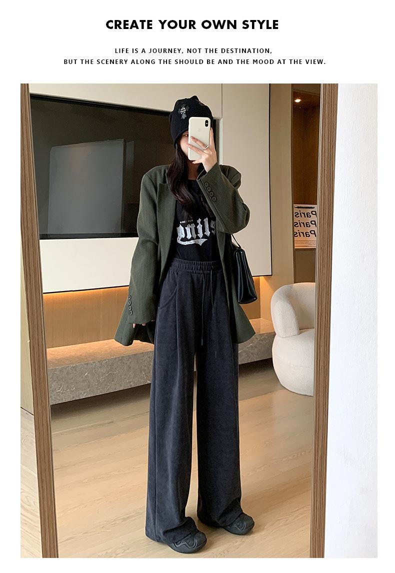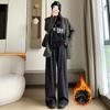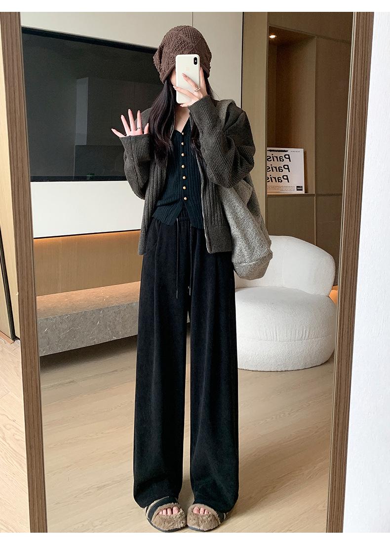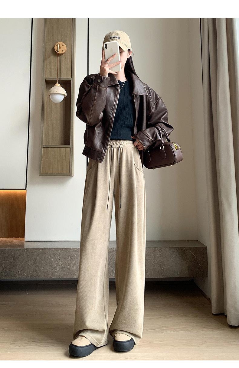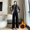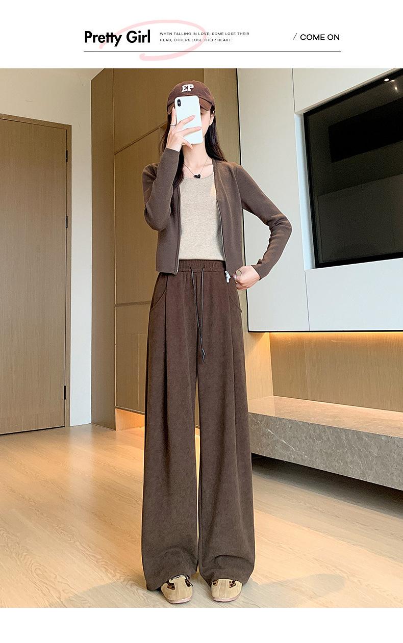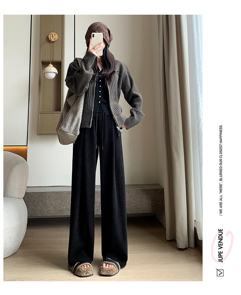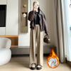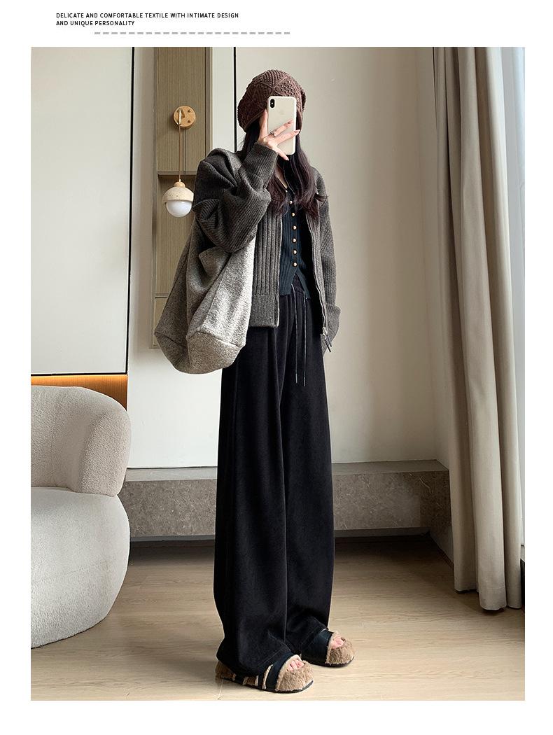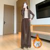 Pantalones de punto gruesos con forro polar de pierna ancha para mujer, pantalones de otoño e invierno, cintura alta, corte holgado, estilo dumpy pequeño y perezoso, pantalones Yamamoto