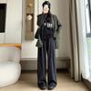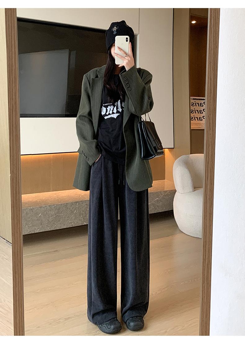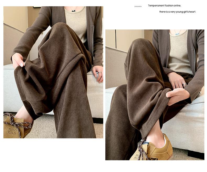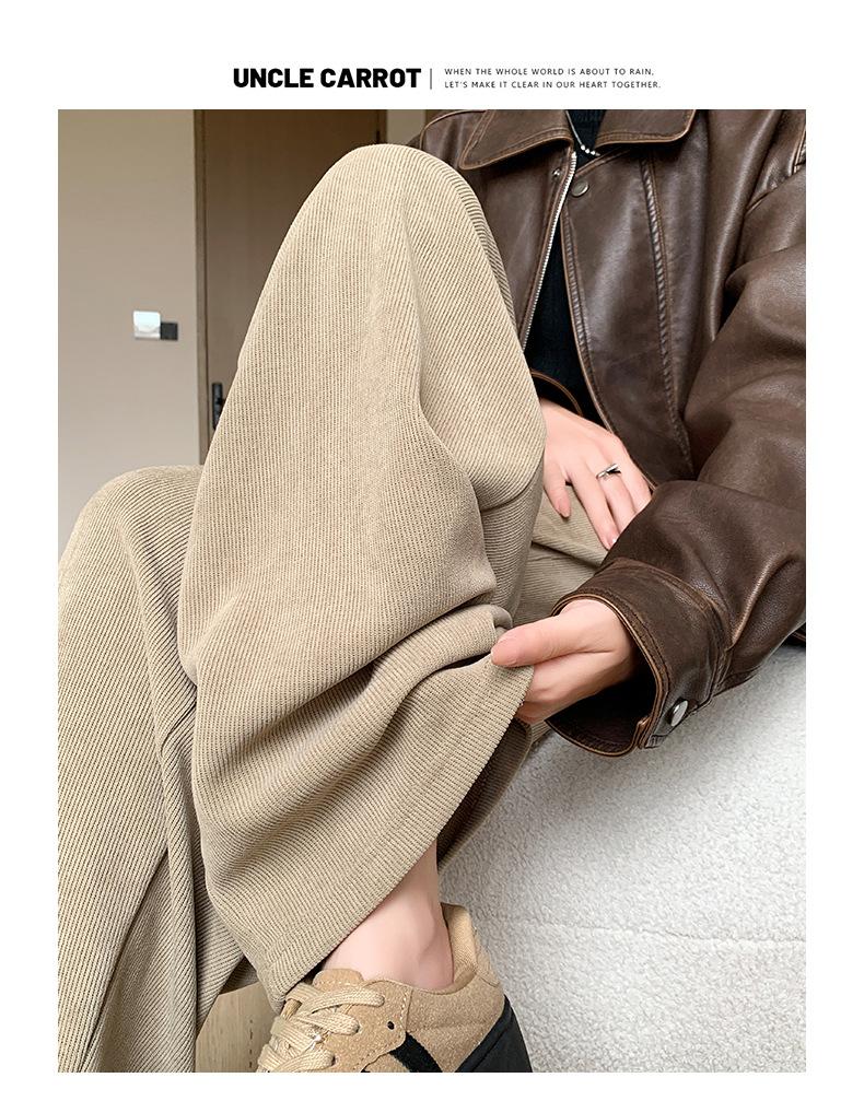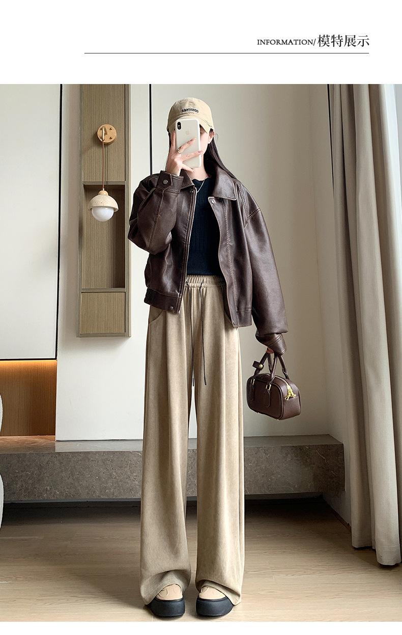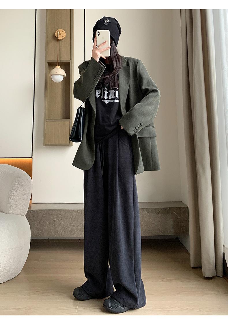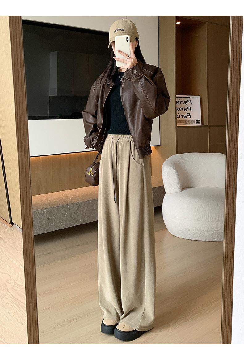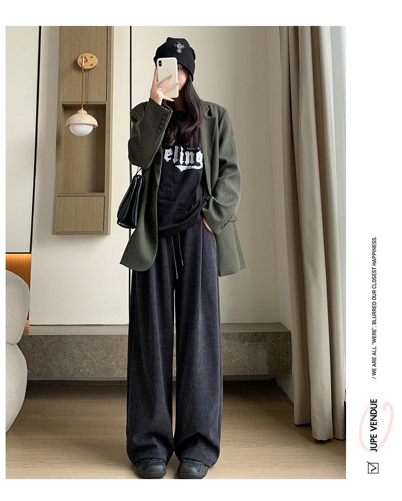 Pantalones de punto gruesos con forro polar de pierna ancha para mujer, pantalones de otoño e invierno, cintura alta, corte holgado, estilo dumpy pequeño y perezoso, pantalones Yamamoto