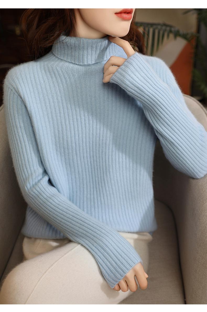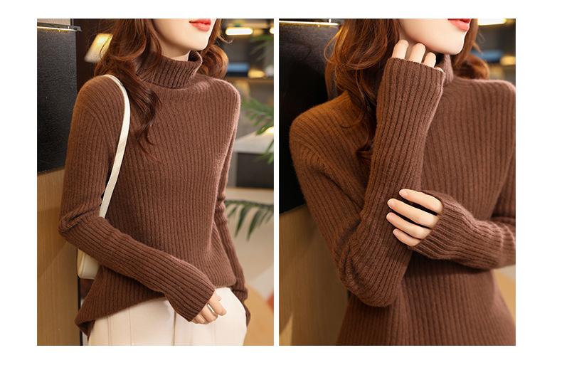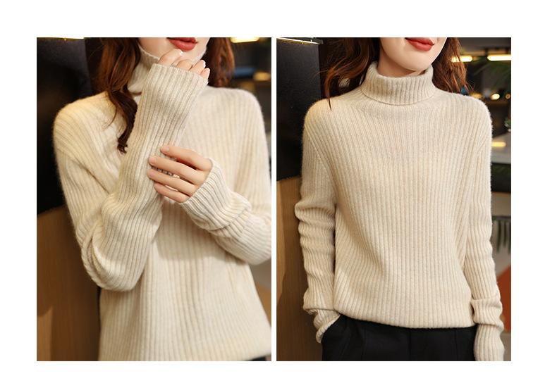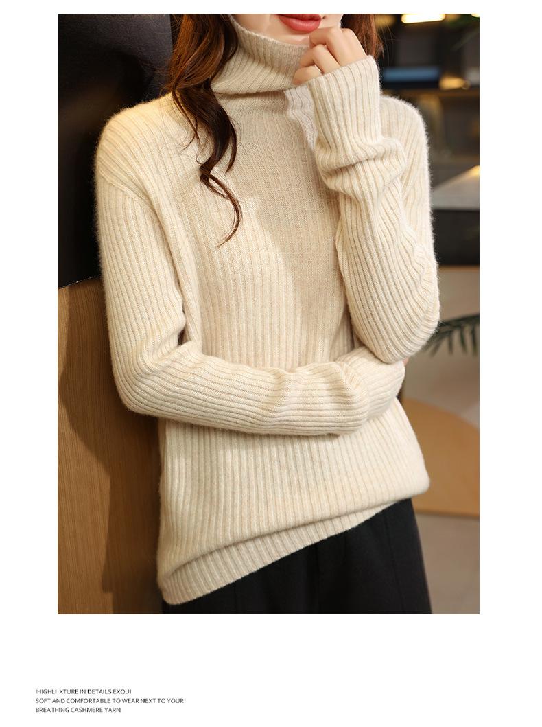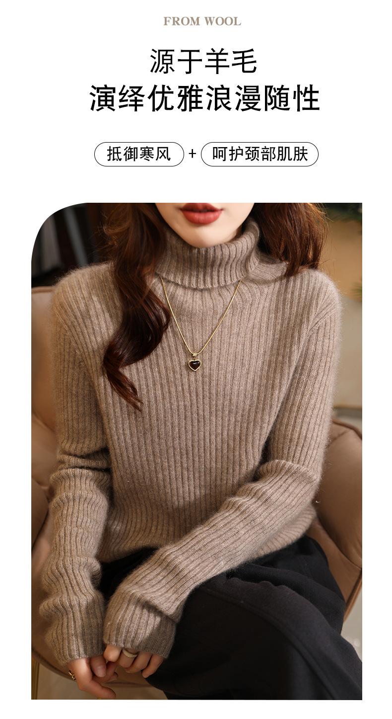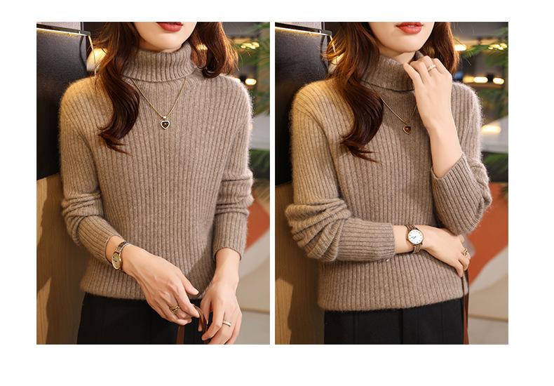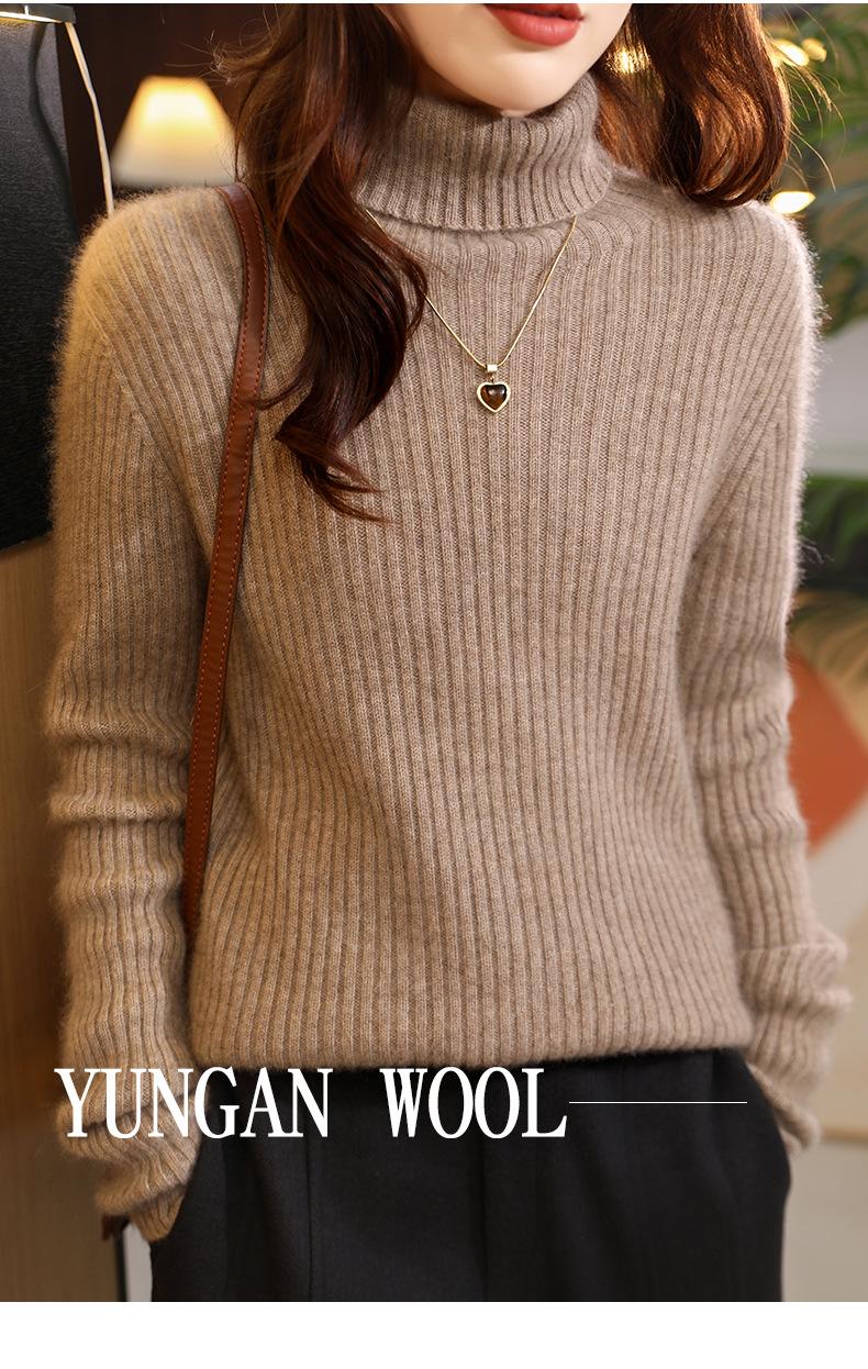 Lana Pura 24 Suéter de Lana Nuevo para Otoño e Invierno para Mujer Suéter Tejido Suéter de Cuello Alto Suéter Jersey Moda para Viajar Adelgazante