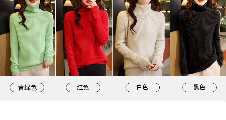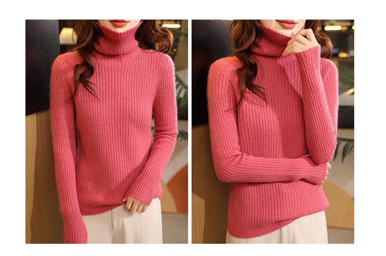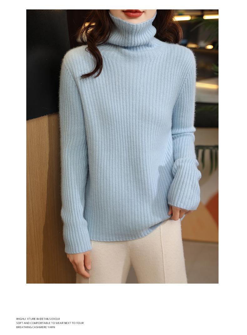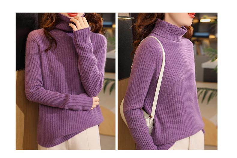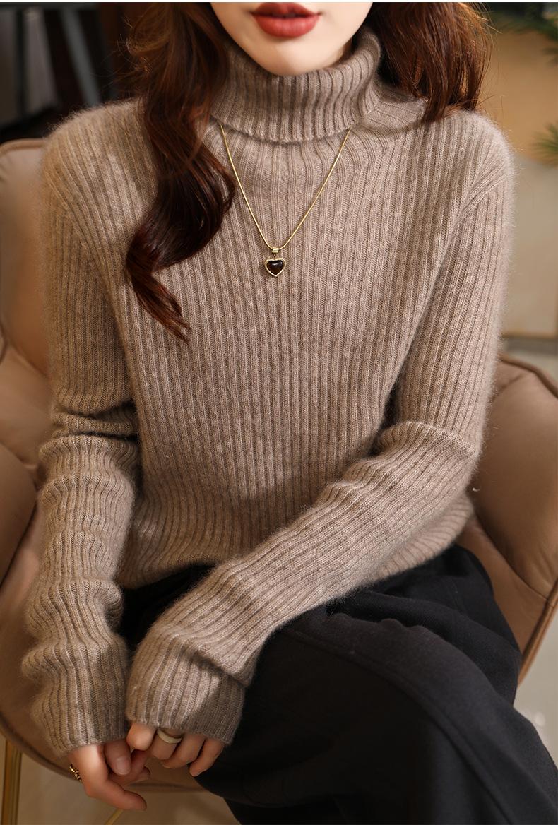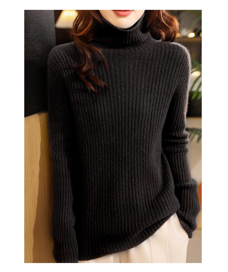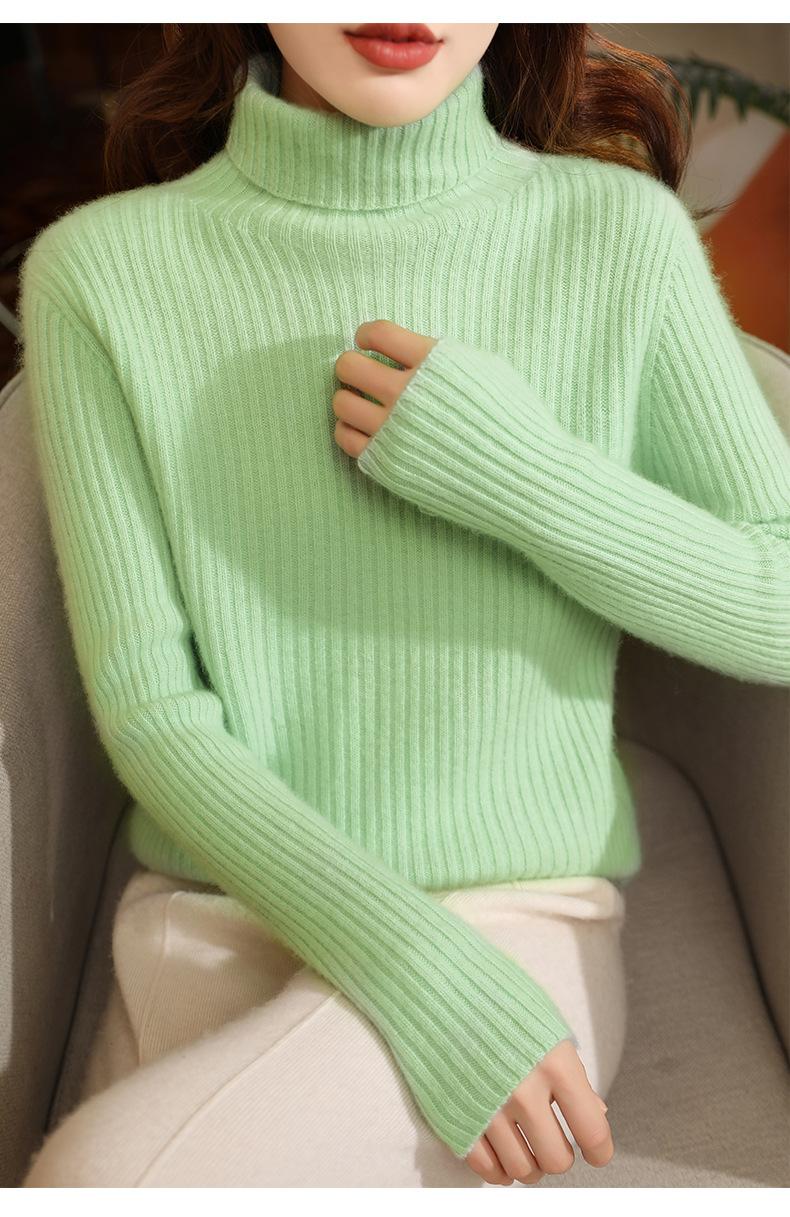 Lana Pura 24 Suéter de Lana Nuevo para Otoño e Invierno para Mujer Suéter Tejido Suéter de Cuello Alto Suéter Jersey Moda para Viajar Adelgazante