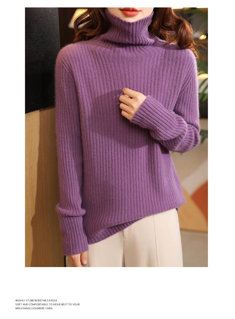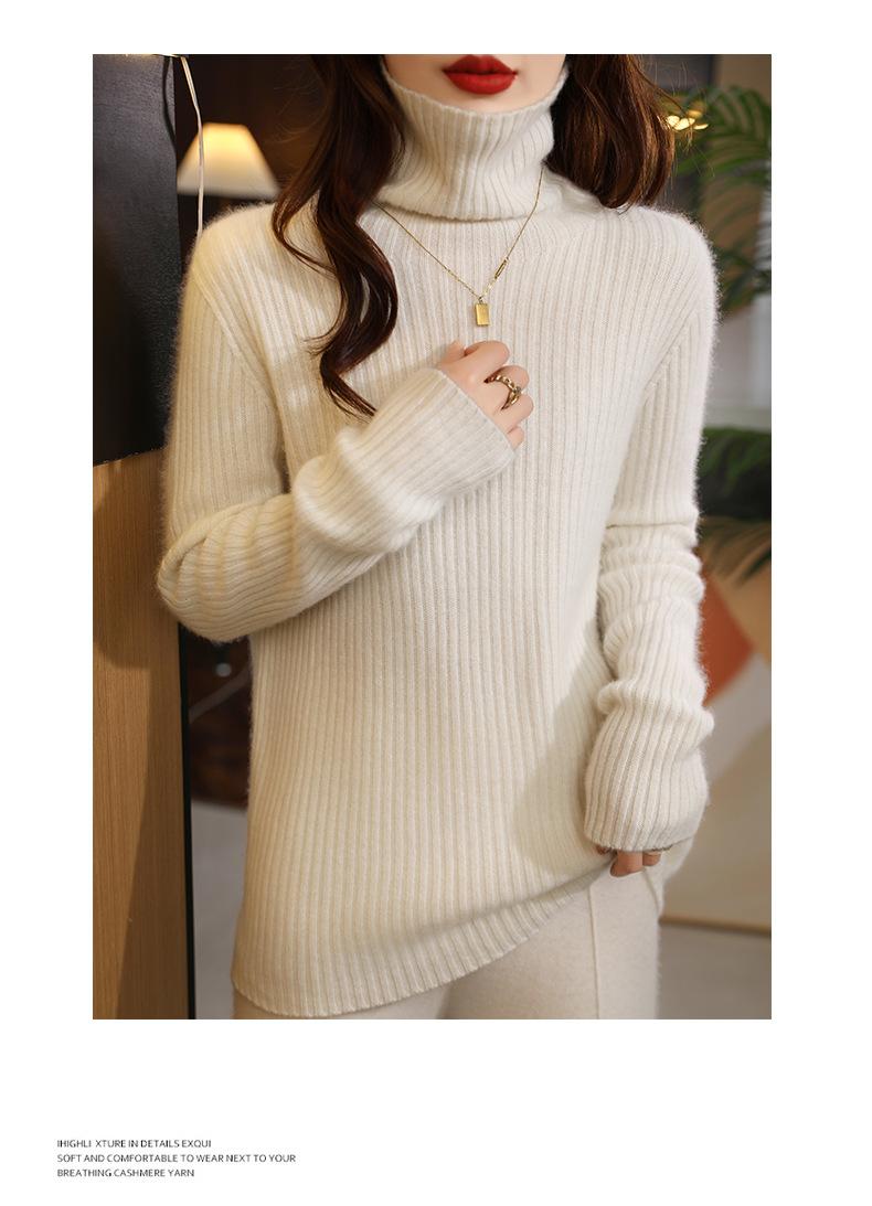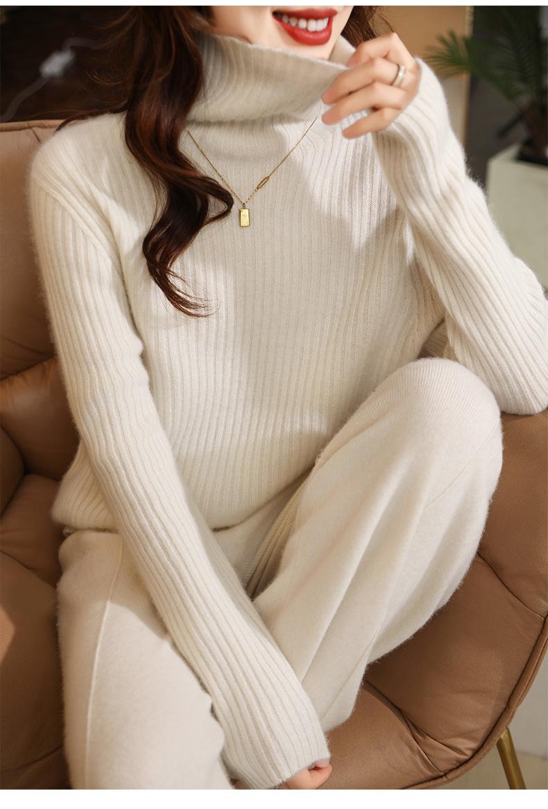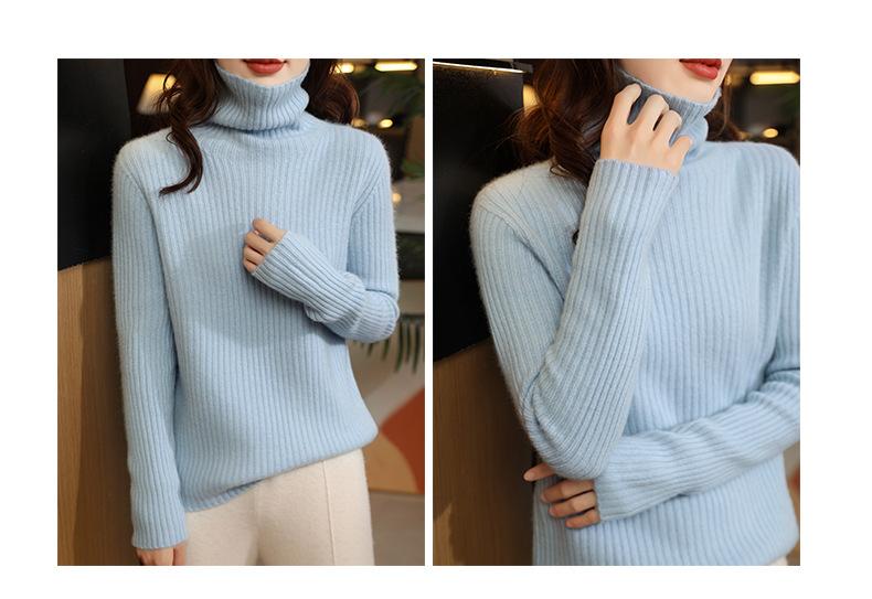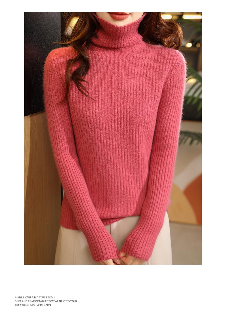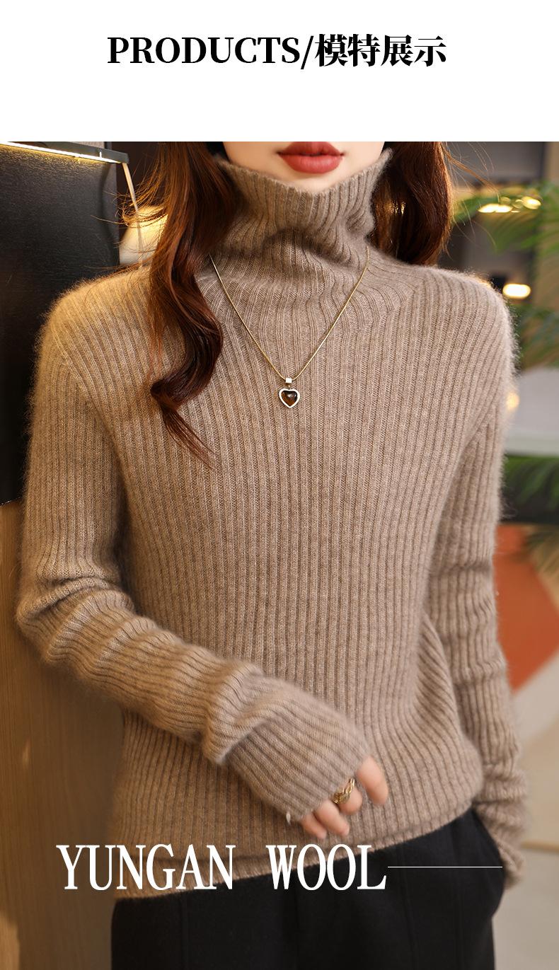 Lana Pura 24 Suéter de Lana Nuevo para Otoño e Invierno para Mujer Suéter Tejido Suéter de Cuello Alto Suéter Jersey Moda para Viajar Adelgazante