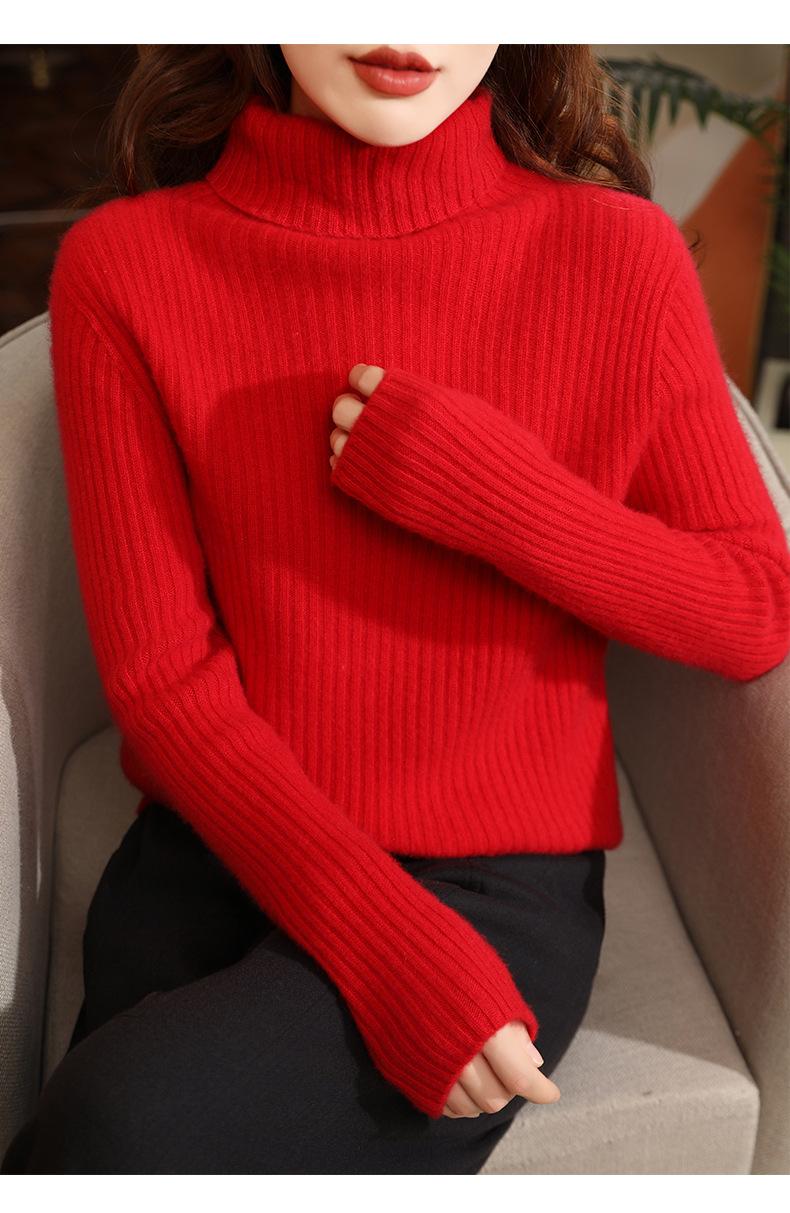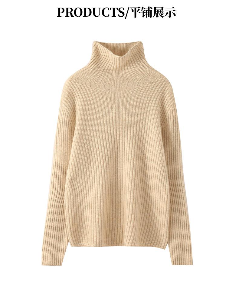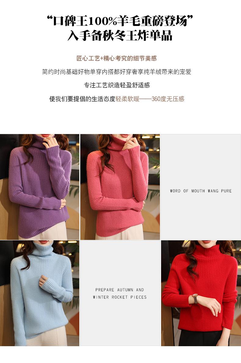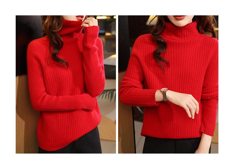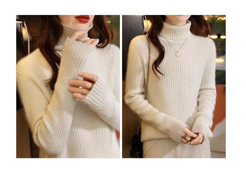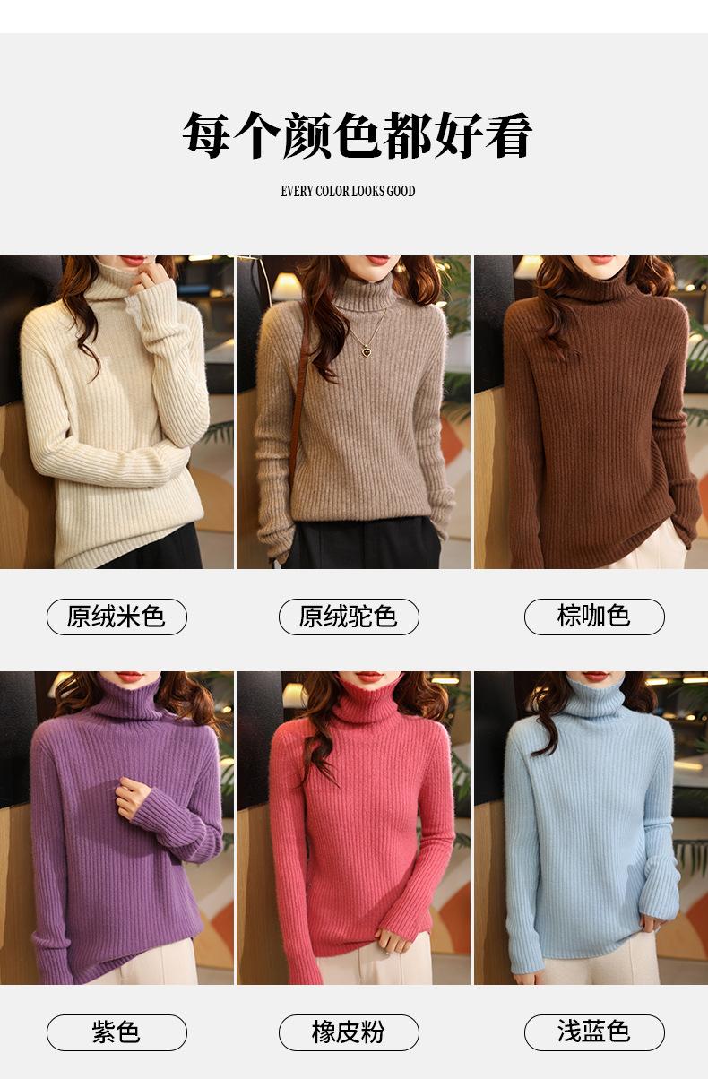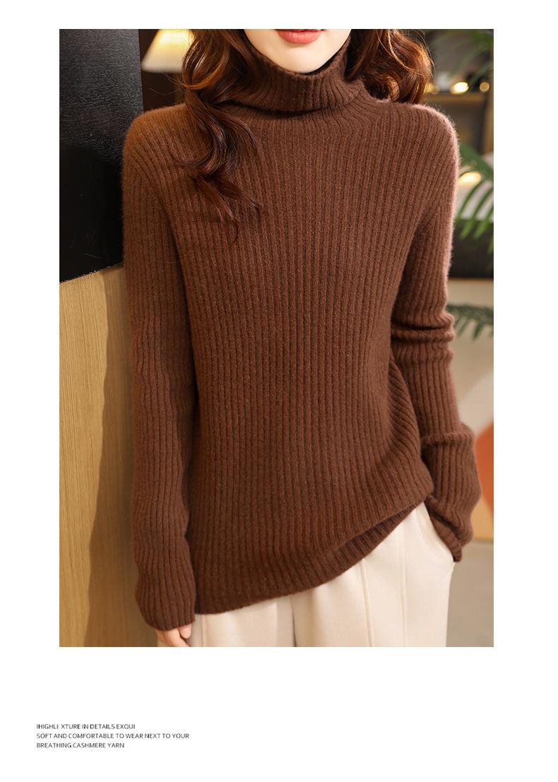 Lana Pura 24 Suéter de Lana Nuevo para Otoño e Invierno para Mujer Suéter Tejido Suéter de Cuello Alto Suéter Jersey Moda para Viajar Adelgazante