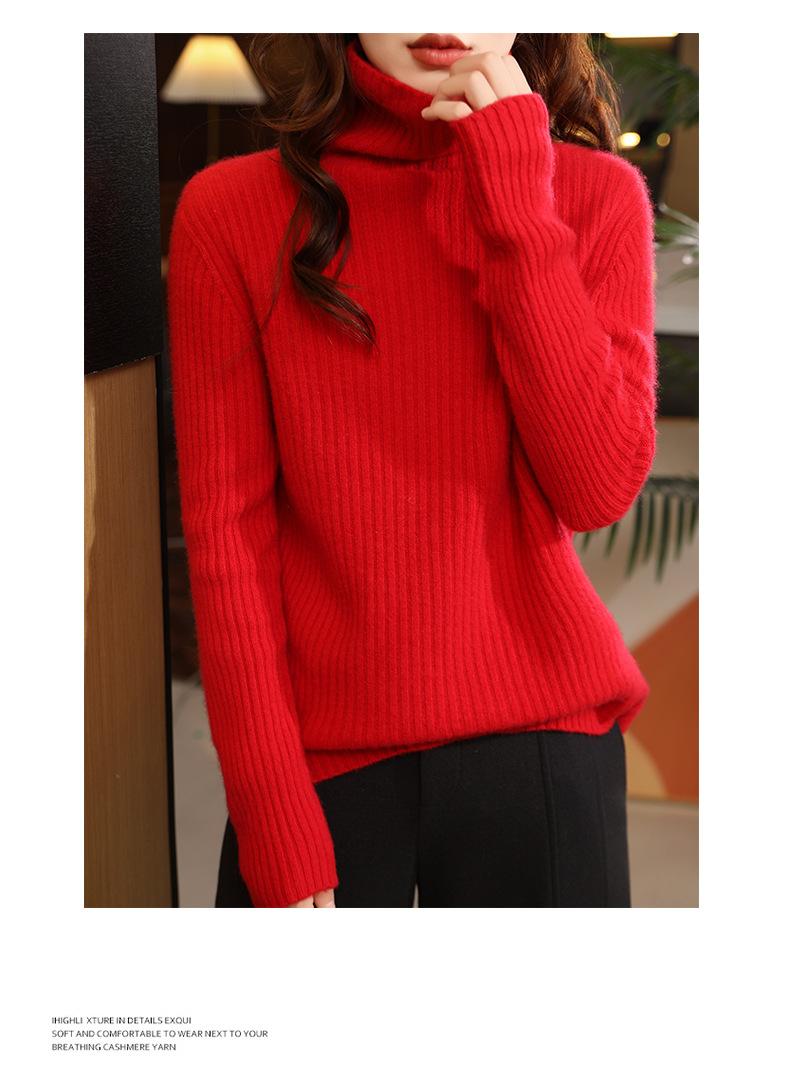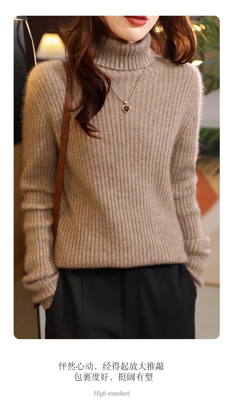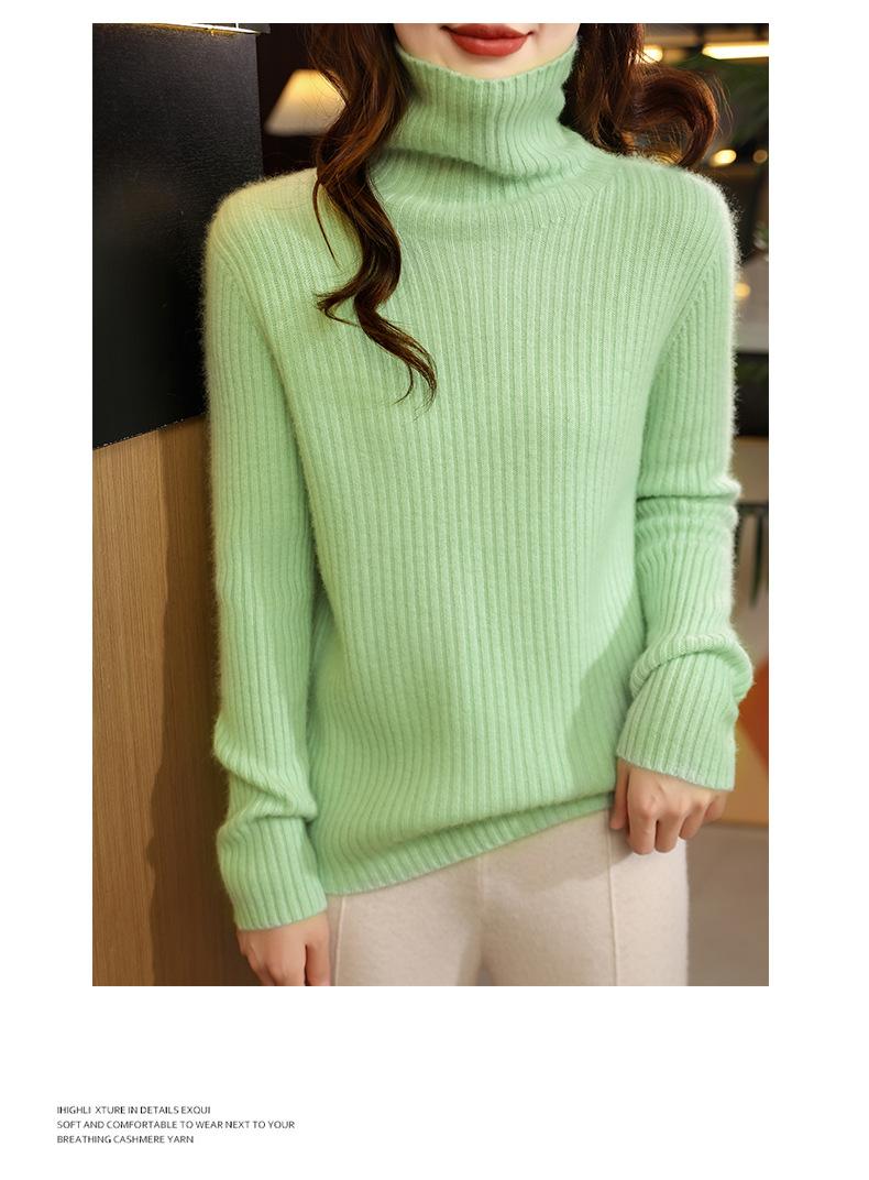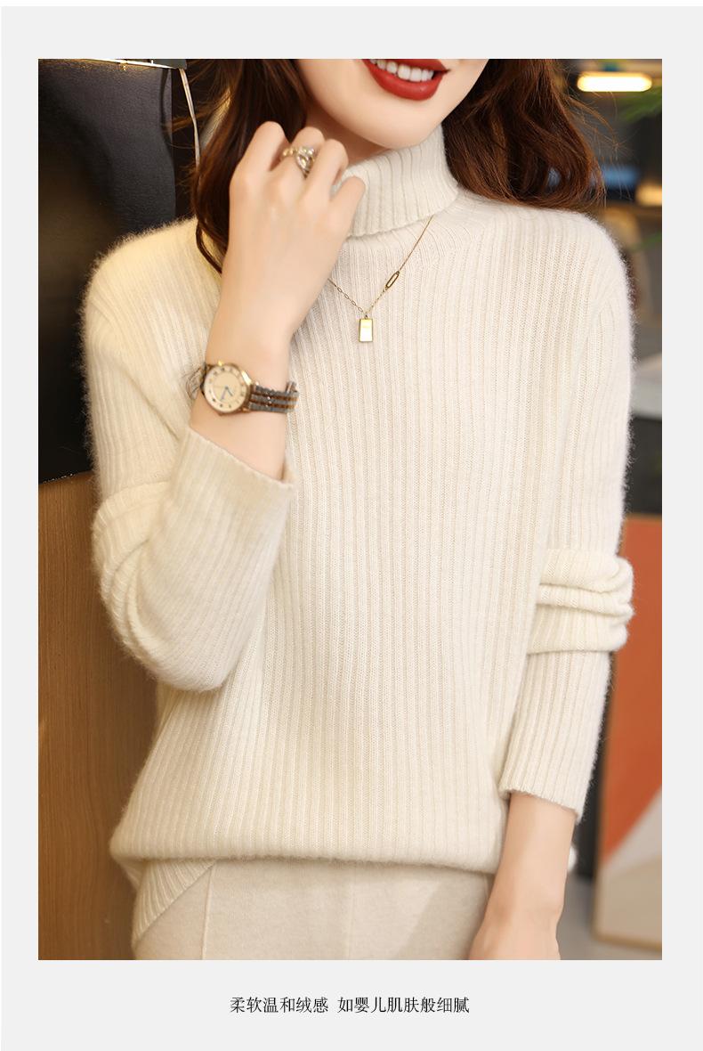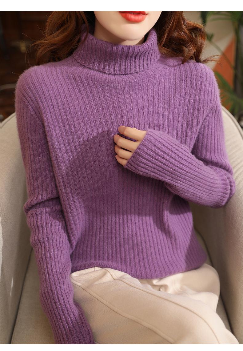 Lana Pura 24 Suéter de Lana Nuevo para Otoño e Invierno para Mujer Suéter Tejido Suéter de Cuello Alto Suéter Jersey Moda para Viajar Adelgazante
