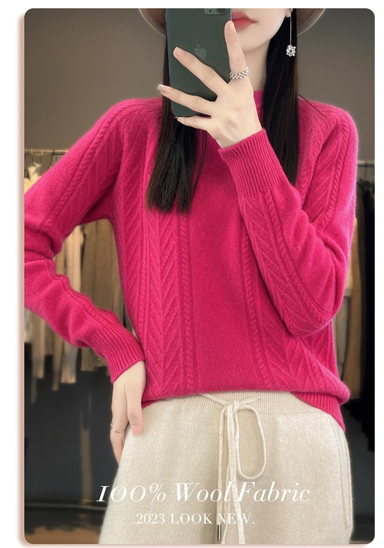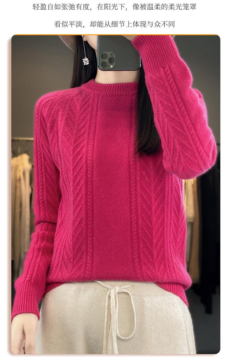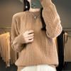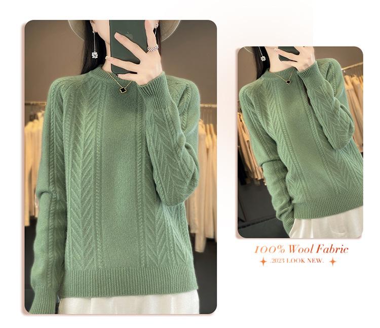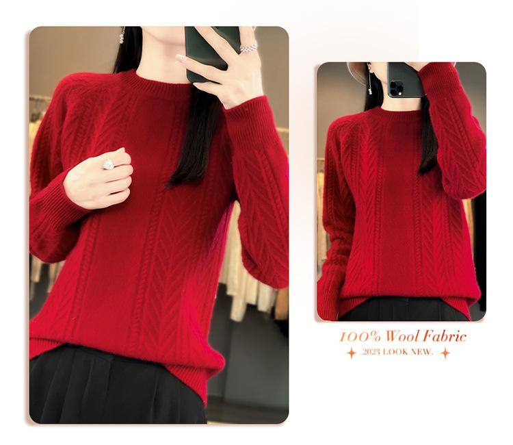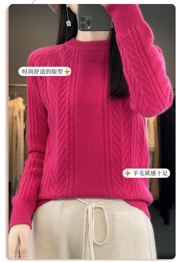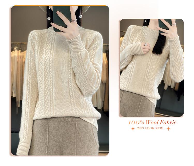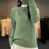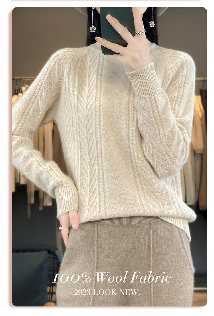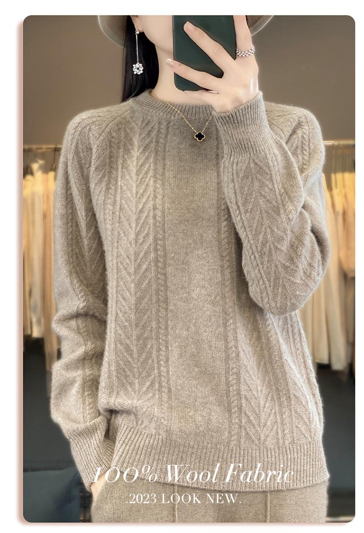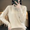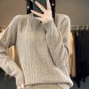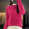 Otoño e Invierno Nuevo Suéter de Lana 100 Pura para Mujer Cuello Redondo Jacquard Hombro Caído Suéter Jersey Lana Tejido Camisa Base