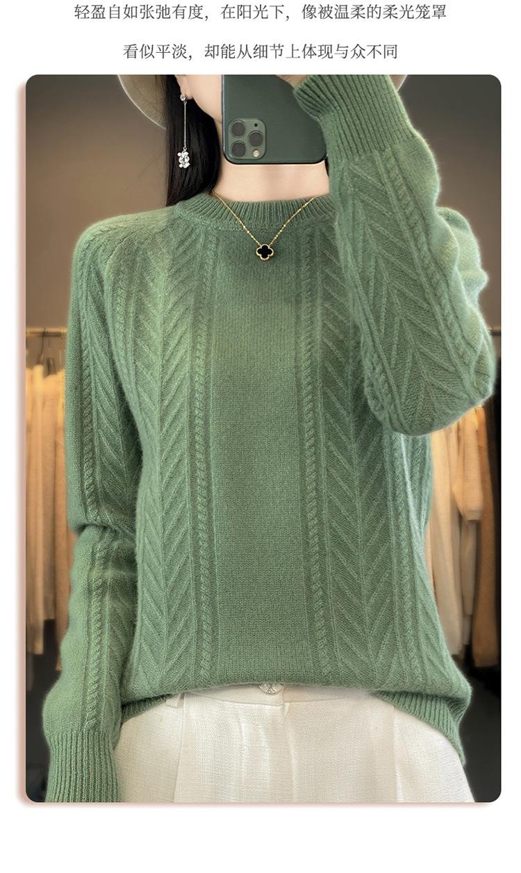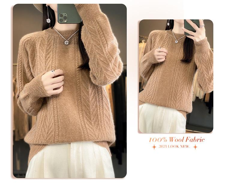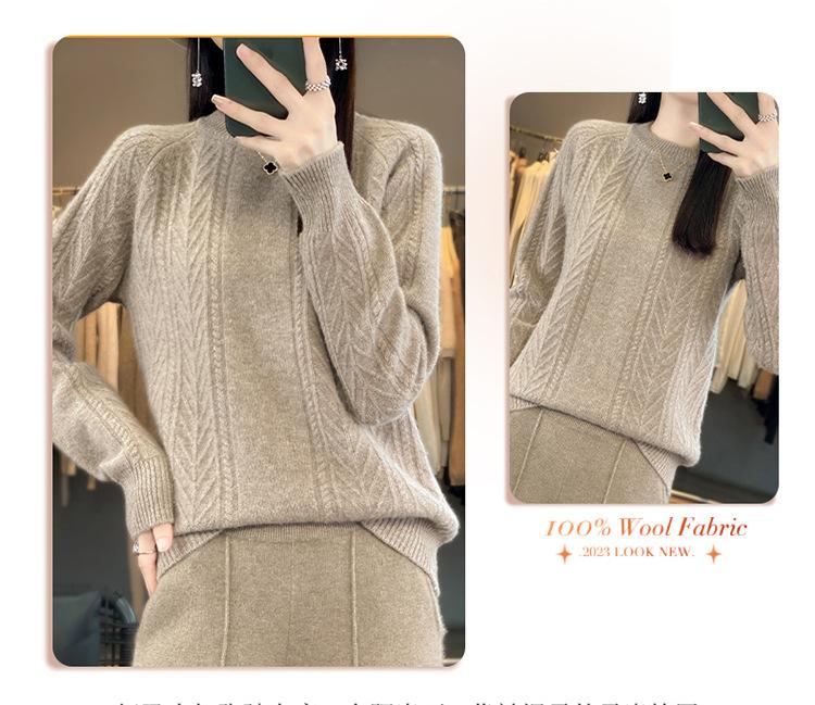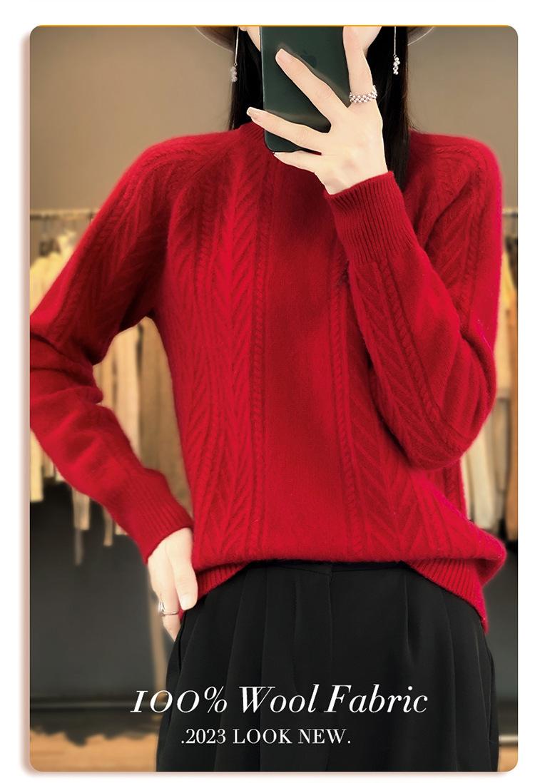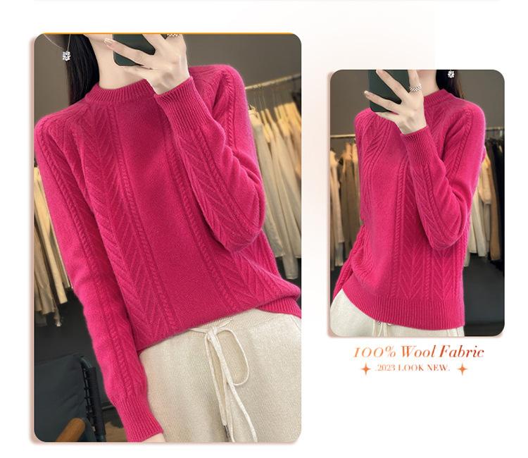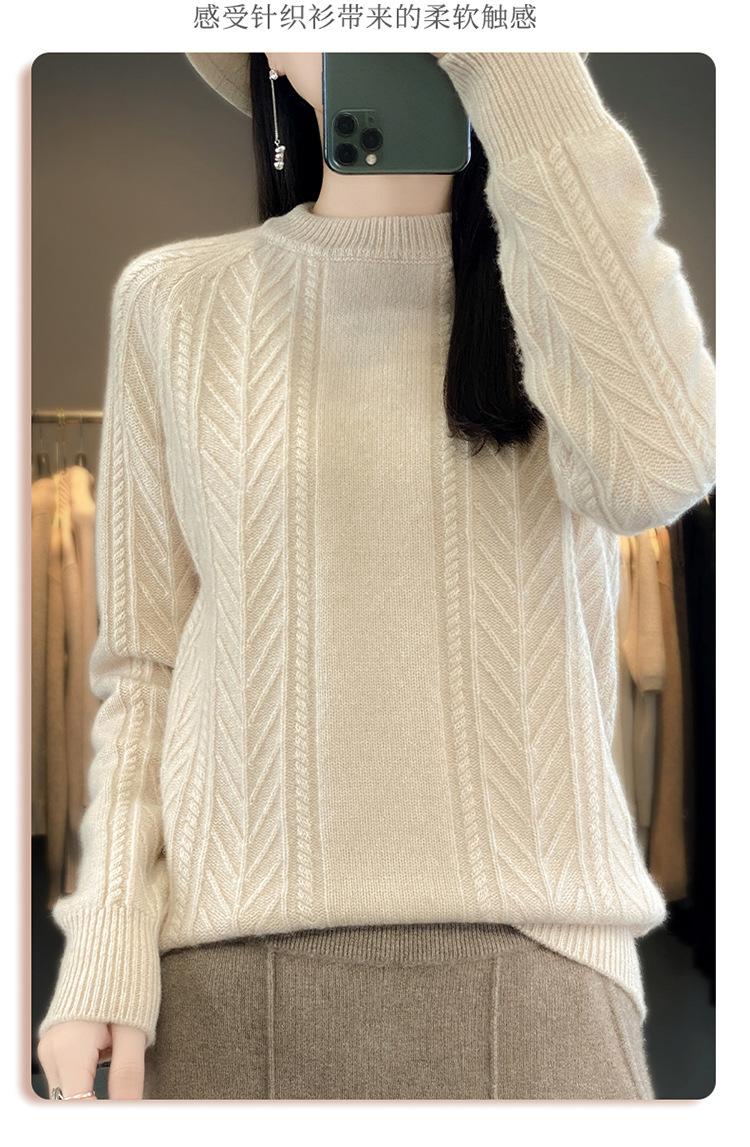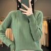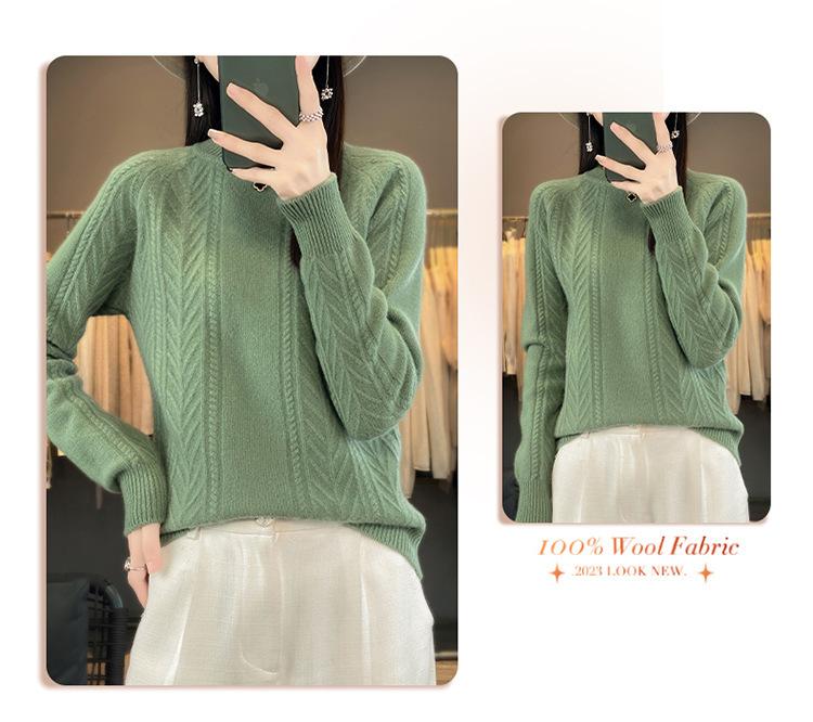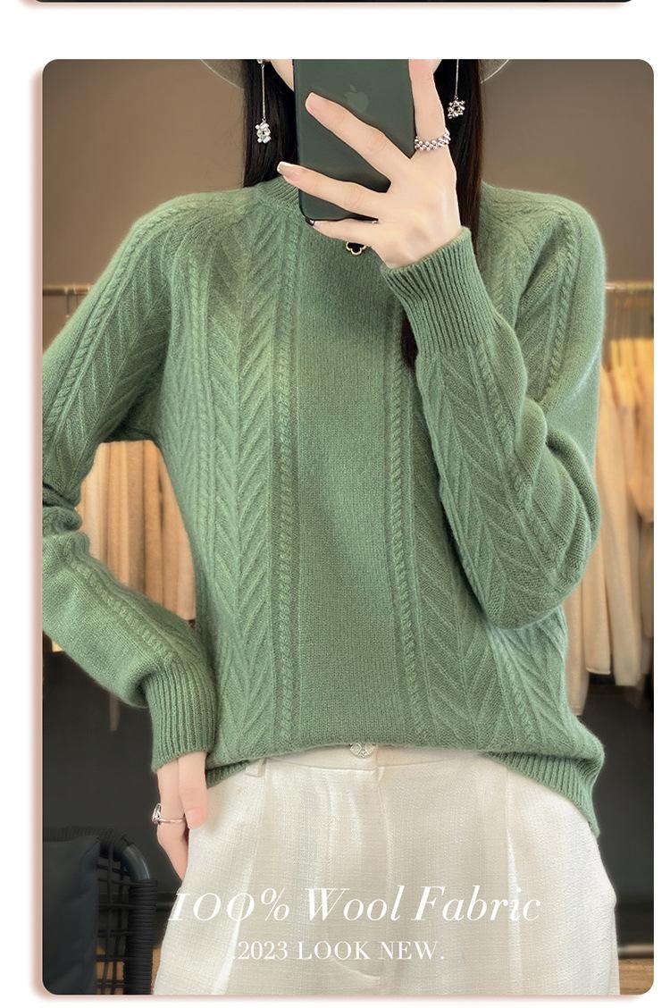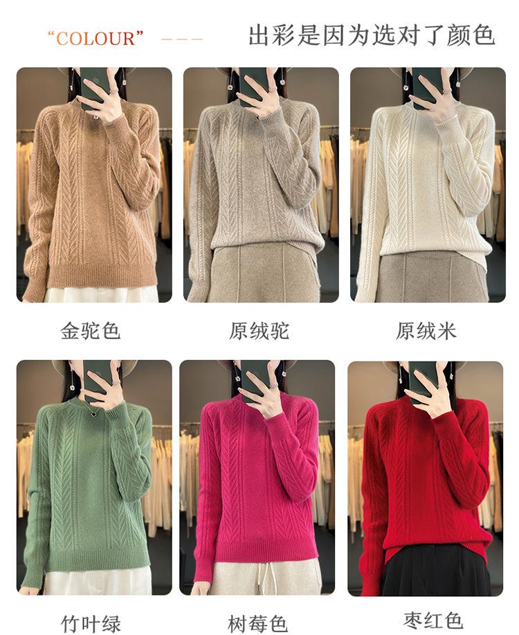 Otoño e Invierno Nuevo Suéter de Lana 100 Pura para Mujer Cuello Redondo Jacquard Hombro Caído Suéter Jersey Lana Tejido Camisa Base