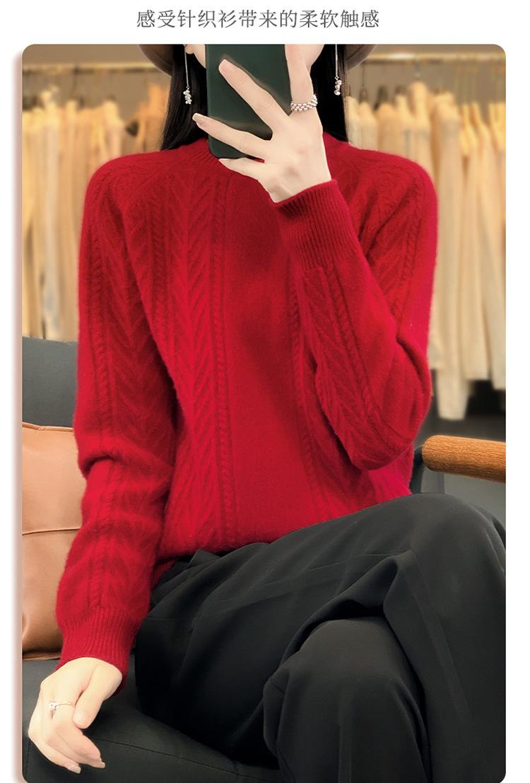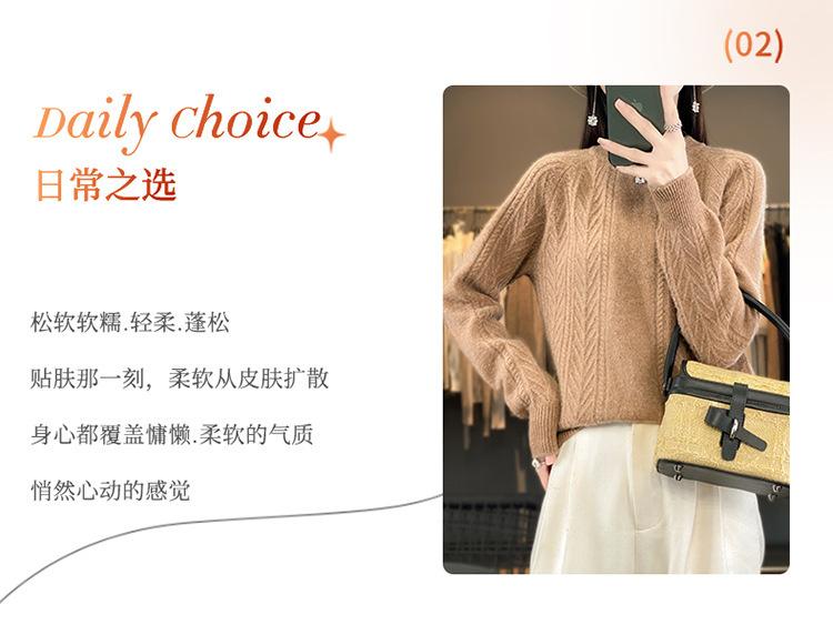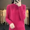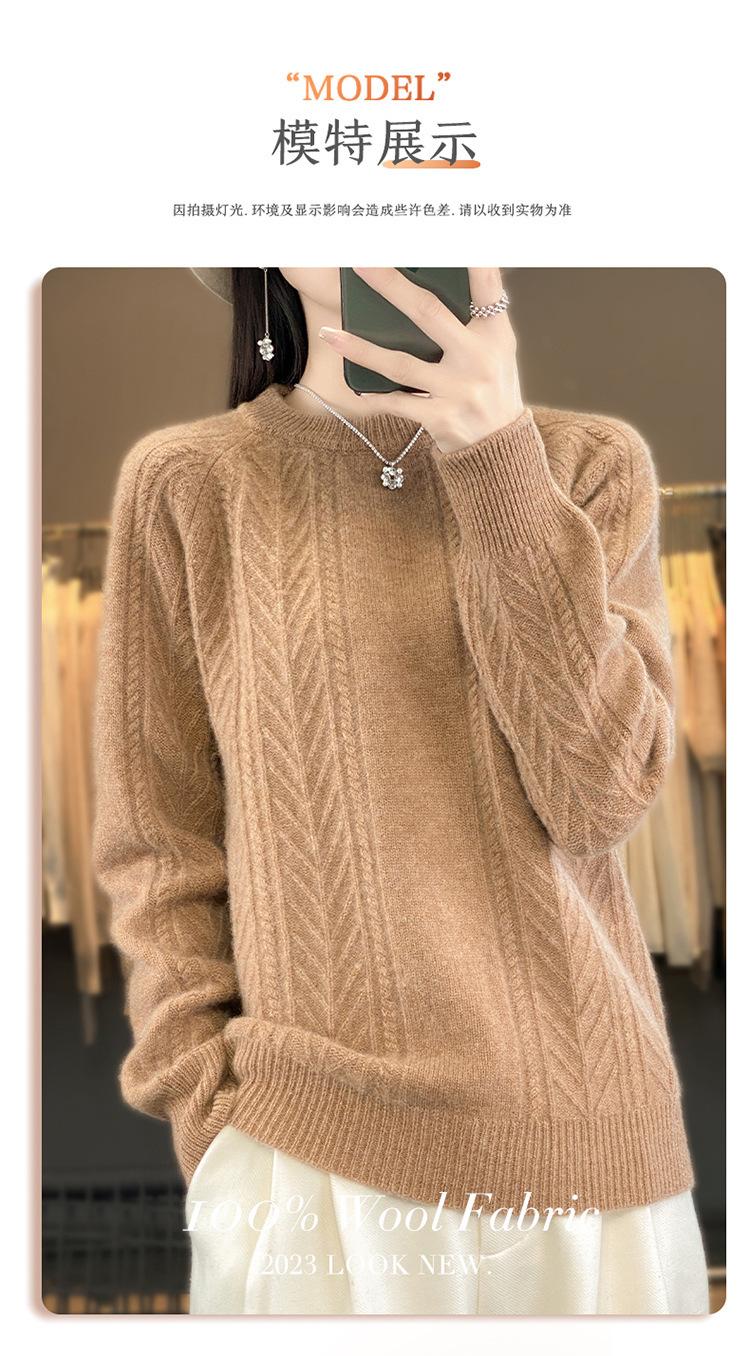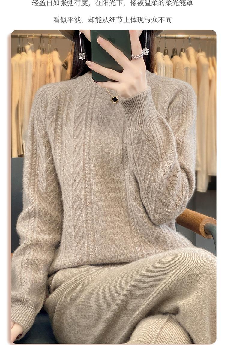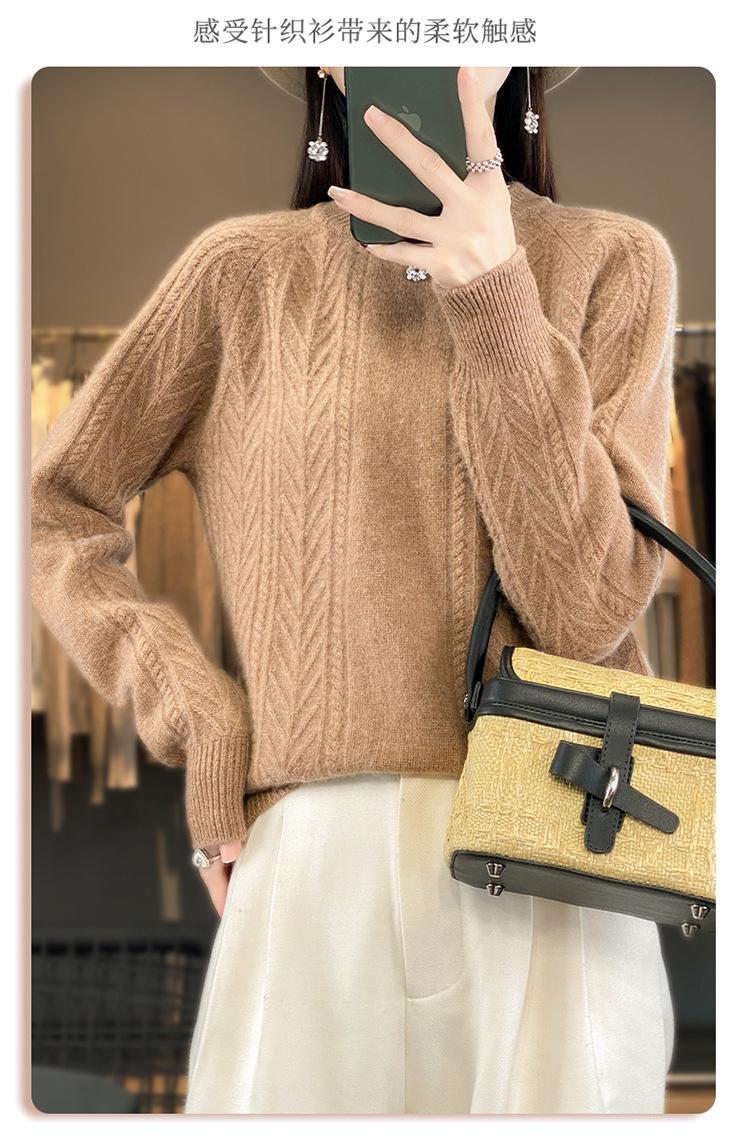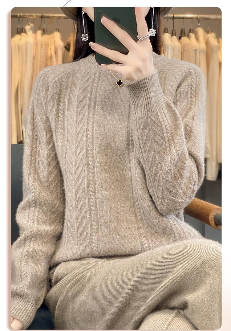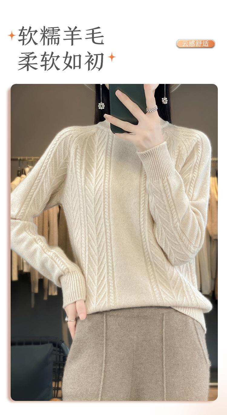 Otoño e Invierno Nuevo Suéter de Lana 100 Pura para Mujer Cuello Redondo Jacquard Hombro Caído Suéter Jersey Lana Tejido Camisa Base