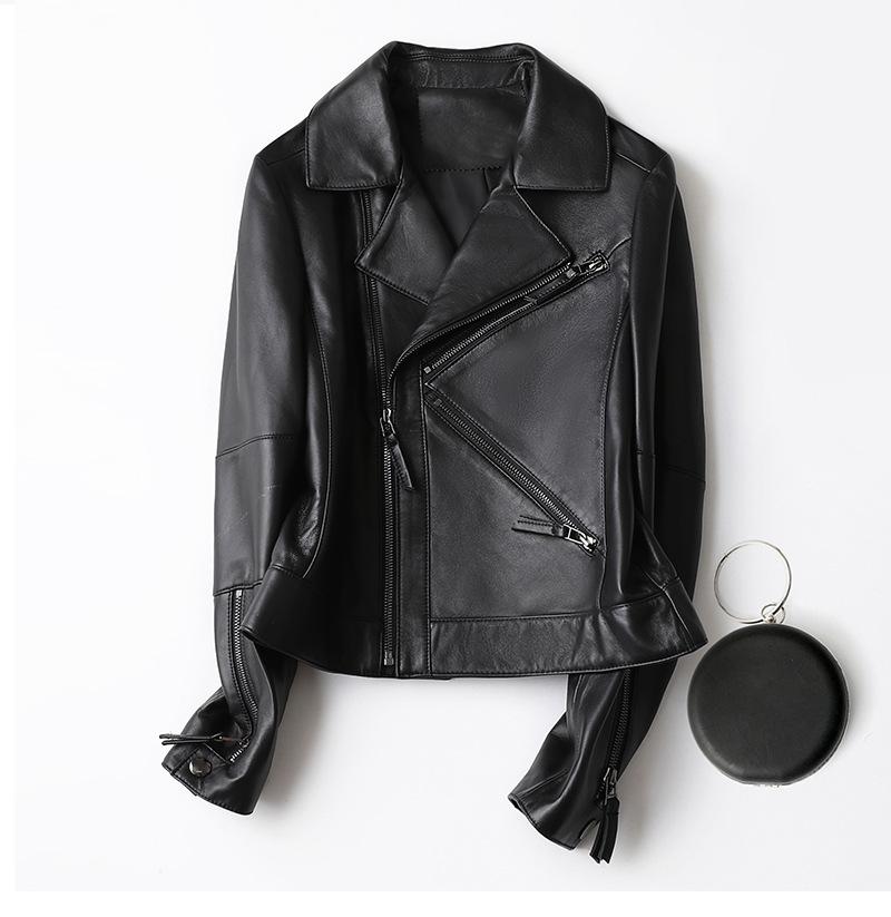 Traje de motociclista de piel de oveja Haining para mujer, chaqueta corta de cuero auténtica de primavera y otoño, ajustada, nueva chaqueta