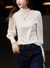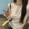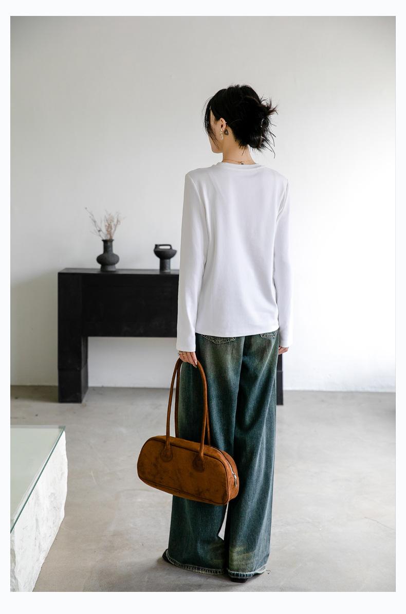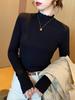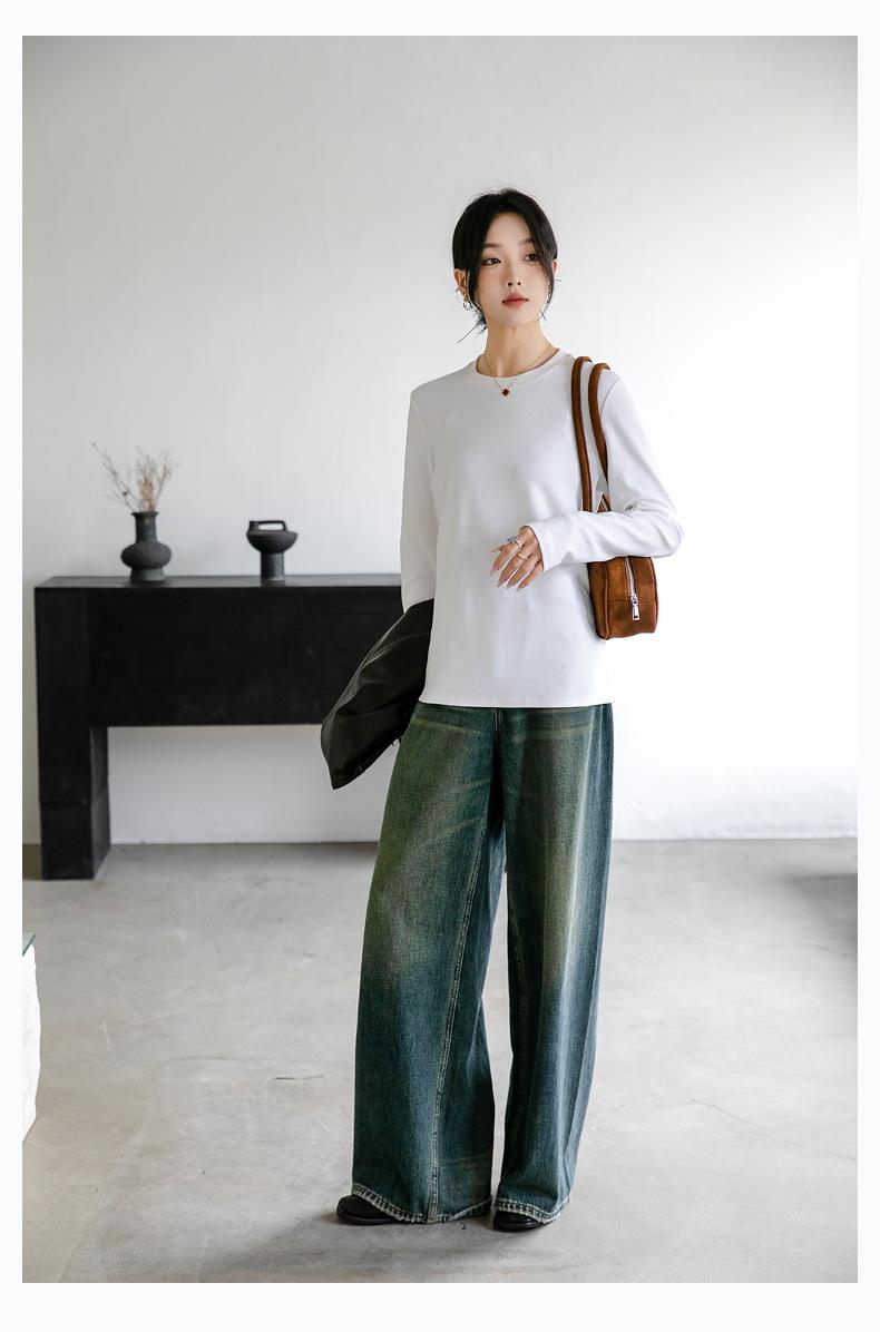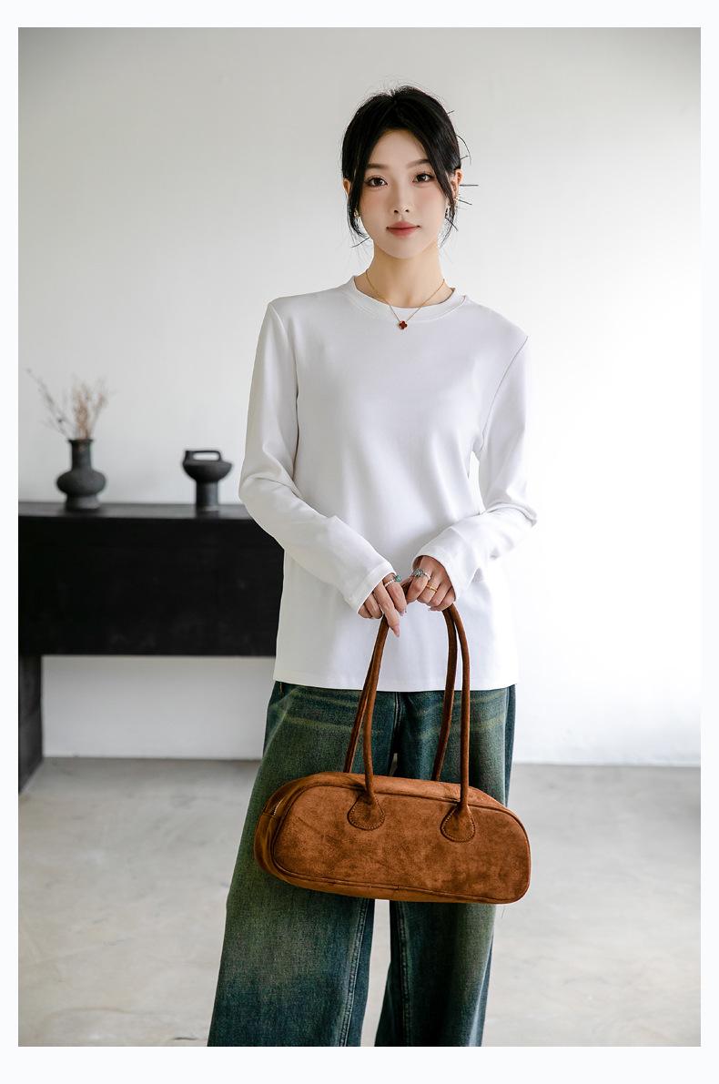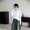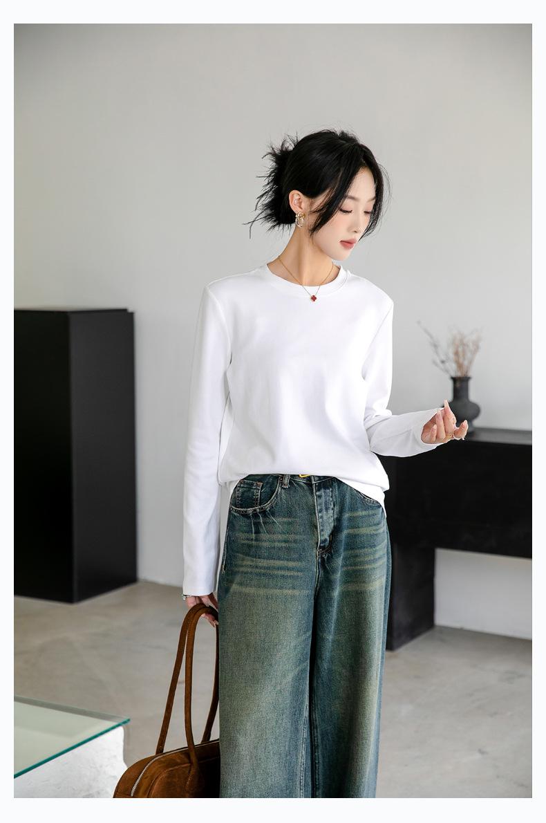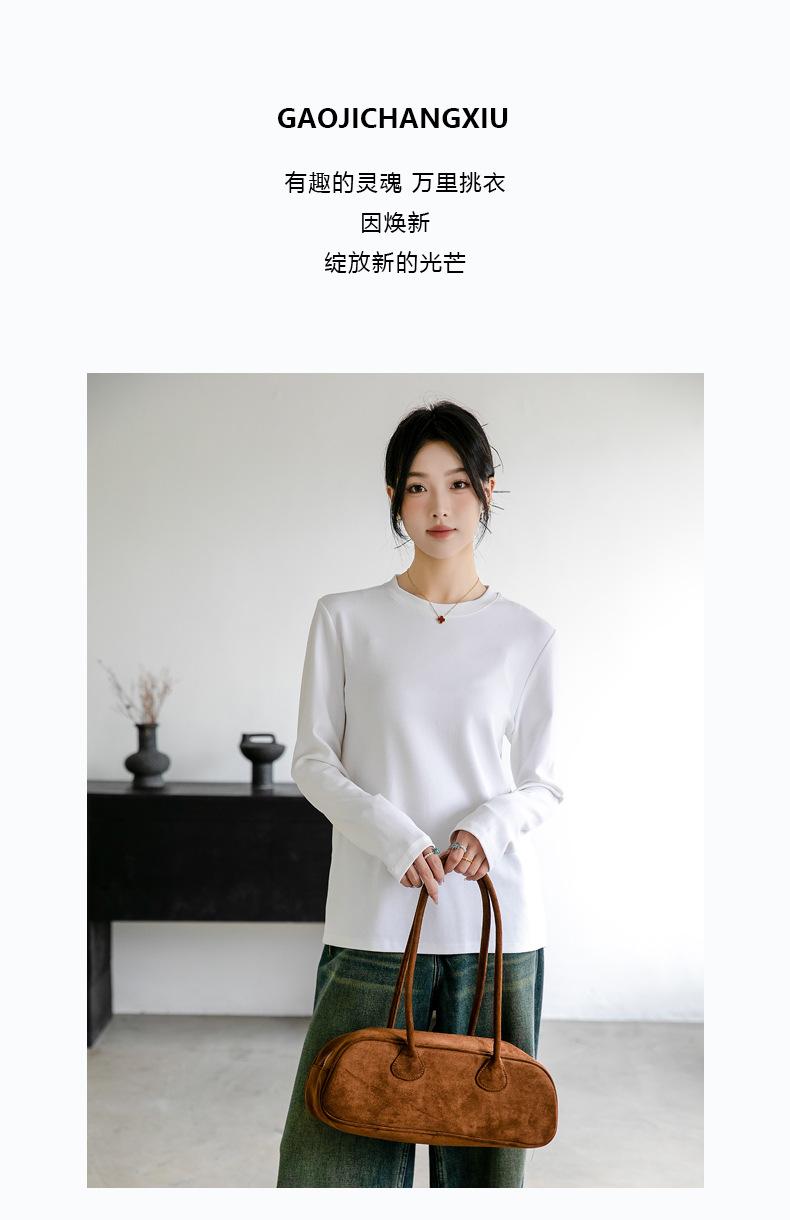 Camiseta básica de color liso que combina con todo para mujer, otoño e invierno 2024, nueva camiseta holgada, ajustada, con cuello redondo y microelástica de manga larga.